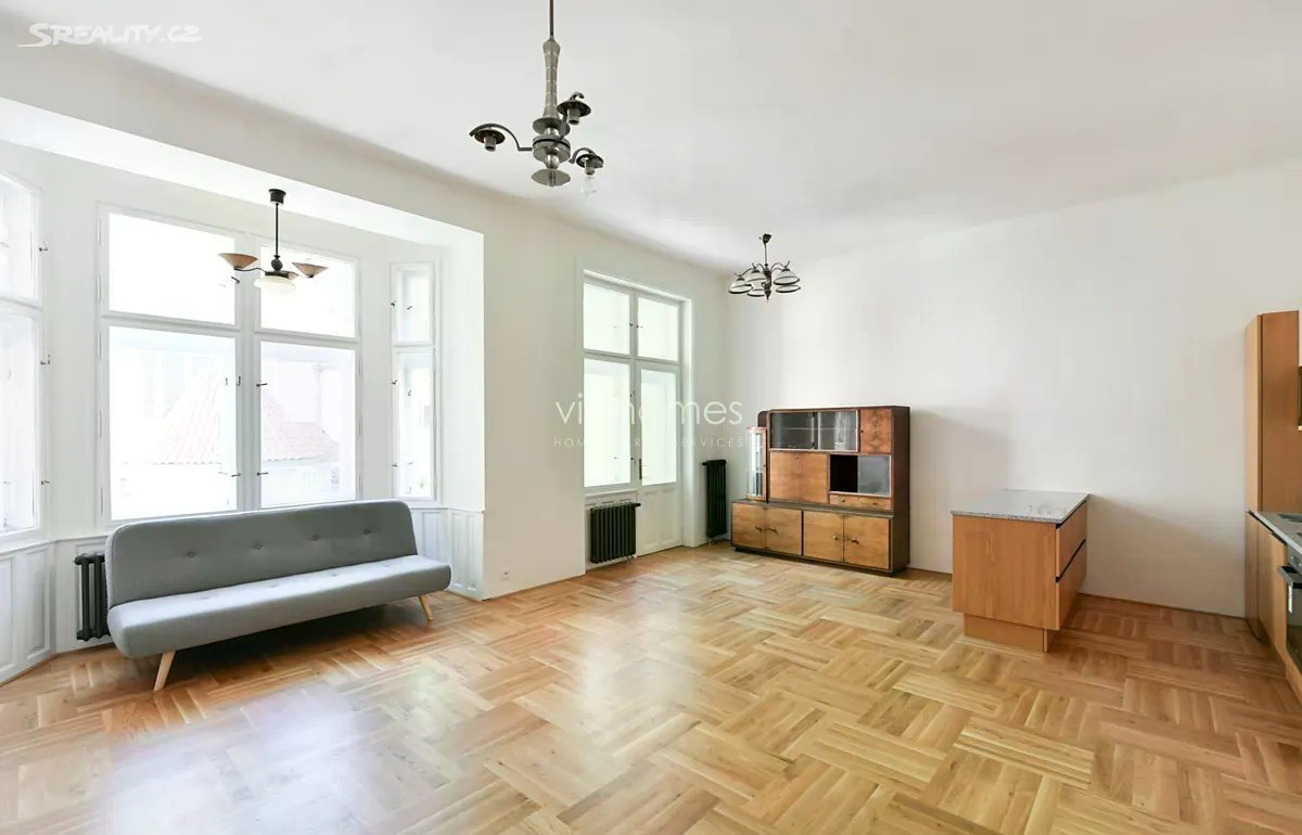 Nově zrekonstruovaný byt 2+kk v 1.patře historického rezidenčního domu v bezprostřední blízkosti světoznámých památek Starého Města, v sousedství prestižní Pařížské ulice se spoustou nejlepších restaurací, kaváren, barů a butiků světoznámých designérů. Maiselova ulice je původně zlatnická ulice ve slavné čtvrti Josefov. V blízkém dosahu tramvají, metra s dobrou dostupností do všech částí Prahy. Celý dům je po celkové renovaci se zachovalými původními prvky. Byt tvoří obývací pokoj s plně vybavenou kuchyní, (indukční varná deska, trouba, myčka a mikrovlnná trouba, lednice s mrazákem), 1 samostatné ložnice orientované do klidného vnitrobloku, koupelna se sprchovým koutem (podlahové vytápění), formální vstupní hala. V interiéru byly vkusně zkombinovány moderní prvky se zachovanými původními architektonickými detaily. Zrekonstruovaný secesní dům z r. 1902 s výtahem a kamerovým systémem, udržované společné prostory, renovované dubové parkety, terazzo, podlahové topení v koupelně, indukční varná deska, videotelefon, datové rozvody, bezpečnostní vstupní dveře, vstup do budovy na čip. Parkování možné v blízkém hotelu Inter Continental. Kauce ve výši dvou měsíčních najmu. Volný ihned.