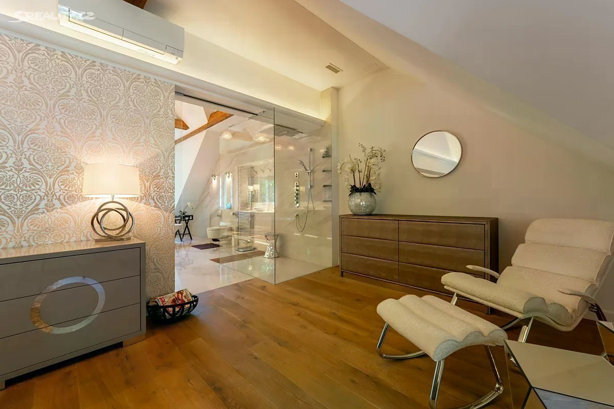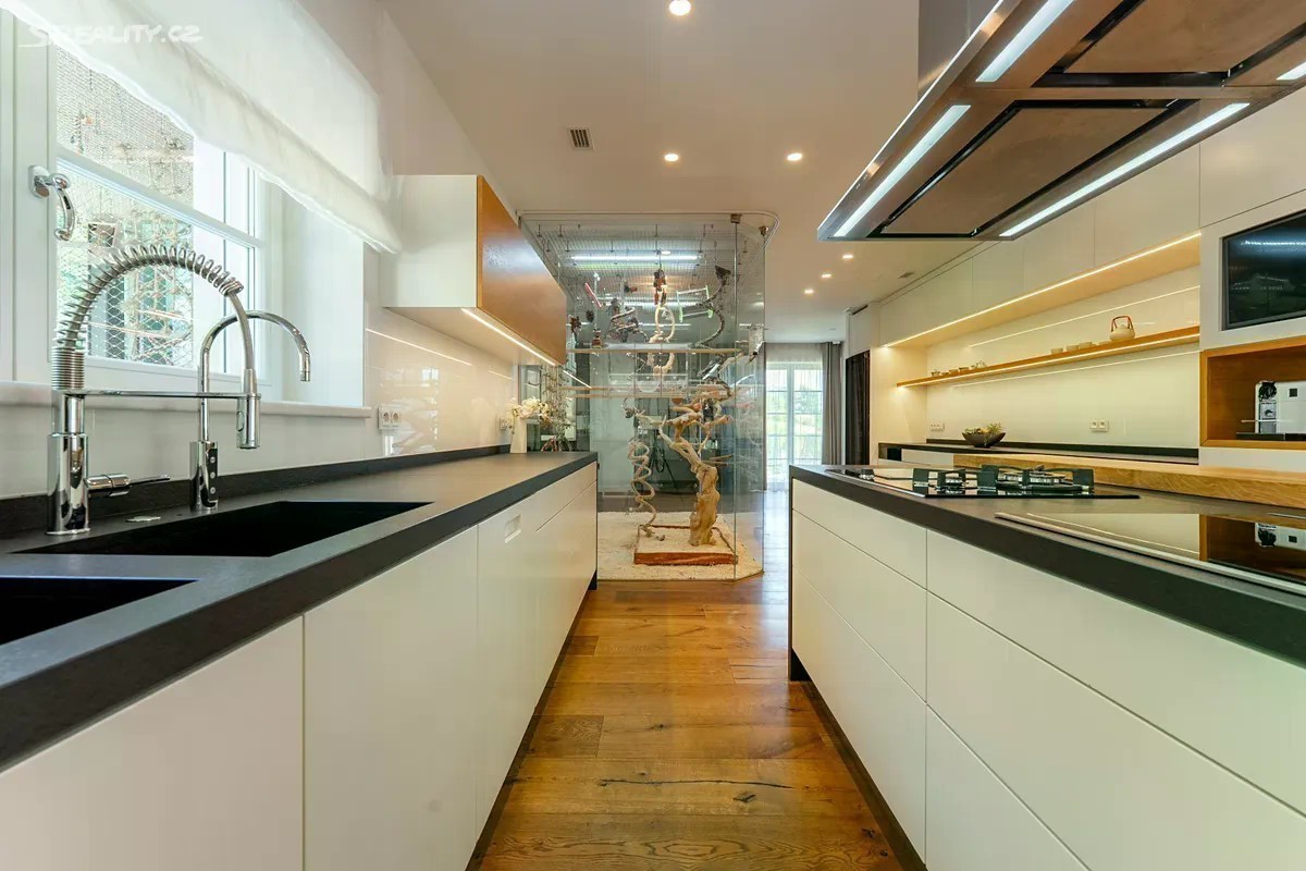 Hledáte unikátní bydlení na skvělé adrese? Prodej novostavby Luxusní vily s dotekem historie v Praze 6 - Lysolajích. Podlahová plocha 850 m2, pozemek 5 500 m2. Původní vila z 18 století byla (ve stejném duchu) kompletně přestavěna, avšak s použitím moderních technologií současnosti. Nyní zde stojí chytrý dům, dokončený v roce 2018, s proskleným výtahem, nejmodernější kuchyní a dokonale upraveným pozemkem. Svažitost a terasovité rozdělení pozemku na jednotlivé zóny, umožňuje jeho ideální využití a zároveň poskytuje dostatek soukromí a díky kamerovému a bezpečnostnímu systému je zaručena i nadstandardní bezpečnost. Zaujalo vás to? Tak čtěte dále. Pro více informací nás kontaktujte pouze emailem. Děkujeme! Tato rezidence v Praze 6 byla kompletně přestavěna, a to ve stejném duchu jako původní historická vila. Stavba byla dokončena v roce 2018, jedné se tedy o novostavbu, která je unikátní svojí polohou uprostřed zeleně, mimo ruch velkoměsta, současně 5 minut od centra a 12 minut od letiště. Hlavní vstup do vily je impozantní a vede kolem jezírka s Koi kapry a okrasnými kachnami. Této části vévodí 150letá lípa. Druhý vstup do vily vede z garáží. Všechna patra jsou propojena proskleným výtahem a schodištěm z masivního dřeva. Prosklený výtah zajišťuje bezbariérový přístup z garáže do celého domu. Všechny funkce chytrého domu lze ovládat na dálku, dům je chráněn vnitřním i vnějším kamerovým a zabezpečovacím systémem. Dům je napojen na vodovodní řád i na vlastní úpravnu vody z 60 m hlubokého vrtu. Ve všech prostorách domu je podlahové vytápění napojené na dva plynové kotle. O příjemné klima v interiéru se stará výkonná vzduchotechnika a klimatizace, což zaručuje nadstandardní komfort bydlení v jakémkoliv počasí. Pozemek o rozloze 5500 m2 je rozdělen na odpočinkovou, přírodní a užitkovou zónu. Trávník je udržován automatickými sekačkami a zavlažovacím systémem, napojeným na vrt a nádrž s dešťovou vodou. INTERIÉR Chytrý dům. 1 hlavní kuchyně + 2 doplňkové kuchyně. 9 obytných místností. 1 hlavní šatna + další šatny. 3 koupelny se sprchou / vanou a toaletou. 2 samostatné toalety. 4 krby. Wellness zóna s Whirlpool vanou, knippe, parní sauna, infra sauna a tělocvična. 4 skladové místnosti. 4 terasy. Prosklený výtah. Vzduchotechnika. Klimatizace. Garáž pro 3 - 5 vozidel. Úpravna vody. Technická místnost, serverovna, prádelna, dílna. Víceúčelová místnost (club) s kulečníkem a vinotékou. EXTERIÉR K venkovnímu odpočinku je určeno zákoutí na zahradě a několik teras. Na první terasu se vstupuje z kuchyně. Terasa má prosklenou střechu s výsuvnou markýzou a infra ohřívači. Další odpočinková zóna, která je využitelná i pro větší společnost, je vedle bazénu. Bazén o rozměru 4,2x8,2 m je vybaven elektricky ovládaným pojízdným krytem, protiproudem a chrličem. Další zajímavostí bazénu je prosklený bok a nechybí ani sprcha. Vedle bazénu je altán s elektrickými roletami, infra ohřívači, venkovní nerezová kuchyň s grilem. Pod altánem se nachází zahradní domek o dispozici 1+kk, který je celoročně obyvatelný a může sloužit jako samostatný byt. Součástí zahrady jsou dvě jezírka propojená s umělým potokem. Užitkové zahradní zóně dominuje vinohrad, dále všechny druhy ovocných stromů a keřů. Příjemnou atmosféru doplňují vysázené levandule. Nedílnou součástí domu je dependance o dispozici 2+kk. Tento byt se samostatným vchodem, a je vhodný pro ubytování hospodyně. Zaujala vás Rezidence Lysolaje? Pro více informací a domluvení prohlídky, nás kontaktujte pouze emailem. Děkujeme!
