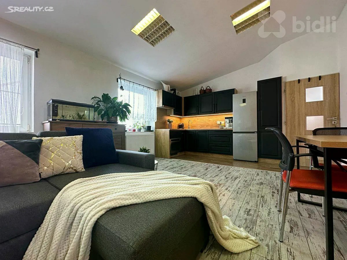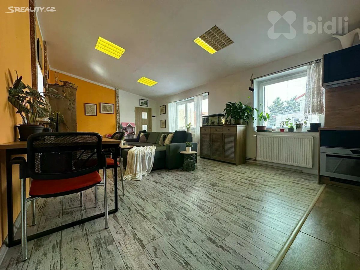 Zajímavá investiční příležitost. Byt byl pronajímán za 18 tis. Kč/měs. + popl. a elektř. Ve výhradním zastoupení majitele nabízíme k prodeji atypický, jižně orientovaný byt 3+KK s celkovou výměrou 73,8 m2, nacházející se v celém 2. NP zděné stavby z r. 2011, v okrajové části Kladna-Švermov, katastr. území Hnidousy. V této stavbě jsou vymezeny pouze 2 jednotky. V přízemí se nachází provozovna prodejny chovatelských potřeb, otevřená od pondělí do pátku 9-17hod. Byt má samostatný vchod. Od silnice se uzamykatelnou brankou vchází na zatravněný menší pozemek, kde je možné po stranách vysázet květiny, pěstovat v truhlíkách např. rajčata, jahody, bylinky., dát dětem pískoviště, lavičku k posezení, případně i gril. Z přízemí se po dřevěných schodech dostaneme do prostorné předsíně, kde je vchod na samostatné WC, do koupelny se sprchovým koutem, WC, pračkou a kotlem a dále pak vstupujeme do obývacího pokoje s kuchyňským koutem, vyrobeným na míru a vybaveným myčkou, indukční 2 plotýnkou, mikrovlnnou troubou s grilem, nerezovým dřezem a digestoří. Z obývacího pokoje se vchází do průchozího pokoje, který nyní slouží jako ložnice a dále pak do třetího pokoje, nyní dětského. Z tohoto pokoje je možné vyjít na menší dřevěnou podestu, která může po úpravě a dohodě s druhým majitelem, sloužit k posezení. Byt prošel před 2 lety zdařilou rekonstrukcí. Nově je rozvedená elektřina a topení v mědi, nový elektrokotel, nové interiérové dveře s obložkovými zárubněmi, na podlahách je plovoucí podlaha a dlažba. K dispozici je i úložný prostor v nářaďovně umístěné u vstupu do bytu. Benefitem tohoto bytu jsou nízké náklady na bydlení (voda 1.000,- Kč/měs. a elektřina cca 3.000,- Kč/měs.). Možnost parkování přímo u domu. Doporučujeme prohlídku. Byt je vhodný k rodinnému bydlení, ale i jako investice na pronájem. Byl pronajímán za 18 tis. Kč/měs. + služby. Elektřina byla na nájemníka. Ulice 28. října nabízí pohodlné městské bydlení s perfektní dostupností - potraviny, doprava, restaurace a služby v docházkové vzdálenosti. V okolí jsou rodinné i developerské projekty, což svědčí o rezidenční dynamice lokality. V nejbližším okolí je odpočinková zóna revitalizovaného bývalého dolu Ronna nebo vodní park Čabárna. Před domem je zastávka autobusů, které vás do 10 minut odvezou do centra Kladna nebo za 45 minut na pražskou stanici metra linky A Nádraží Veleslavín. Vlaková stanice Kladno-Švermov cca 15 min chůze od ulice 28. října, odkud je vlakové spojení do centra Kladna i Prahy.