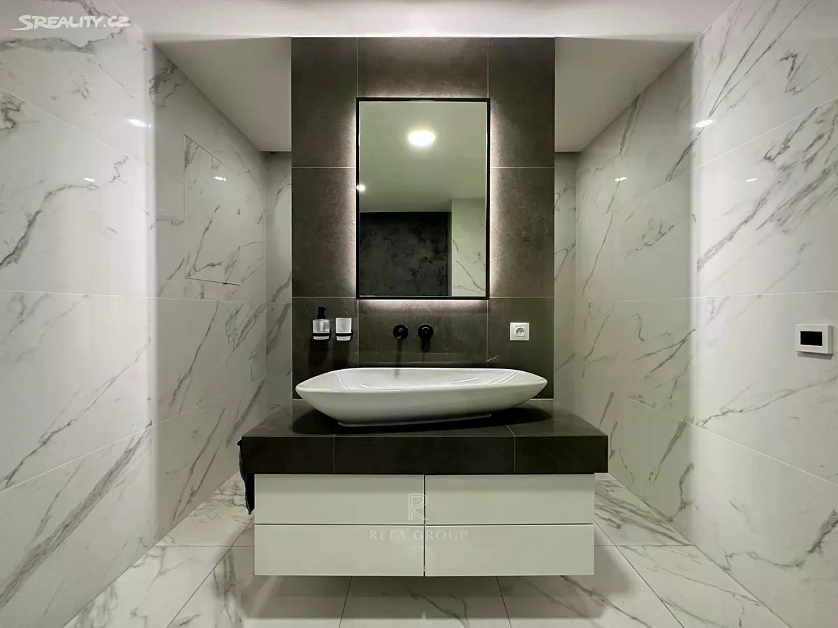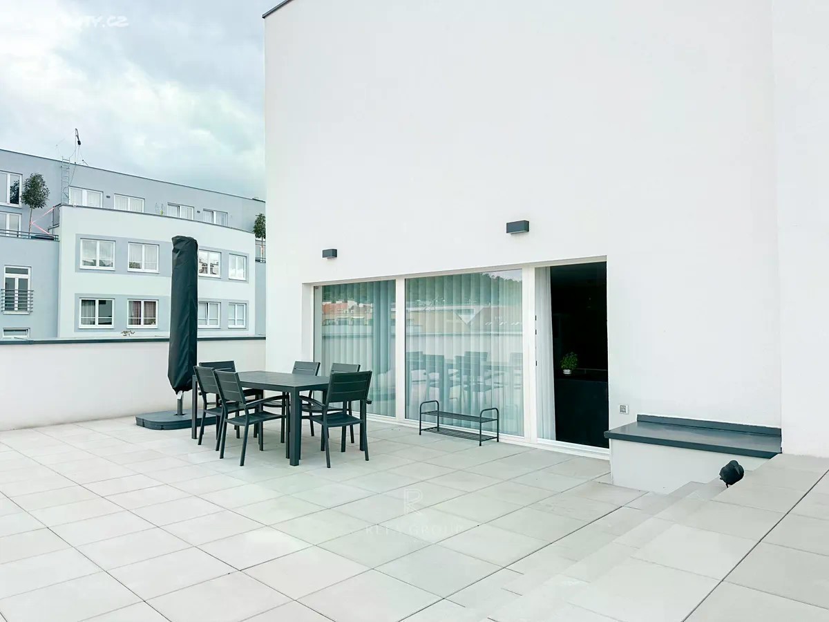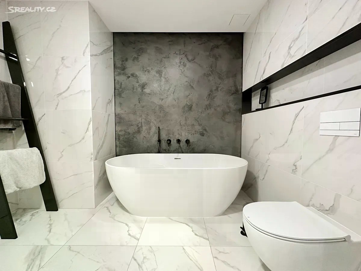 Design, komfort a prestižní adresa. Prémiový byt 3+kk s terasou a balkonem v rezidenci Karolina Plazza v srdci Karlína Dispozice: Jedná se o moderně vybavený byt s dispozicí: dva prostorné pokoje, obývací pokoj s kuchyní, technická místnost, koupelna s vanou a walk-in sprchou, dvě samostatné toalety, balkon, terasa a garážové stání. První pokoj (27,5 m²) má manželskou postel, skříň a vstup na severně orientovaný balkon. Druhý pokoj (18 m²) disponuje manželskou postelí, vlastní toaletou a vstupem na jihovýchodní terasu. Z obou pokojů i obývacího pokoje je přístup na terasu o velikosti 93,4 m². Obývací pokoj je vybaven gaučem, konferenčním stolkem, obývací stěnou, klimatizací, elektrickými žaluziemi, jídelním stolem a prémiovou kuchyňskou linkou se skrytým vstupem do technické místnosti s pračkou a sušičkou. Koupelna nabízí volně stojící vanu, walk-in sprchu, toaletu a vyhřívanou podlahu. Vstupní hala je zařízena vestavěnými skříněmi, botníkem a komodou. Byt je proveden v nejvyšším standardu s dominantním prvkem bílého mramoru. Velkou výhodou je soukromí - celé patro náleží pouze k tomuto bytu. K dispozici je také možnost pronájmu prostorného garážového stání v podzemní garáži, vhodné pro auto a motorku, případně dvě menší auta a sklep o rozloze 6,3m2. Lokalita: Karlín je vyhledávaná lokalita díky strategické poloze a široké nabídce restaurací, kaváren, obchodů a volnočasových aktivit. Rezidence Karolina Plazza spojuje moderní bydlení s centrální polohou - nachází se mezi ulicemi Sokolovská a Křižíkova, pouhé 2 minuty chůze od metra B a tramvají. Výhodou je i blízkost parku Vítkov s 30 hektary zeleně a panoramatickými výhledy, dostupného za 10 minut chůze. Byt je k nastěhovaní od 15. října Měsíční nájem: 65 000 Kč Poplatky: 12 000 Kč Vratná kauce V případě zájmu nás neváhejte kontaktovat a rádi se s Vámi potkáme na prohlídce.