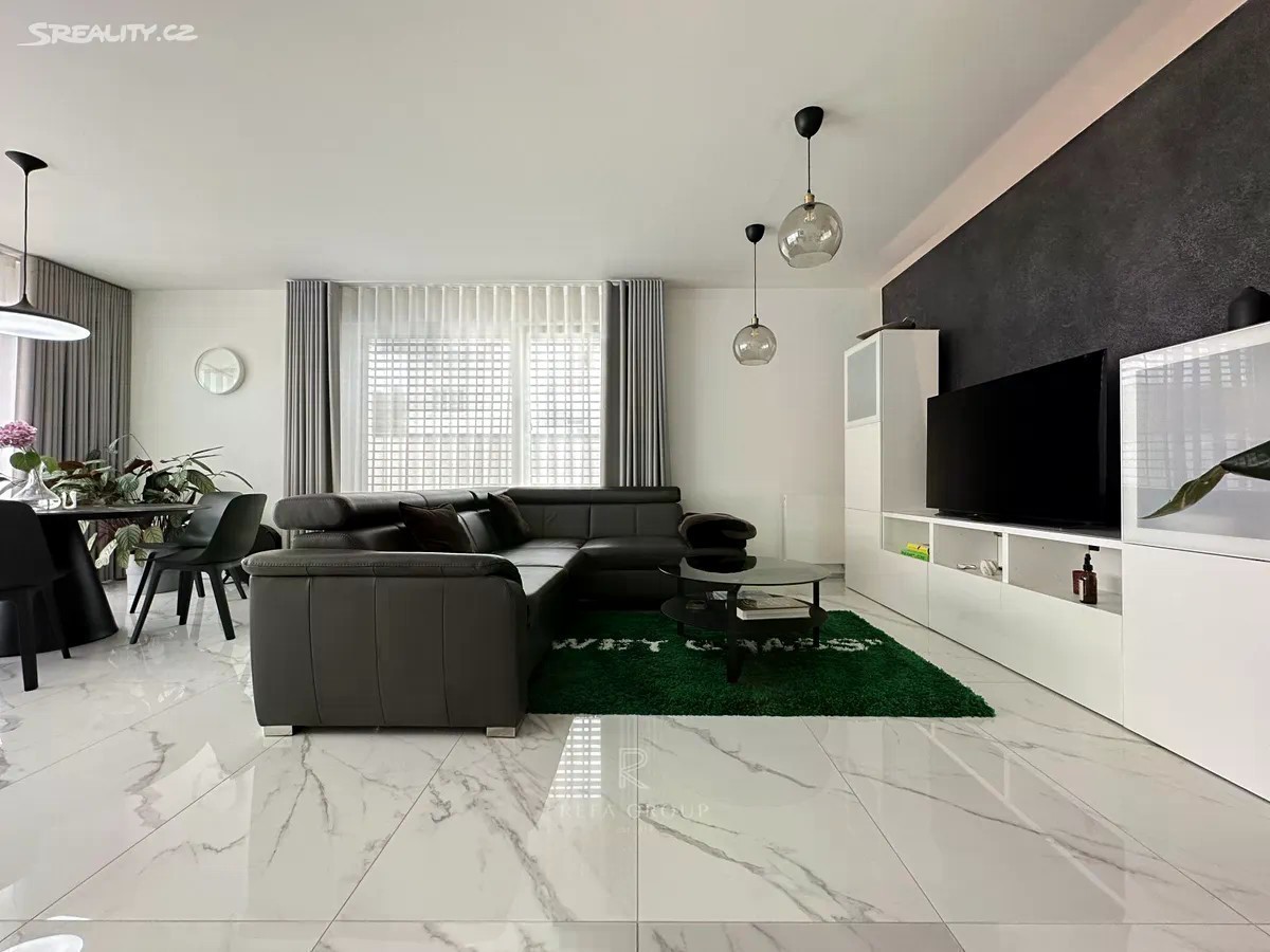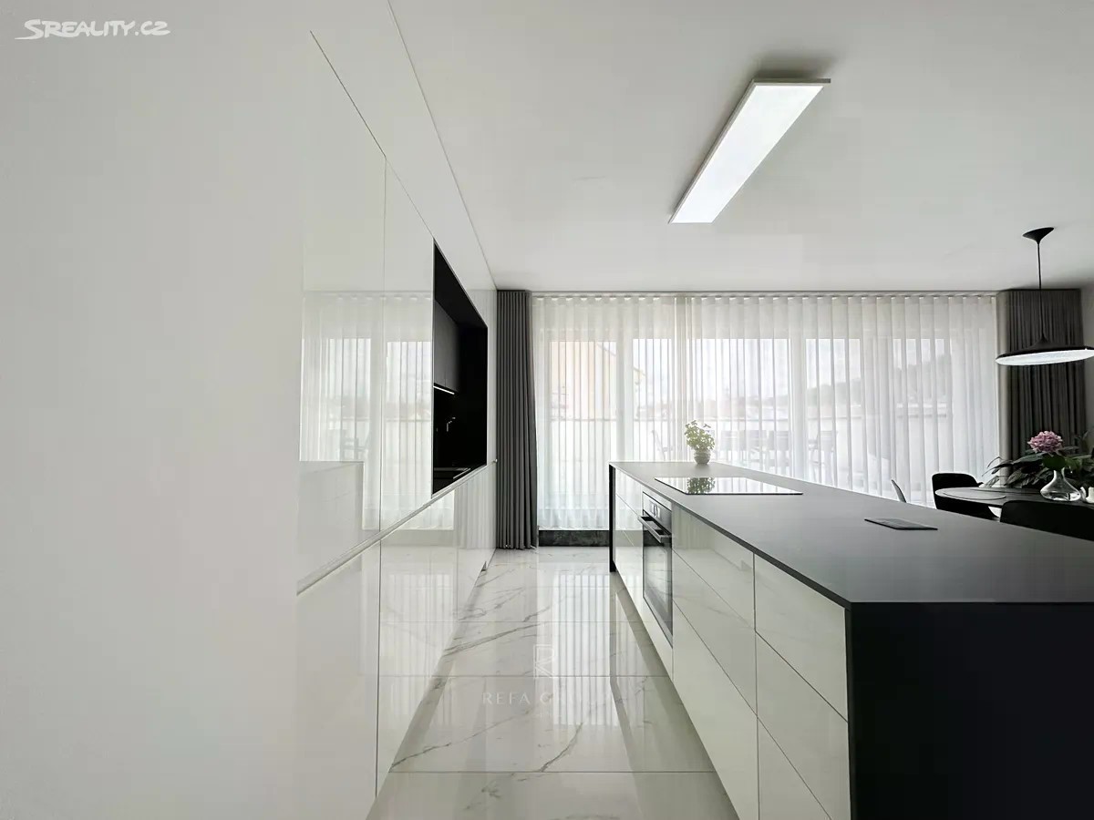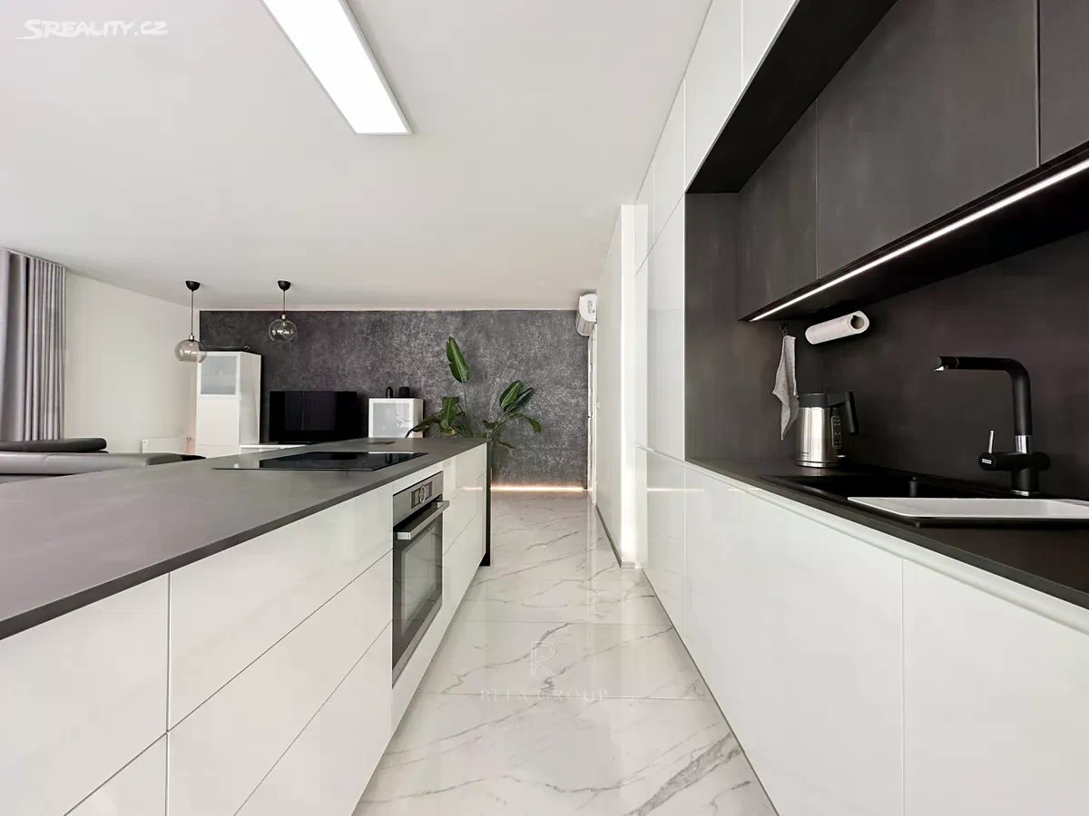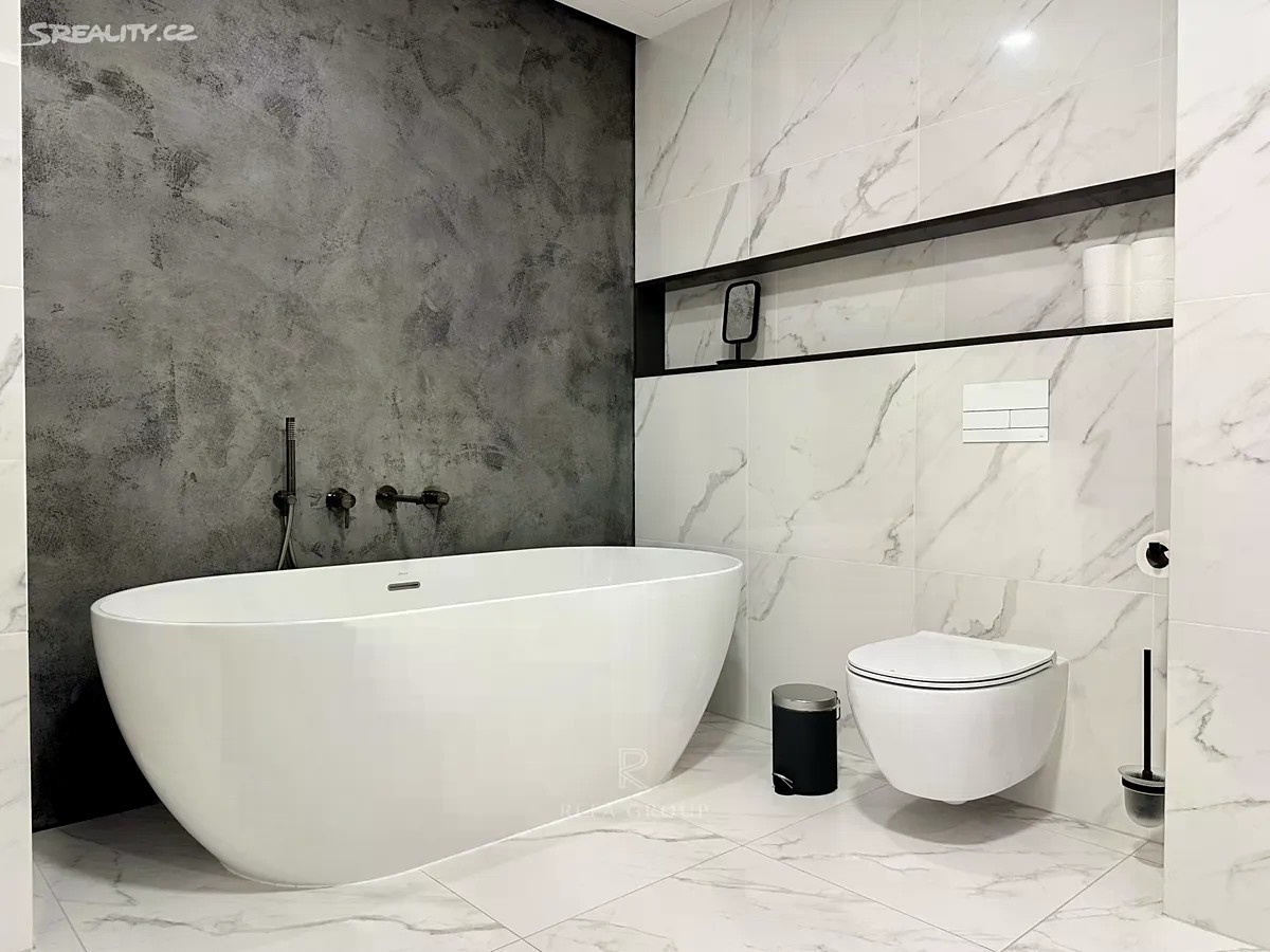 Design, komfort a prestižní adresa. Prémiový byt 3+kk s terasou a balkonem v rezidenci Karolina Plazza v srdci Karlína Dispozice: Jedná se o moderně vybavený byt s dispozicí: dva prostorné pokoje, obývací pokoj s kuchyní, technická místnost, koupelna s vanou a walk-in sprchou, dvě samostatné toalety, balkon, terasa a garážové stání. První pokoj (27,5 m²) má manželskou postel, skříň a vstup na severně orientovaný balkon. Druhý pokoj (18 m²) disponuje manželskou postelí, vlastní toaletou a vstupem na jihovýchodní terasu. Z obou pokojů i obývacího pokoje je přístup na terasu o velikosti 93,4 m². Obývací pokoj je vybaven gaučem, konferenčním stolkem, obývací stěnou, klimatizací, elektrickými žaluziemi, jídelním stolem a prémiovou kuchyňskou linkou se skrytým vstupem do technické místnosti s pračkou a sušičkou. Koupelna nabízí volně stojící vanu, walk-in sprchu, toaletu a vyhřívanou podlahu. Vstupní hala je zařízena vestavěnými skříněmi, botníkem a komodou. Byt je proveden v nejvyšším standardu s dominantním prvkem bílého mramoru. Velkou výhodou je soukromí - celé patro náleží pouze k tomuto bytu. K dispozici je také možnost pronájmu prostorného garážového stání v podzemní garáži, vhodné pro auto a motorku, případně dvě menší auta a sklep o rozloze 6,3m2. Lokalita: Karlín je vyhledávaná lokalita díky strategické poloze a široké nabídce restaurací, kaváren, obchodů a volnočasových aktivit. Rezidence Karolina Plazza spojuje moderní bydlení s centrální polohou - nachází se mezi ulicemi Sokolovská a Křižíkova, pouhé 2 minuty chůze od metra B a tramvají. Výhodou je i blízkost parku Vítkov s 30 hektary zeleně a panoramatickými výhledy, dostupného za 10 minut chůze. Byt je k nastěhovaní od 15. října Měsíční nájem: 65 000 Kč Poplatky: 12 000 Kč Vratná kauce V případě zájmu nás neváhejte kontaktovat a rádi se s Vámi potkáme na prohlídce.
