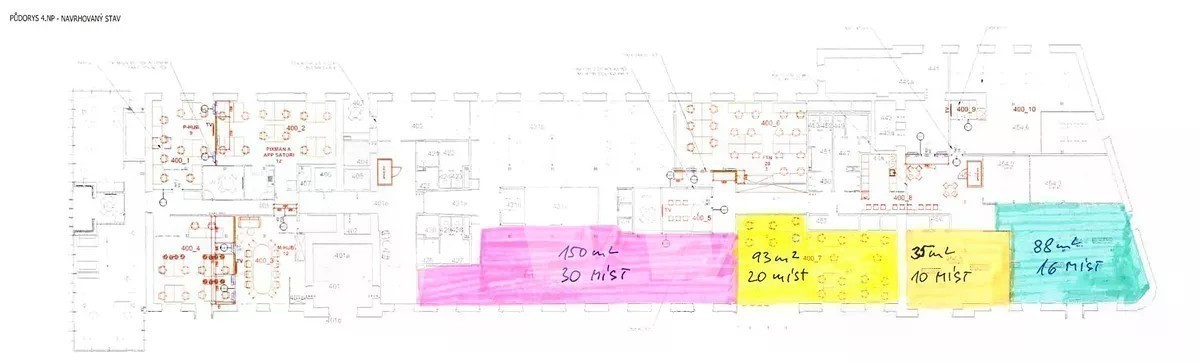 Nabízíme do podnájmu až 30 pracovních míst (servisovaných kanceláří) v plně vybavené kanceláři o velikosti cca 150 m2 umístěné ve 3.patře budovy E komplexu Classic7 (na plánku označeno růžově) : • jedná se o otevřený prostor, který je sdílený s další částí kanceláře stávajícího nájemce • včetně nábytku • podnájem je možný d ********* • k dispozici vám bude recepce, zasedací místnosti i telefonní budky a celé nynější zázemí • připraveno k nastěhování ihned Technická specifikace budovy: • otevíratelná okna • světlá výška prostor 2,9 - 3,2 m • 4 osobní výtahy v každém podlaží • centrální vzduchotechnika a čtyřtrubková klimatizace s možností individuální regulace • vnitřní žaluzie • zdvojené podlahy s podlahovými krabicemi • možnost napojení na optický kabel • CCTV zabezpečující vstupy do budovy • ACS - přístupový systém (magnetické karty nebo čipy) • elektronická požární signalizace • sprinklery ve všech prostorách V budově je podzemní parkování, případná parkovací místa dohodou. CLASSIC7 je moderní business park se 4 administrativními budovami, které nabízejí především kanceláře s parkovacími místy k pronájmu. Památkově chráněná BUDOVA E industriálního charakteru sloužící dříve jako parní mlýn byla citlivě zrekonstruovaná do dnešní podoby. K dispozici jsou služby jako například zázemí pro cyklisty, restaurace, kavárna, kantýna, supermarket, zubař, barbershop a bankomat. K dispozici ihned. NÁJEMCE NEHRADÍ PROVIZI.