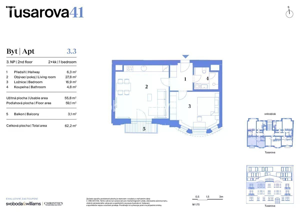 Nový byt s jižně orientovaným arkýřem a balkonem bude součástí architektonicky odvážného rezidenčního projektu, který působivě kombinuje secesní dům z počátku 20. století s moderní nástavbou v atraktivní lokalitě Prahy 7 - Holešovic, čtvrti bohaté na kulturní život i zajímavou gastronomii. Dispoziční řešení bytu ve 3. podlaží domu nabídne obývací pokoj s balkonem a přípravou na kuchyni, ložnici s arkýřem, koupelnu a předsíň. Vysoký standard zahrnuje třívrstvé dubové podlahy, repliky kastlových oken s vnějšími izolačními dvojskly a mosaznými kličkami, velkoformátovou keramickou dlažbu v koupelně a sanitární vybavení Kaldewei a Hansgrohe, lakované interiérové dveře, profilované dřevěné vstupní dveře bezpečnostní třídy III, vytápění radiátory (zdroj tepla tepelná čerpadla). Dům bude vybaven výtahem, k bytu lze přikoupit sklep. V bezprostředním okolí se nachází výborná občanská vybavenost, centrum je dostupné během pár minut jízdy MHD. Asi 3 minuty chůze je vzdálena tramvajová zastávka, pohodlně se dá dojít i ke stanici metra, novému vlakovému nádraží Praha-Bubny, kterým bude procházet rychlodráha na letiště, nebo po lávce HolKa až do Karlína. Řada okolních sportovišť nabízí možnost aktivního odpočinku stejně jako nedaleká Stromovka nebo nový park U Vody s komunitní zahradou, posezením, ohništěm, dětským hřištěm a venkovní posilovnou. Podlahová plocha 59,1 m2, balkon 3,1 m2. Dokončení projektu je plánováno na 4. čtvrtletí roku 2027.
