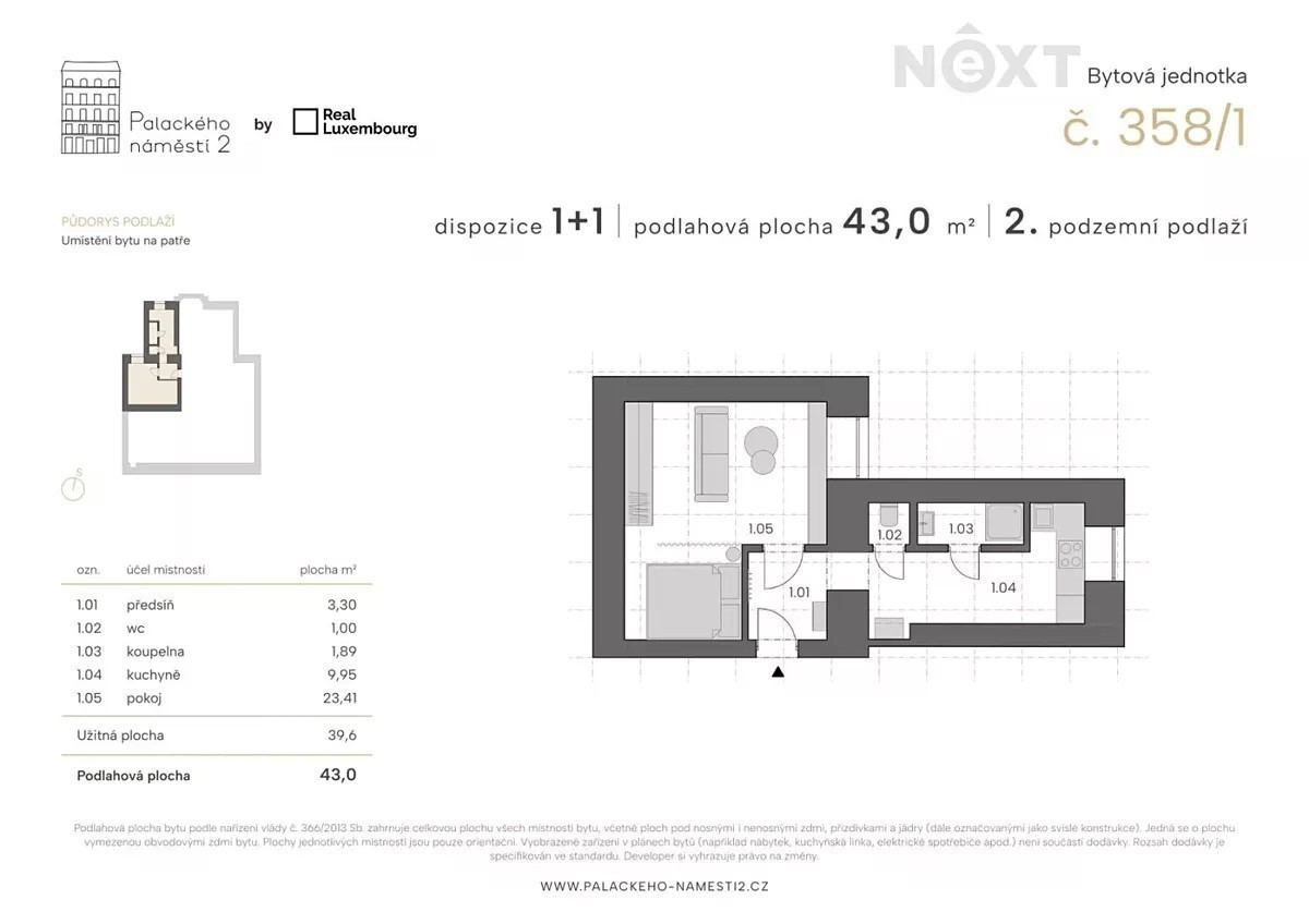 Obchodní prostory o celkové podlahové ploše 43 m2, k nimž náleží předzahrádka o výměře 80 m2. Nemovitost se nachází na jedinečném místě, na Palackého náměstí v centru Prahy. Prostory jsou ve 2. podzemním podlaží (okna jsou orientována do klidného vnitrobloku) dobře udržovaného historického domu s přímým vstupem do vnitrobloku. Jednotka nabízí prostor pro komerční využití (kancelář, ordinace, masérské studio). Součástí jednotky je i kuchyň s jídelním koutem, koupelna a samostatné WC. Z kuchyně se dostaneme na prostornou předzahrádku, která je situována v klidném vnitrobloku. K jednotce je možno si dokoupit sklepní kóji 2,4 m2. Jednotka je vhodná jak k bydlení, tak i ke komerčnímu využití a je ideální jako velmi dobrá investiční příležitost ke krátkodobým pronájmům s nadprůměrným zhodnocením. Palackého náměstí je jedním z nejvyhledávanějších a nejprestižnějších míst v srdci Prahy. Kromě skvělé dostupnosti kulturních a historických památek se v těsné blízkosti nachází náplavka, která nabízí jedinečné prostředí pro relaxaci u Vltavy. V letních měsících se zde konají oblíbené trhy, kulturní akce a plavby po řece. Tato lokalita je ideálním místem pro ty, kteří si cení výjimečného spojení přírody a městského života. V těsné blízkosti najdete veškerou občanskou vybavenost - obchody, restaurace, kavárny i školy. Výborná dostupnost MHD - tramvajová zastávka je jen pár kroků od domu a metro (trasa B) je ihned před vchodem do domu. Vzhledem k atraktivní lokalitě se jedná o ideální místo pro pohodlné bydlení i podnikání v samém centru Prahy. Součástí naší nabídky je kompletní servis, tedy právní služby a zajištění všech potřebných dokumentů, pomoc se zajištěním financování, pojištění nemovitosti i domácnosti, přepisy energií. Pouze u nás vám zajistíme moderní financování až na 30 let, bez ohledu na věk a prokazování příjmů, či nutnosti předkládat daňové přiznání (u podnikatelů). Zeptejte se nás a bydlete chytře! Bližší informace vám rád sdělím při osobní prohlídce tohoto bytu. Neváhejte mne kontaktovat! Pro komunikaci uvádějte evidenční číslo zakázky N114779.