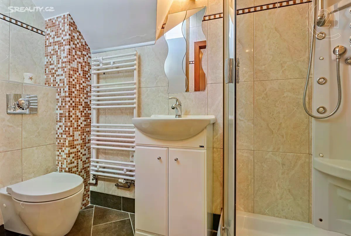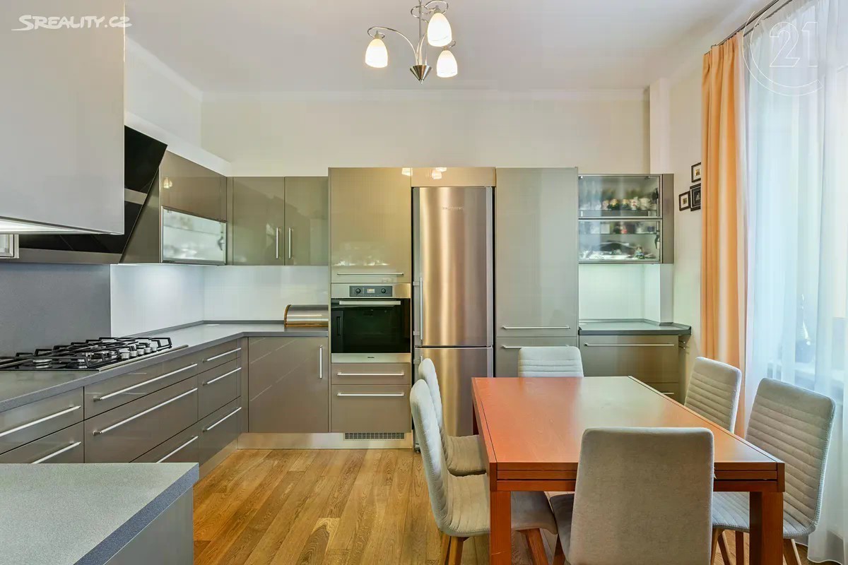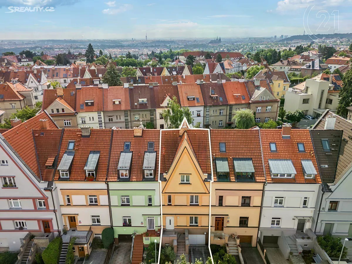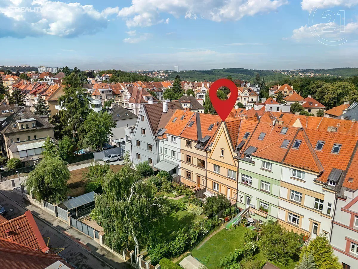 Je jen málo Pražských lokalit a čtvrtí, které jsou už svým názvem synonymem výjimečného místa určeného k životu a bydlení. Jednou z nich a bezesporu tou nejatraktivnější, je Hanspaulka. A právě zde, v Dejvicích v Praze 6 v ulici Nad Šárkou, Vám nabízíme k prodeji místně klasickou řadovou rodinnou vilu vystavěnou ve stylu art deco. Dům z období 30. let 20. století má v současné době dispozici 6+1 a celkovou užitnou plochu 243 m2, která zahrnuje prostornou garáž pro dva vozy s úložnými prostory a technickým zázemím domu, přízemí kde je k dispozici obývací pokoj, kuchyně a hostinská toaleta, v I. patře jsou dvě ložnice a hlavní koupelna s toaletou, ve II. patře pak dva pokoje, které slouží, jako pracovna, dětský pokoj a s nimi je na patře koupelna s toaletou a dále obytné podkroví, které je v současné době ateliérem a hernou. Celý dům byl od počátku milénia do dnešní doby průběžně rekonstruován a nadstandardně udržován, kdy došlo k výměně vstupních a interiérových dveří, nové jsou veškeré podlahy (dlažba, dřevo, lamino), vzniklo již zmíněné obytné podkroví, nová je také kuchyně a zcela nový je plynový kotel Vaillant, který v domě zajišťuje vytápění. Poloha domu spojuje ulice Nad Šárkou a Menšíkovská, ze které je možný vstup přímo na zahradu s terasou o celkové velikosti 141 m2, kde jsou krásné vzrostlé stromy a okrasné keře. Historie Hanspaulky sahá do konce 19. století, kdy na místě původních vinohradů a zemědělských usedlostí začala vznikat výstavba mnoha architektonicky zajímavých vil a rodinných domů, která pokračuje dodnes - především se jedná o funkcionalistické stavby. Oblast získala vlastní školu a další občanskou vybavenost. Na Hanspaulce bydlelo a bydlí mnoho významných osobností. Těsné sousedství domů navazující na přírodní oblast Horní Šárka jen podtrhuje atraktivitu této nemovitosti a místa. Pro bližší informace kontaktujte, prosím, makléře.