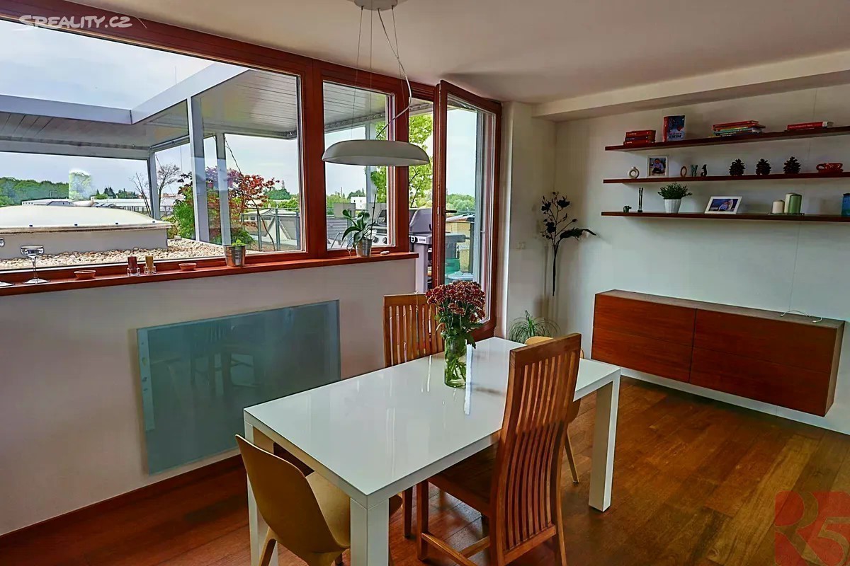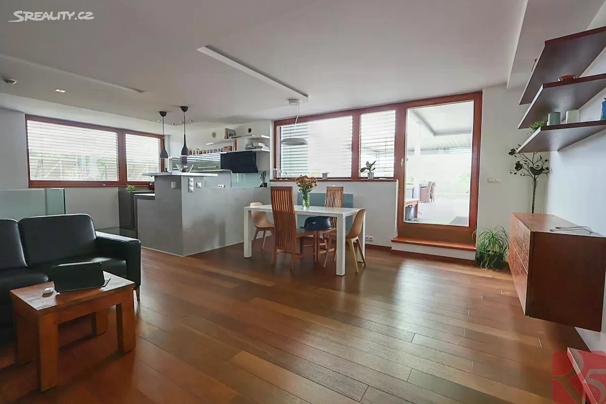 Nabízíme exkluzivně k prodeji nadstandardní byt o dispozici 4+kk a výměře 116 m v žádané lokalitě PrahaUhříněves, ideální místo pro rodinné bydlení. Prodej luxusního bytu 4kk 116m2 + terasa 58m2, garážové stání, sklep, komora. Energeticky nenáročný dům postavila společnost JRD, známá svou kvalitní výstavbou zaměřenou na nízkoenergetické domy. PENB B Byt byl postaven s důrazem na kvalitu a estetiku použity byly nadstandardní materiály jako dřevěné podlahy merbau, bezfalcové dveře, dřevěná okna s izolačními trojskly a masivní dřevěné schodiště. Dominantou bytu je prostorný obývací pokoj (44 m) s přímým vstupem na velkou terasu 58 m s výhledem do okolní zeleně ideální místo pro relaxaci a setkávání s rodinou a přáteli. K dispozici jsou tři ložnice, dvě koupelny, technická místnost, samostatná komora, sklep a garážové stání v suterénu domu. K nadstandardnímu vybavení patří: - velká šatna - dřevěné podlahy merbau - bezfalcové dveře - dýha merbau - skleněné prvky - dveře šatna, prosklený strop - okna s trojskly - venkovní elektricky ovládané žaluzie - solární ohřev vody - rekuperace - kvalitní zateplení 19-22cm - dřevoplastová terasa - hliníková pergola poskytující dostatek ochrany před sluncem - boční el. ovládané zastínění - čidla Jablotron Dispozice 4+kk nabízí ideální uspořádání pro rodinu s dětmi i pro náročné klienty hledající klidné, reprezentativní bydlení. Lokalita Uhříněves je dlouhodobě vyhledávaná pro svou rodinnou atmosféru, občanskou vybavenost, množství zeleně a výbornou dopravní dostupnost do centra Prahy. Neváhejte mě kontaktovat pro více informací nebo domluvení prohlídky. Tato nabídka je jedinečná svou kvalitou i umístěním.