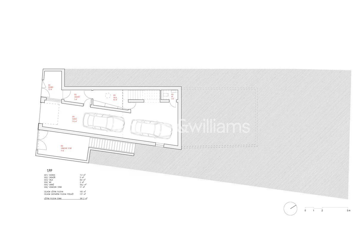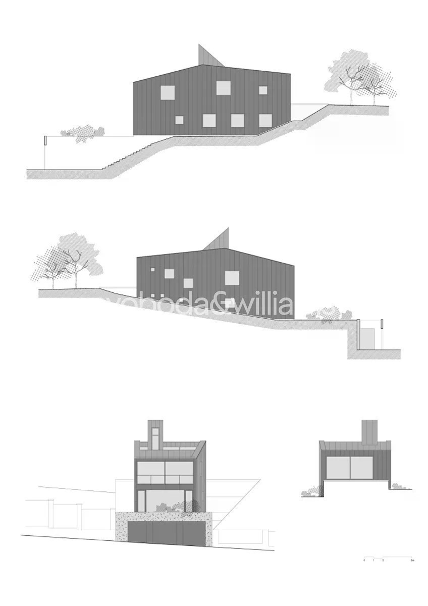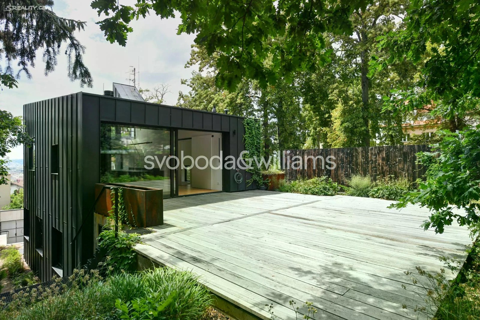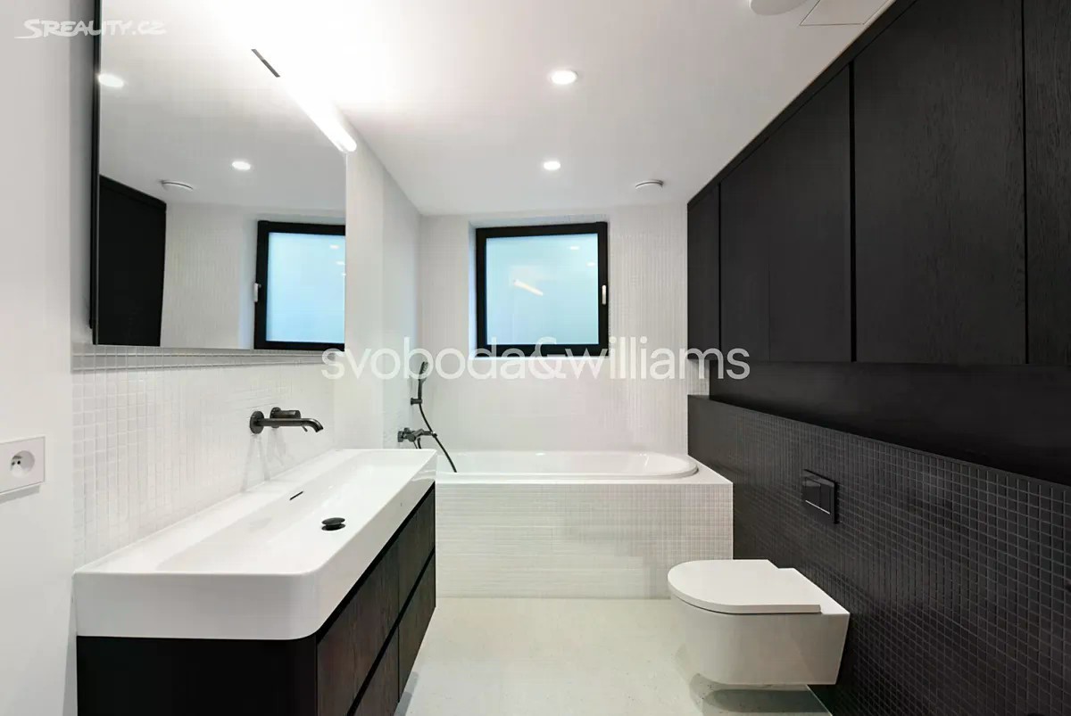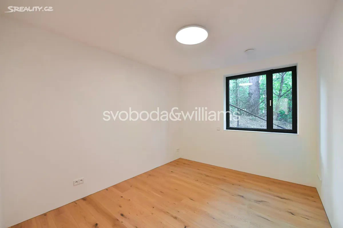 Novostavba sebevědomé vily s minimalistickým designovým interiérem, terasami poskytujícími výhledy přes centrum Prahy až do dalekého okolí, se zahradou nenáročnou na údržbu a s bezproblémovým parkováním stojí v tradiční vilové čtvrti Prahy 8 v jižním svahu nad Vltavou na rozhraní čtvrtí Libeň a Troja. První podlaží slouží jako soukromá zóna obsahující 4 ložnice, 2 koupelny (1 s vanou, 1 se sprchovým koutem, samostatnou toaletu, technickou místnost, chodbu a schodiště. Místem setkávání rodiny i přátel je 2. podlaží, kde se nachází velkolepý obytný prostor propojený třemi schůdky s jídelnou a kuchyní, na niž navazuje velká zahradní terasa. K obývacímu pokoji přiléhá lodžie poskytující působivé výhledy. Celý dům korunuje střešní terasa, která svými mnohakilometrovými výhledy ještě předčí lodžii. Suterén obsahuje garáž pro 3 vozy (stojící za sebou), jedno venkovní stání ve vjezdu, toaletu, zádveří a schodišťovou halu. Vila byla zkolaudována na konci r. 2024. Ke špičkové technologii a vybavení patří rekuperace a klimatizace zhotovené s maximálním důrazem na estetiku (skryté rozvody), velkoplošná okna s předokenními kovovými žaluziemi ovládanými přes aplikaci, vestavný nábytek a kuchyně dle autorského návrhu renomovaného architektonického studia, kuchyňské spotřebiče Miele, designová svítidla vyrobená na zakázku. V celém domě je podlahové vytápění (zdroj tepla plynový kotel Geminox), dům střeží zabezpečovací systém Jablotron. Hlavní terasa je pokryta přírodními fošnami z exotického mahagonu dovezeného z Libérie, pod terasou je skryta příprava na bazén (3 x 7 m) a technickou místnost. Zahrada byla založena dle návrhu úspěšného brněnského studia a skladba rostlin je pojata tak, aby nevyžadovala pravidelnou automatickou závlahu. Moderní stavba je zasazena do boční ulice, přibližně 5 minut chůze od stanice metra Kobylisy a tramvajových zastávek, cesty autem usnadňuje nedaleký tunelový komplex a nájezdy na dálnice D8 a D10. V okolí nebo krátké dojezdové vzdálenosti je vše potřebné, v pěším dosahu jsou kavárny, restaurace, obchody, lékárna, mateřská i základní škola, četná sportovní centra včetně koupaliště. Oblast vyniká množstvím zeleně, blízko je lesopark Okrouhlík, park Dlážděnka, daleko není ani do Ďáblického háje nebo rozlehlého přírodního parku Drahaň-Troja, jehož součástí je i botanická a zoologická zahrada. Celková plocha 356,1 m2, zastavěná plocha 173 m2, zahrada 295 m2, pozemek 468 m2.