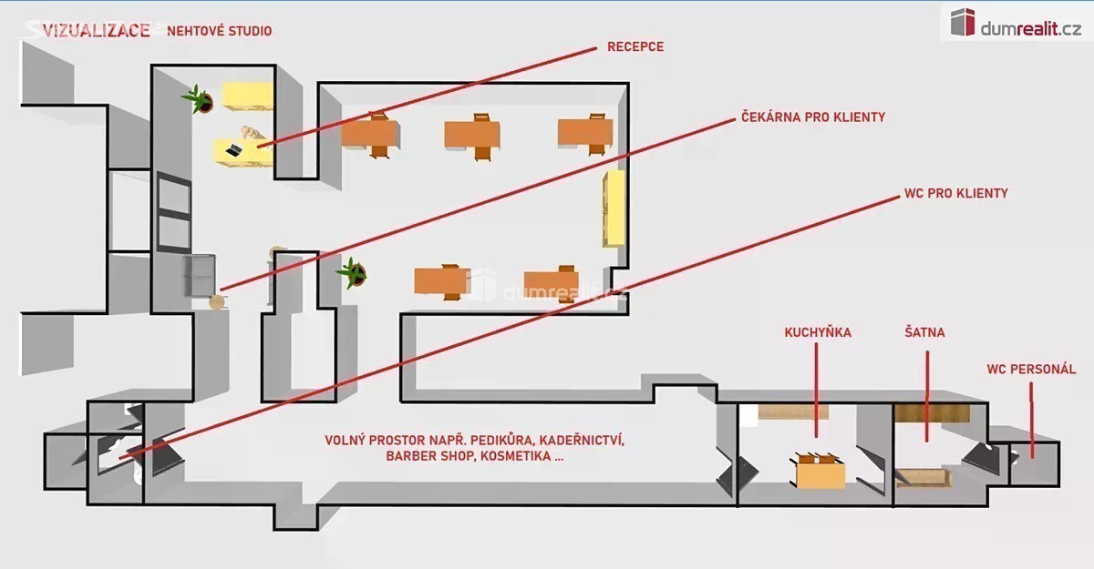 Naše společnost Vám zprostředkuje pronájem komerčního prostoru v suterénu hl. nádraží Brno, spojka mezi obchodním centrem Vaňkovka a centrem města Brna. Nabízený prostor má celkem rozlohu 93m², rozdělen ve dvou propojených prostorech 51m² a 42m². Sociální zázemí (WC) se nachází v menším prostoru, ale dá se rozšířit a vytvořit i kuchyňku nebo zázemí dle požadavků nájemníka. Jedná se o prostor, kde denně projde cca 140.000 lidí. Jednotka je aktuálně kolaudována jako obchod, ale není problém provést rekolaudaci na jiný záměr podnikání (nehtové studio, manikúra/pedikúra, kadeřnictví, kosmetika, lehký gastro provoz.aj.) Nabízený prostor bude procházet zásadní rekonstrukcí, kdy bude možno rekonstrukci a úpravy přizpůsobit potřebám nájemníka dle daného oboru podnikání. Rekonstrukce bude spočívat v odvlhčení, nové omítky, nové podlahy, odpad, voda, elektroinstalace, topení a vzduchotechnika. Zásobování je možné z parkoviště pošty, přes první nástupiště. Dále nabízíme možnost pronájmu parkovacích míst. Provedení rekonstrukce se odhaduje na 6-8měsíců od podepsání nájemní smlouvy a splnění podmínek z ní vyplívajících. Při podpisu smlouvy bude požadováno uhradit nájemné, zálohy, kauci a provizi RK. Předpokládané zahájení provozu nového nájemníka 1.7.2026. Podmínky pronájmu: - nájemné 73.563,- Kč /měsíc +DPH - záloha na správu budovy 13.950,- Kč - záloha na vodné a stočné bude vypočtena dle oboru podnikání a počtu osob - elektřinu si nájemce zajistí na vlastní náklady přímo od dodavatele - kauce ve výši 3měsíčních vč. DPH (nájemné, zálohy na energie, zálohy na správu budovy) - min. doba pronájmu 5let Preferujeme dlouhodobého, zajištěného a stabilního nájemníka. V případě jakýchkoliv dotazů či domluvení prohlídky kontaktujte makléře. Ev. číslo: 651958.
