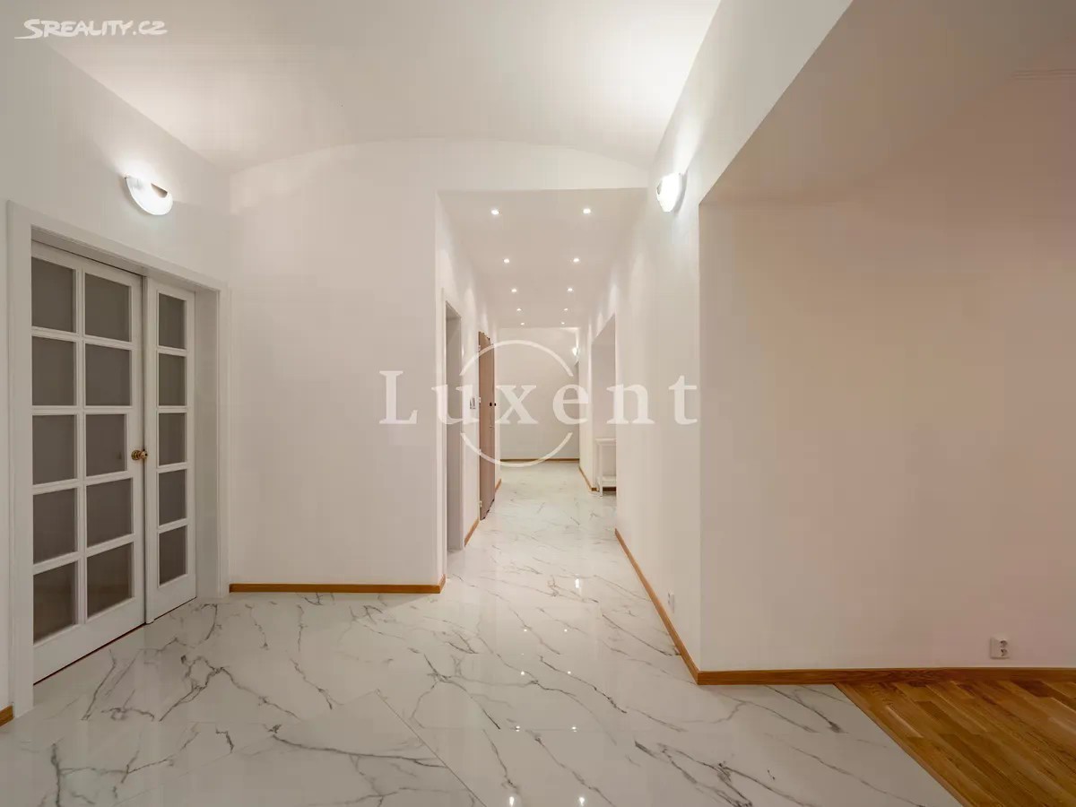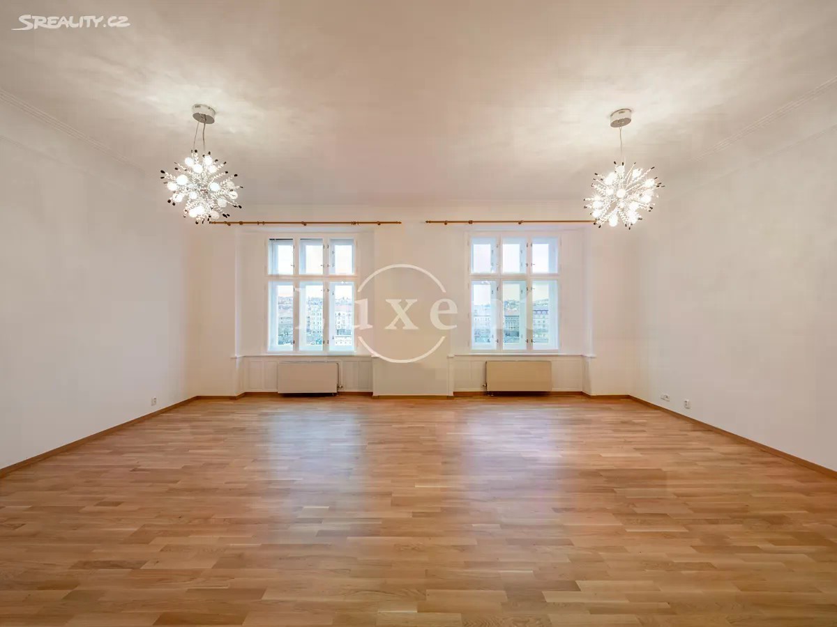 Nabízíme pronájem nezařízeného, ale prostorného bytu 6+1 o obytné ploše 200 m2 na Rašínově nábřeží s krásným výhledem na Vltavu a její malostranský břeh. Byt se nachází v kompletně zrekonstruovaném secesním domě s výtahem a množstvím nadstandardních doplňkových služeb jako je 24hodinová recepce, bazén (6x11 m), sauna, vířivka, fitness a herna s kulečníkem. Dispozice bytu zahrnují čtyři ložnice, obývací pokoj, kuchyň, jídelnu, vstupní halu, komoru a dvě koupelny s toaletou, z nichž větší disponuje vanou a menší sprchovým koutem. Plně vybavená kuchyň má kromě veškerých spotřebičů také zabudovanou pračku. Byt je po kompletní rekonstrukci. V bezprostředním okolí bytu se nachází veškerá občanská vybavenost - obchody, služby, školy, kvalitní restaurace a kavárny. Skvělá dopravní dostupnost. Stanice metra Karlovo náměstí a tramvajová zastávka Palackého náměstí leží v docházkové vzdálenosti. Přímo před domem se nachází klidná odpočinková zóna plná zeleně - Zítkovy sady a společensky atraktivní náplavka. K dispozici od 1.10. 2025