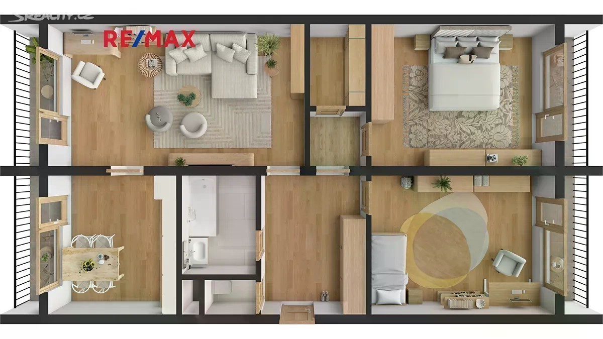 Nabízím vám k prodeji prostorný byt 3+1 s celkovou výměrou 99,3 m², který se nachází na třídě Edvarda Beneše v Hradci Králové. Byt se nachází v 7. nadzemním podlaží revitalizovaného panelového domu s výtahem. Výhodou je bezbariérový přístup a díky vysokému podlaží nabízí příjemný výhled do okolí a dostatek světla po celý den. Byt je v družstevním vlastnictví s možností převodu do osobního vlastnictví. Dispozice bytu zahrnuje prostornou vstupní chodbu s místem pro velkou vestavěnou skříň, samostatnou toaletu, koupelnu s vanou a místem pro pračku, komoru, dvě ložnice a obývací pokoj propojený s kuchyní a jídelnou. V jedné z ložnic je velká vestavěná šatní skříň. Každý pokoj i kuchyň má přístup na vlastní lodžii. Bytové jádro je zděné, okna jsou plastová osazená žaluziemi. Dům prošel kompletní revitalizací včetně nové fasády, střechy a úprav společných prostor. V domě jsou dva výtahy a společná kolárna. K bytu náleží sklepní kóje umístěná v přízemí domu. Lokalita patří mezi vyhledávané části města. V docházkové vzdálenosti se nachází školy, školky, obchody, poliklinika nebo nemocnice, lékárna, pošta i restaurace. Jen pár minut chůze od domu začínají oblíbené pěší a cyklistické stezky vedoucí do okolních lesů. Do centra Hradce Králové se dostanete městskou hromadnou dopravou přibližně za deset minut, zastávka je nedaleko domu. Tento byt nabízí ideální kombinaci prostorného bydlení, klidné lokality a výborné dostupnosti veškeré občanské vybavenosti. Neváhejte mě kontaktovat pro domluvení prohlídky bytu. Certifikovaný realitní makléř Michal Parák
