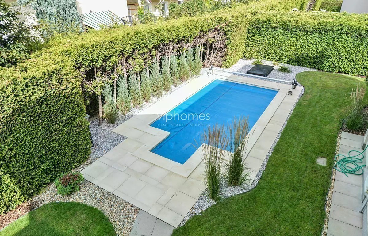 Nabídka luxusního domu v Nebušicích, který je součástí vilového komplexu situovaného v exklusivní komunitě, v přímém sousedství akreditované mezinárodní školy ISP v Nebušicích. V uzavřeném areálu o rozloze 5000 m2 se nachází 7 luxusních vil, každá má svou zahradu a vyhřívaný bazén. Dům má celkovou plochu 270 m2, celkem 4 ložnice, 3 koupelny. V přízemí vily se nachází prostorný obývací pokoj s krbem, jídelnou, plně vybavenou kuchyní a přístupy na terasu a zahradu, šatna, toaleta pro hosty, prádelna, integrovaná garáž pro dva vozy - vrata a vjezdová brána na dálkové ovládání. V patře jsou čtyři ložnice - dvě z nich s vlastními koupelnami (vana/bidet/ WC), třetí koupelna (sprcha/bidet), toaleta pro hosty a galerie. Kuchyň/vybavení: sklo keramická plotna, horkovzdušná trouba, myčka nádobí, lednice s mrazákem, odsávač par. Prádelna: pračka, sušička. Satelitní - anténní rozvod do všech obytných místností včetně kuchyně a na terasu. Dvě telefonní linky - rozvod po celém domě. Možno zřídit ISDN / ADSL. Podlahové topení v celém domě. Zabezpečovací zařízení rozdělené na jednotlivé zóny (noční režim atd.) s připojením na pult centrální ochrany. Videotelefon propojen s vchodem a vjezdem do areálu. Automatické zavlažování zahrady. Na zahradě bazén 5 x 3 x 1,5 m, podvodní osvětlení, vyhřívání, zařízení pro plavání proti proudu vody. Poplatky za spotřebu energií cca 16 000 Kč/měsíc, 12.000,- Kč zahrnují údržbu zahrady, vodné a stočné, údržba bazénu a údržbu a úklid areálu.
