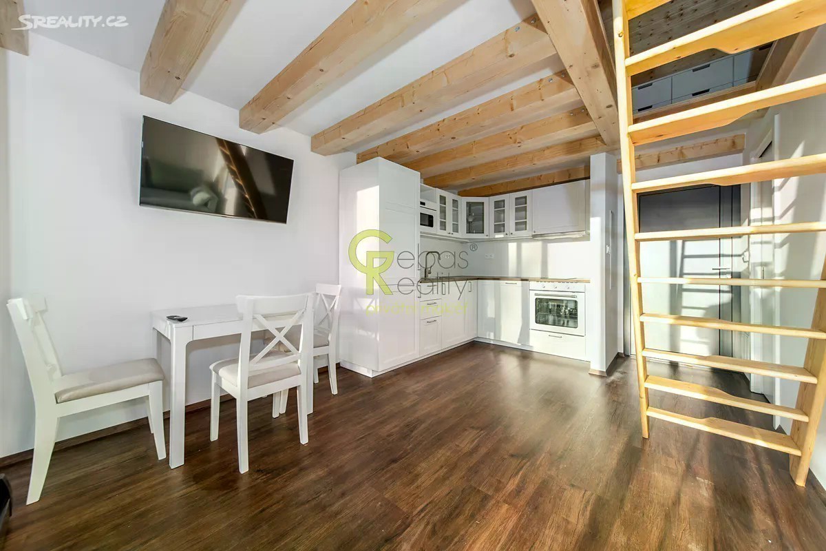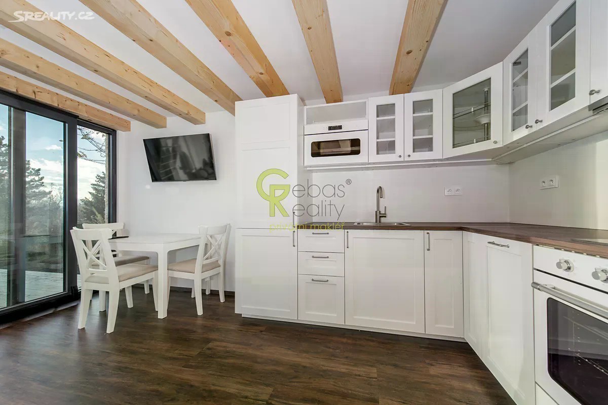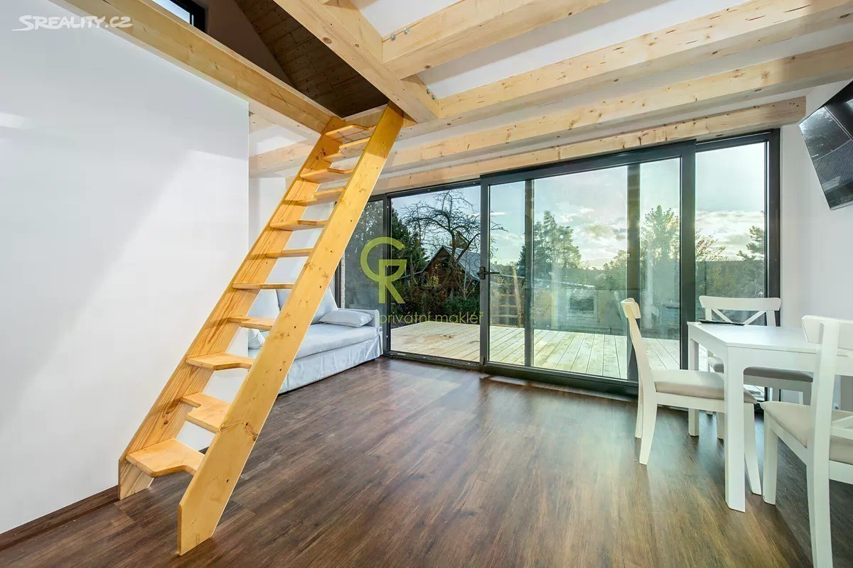 Ve výhradním zastoupení si vám dovolujeme zprostředkovat pronájem novostavby exkluzivního a celoročně obyvatelného zahradního domku v prestižní chatařské osadě Třešňovka v ulici Na Lahovské, Praha - Velká Chuchle. Dům ve stylu ekologického tinyhouse o dispozici 2+kk nabízí obytnou plochu o velikosti cca 50 m² + plochu terasy 15 m² přístupnou přes atraktivní velkoformátové okno HS portál po celé délce terasy a domu s orientací na jižní stranu. Stavba je umístěna na pozemku o krásné a soukromí zajišťující velikosti 1000 m², který je součástí celoročního pronájmu. Dům k pronájmu včetně vybavení, které nabízí standard vyšší, než mnoho bytových jednotek. K dispozici kompletně vybavená kuchyňská linka, včetně indukční sklokeramické desky, horkovzdušné trouby, mikrovlnky, myčky a úložných prostor. V obytné části k dispozici dále rozkládací sedací souprava, TV, jídelní stůl se židlemi. Ve 2.NP domu k dispozici manželská postel s úložnými prostory a 2 komody. Koupelna domu se skleněným bezbariérovým sprchovým koutem, toaletou a otopným žebříkem a podlahovým topením. Dům napojen na IS - obecní voda, elektřina, odpad (jímka). Ohřev vody za pomoci elektrického boileru (60l), vytápění úspornými el. přímotopy. Vstup a vjezd na pozemek přes dálkově ovládanou vjezdovou bránu po zámkové dlažbě (parkování pro 2 auta). Dům určen pouze k dlouhodobému pronájmu pro jednotlivce nebo pár. K dispozici od 1.10.2025, prohlídky po domluvě. Pro více informací nebo prohlídku nás kontaktujte, rádi se Vám budeme věnovat. (PENB - D).