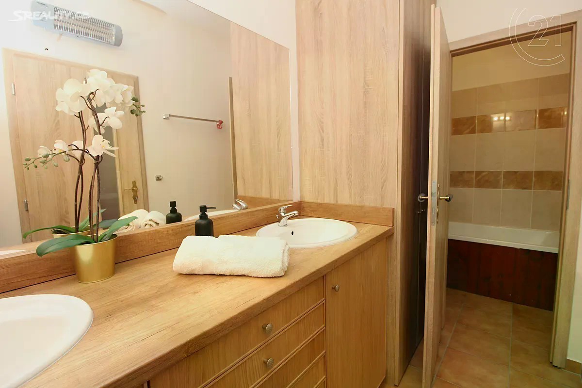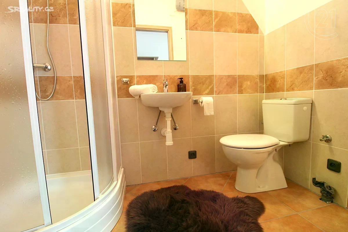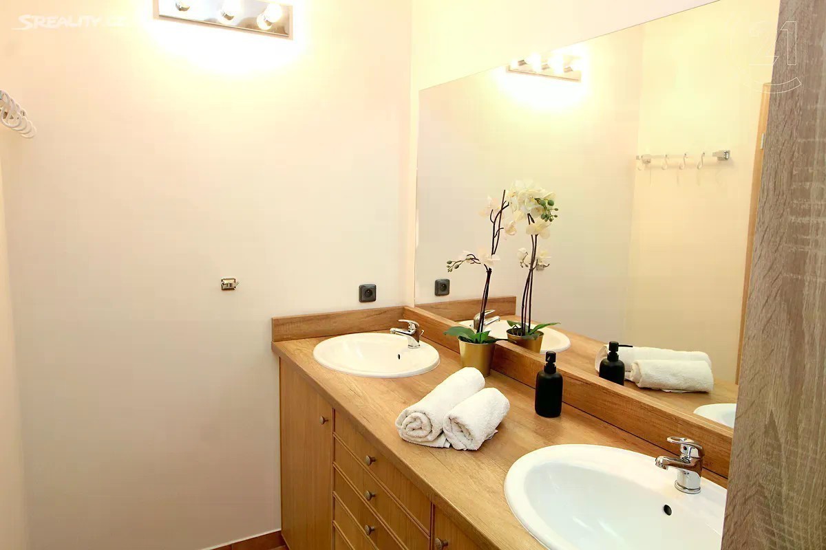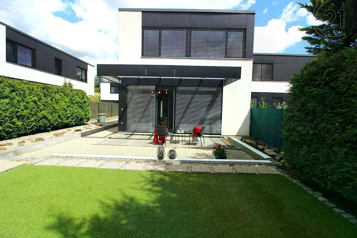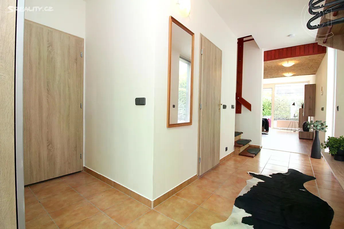 Ve výhradním zastoupení klienta nabízíme k prodeji velmi hezký 4kk s garáží a udržovanou zahrádkou. Dům byl postaven v r.2006, ovšem k trvalému bydlení nikdy nesloužil, dá se tedy považovat za novostavbu, kterou si každý majitel může přizpůsobit svému vkusu. Nemovitost disponuje prostornou předsíní, která je otevřena do obytného prostoru, jehož celá jedna stěna je prosklena směrem do zahrady, což zajišťuje velmi vysoký světelný komfort. V přízemí je ještě koupelna a vytápěná garáž, přístupná též z předsíně. V patře nalezneme velkorysou hlavní ložnici s vlastní koupelnou a integrovanou velkou šatnou, dále dva identické menší pokoje s vestavěnými skříněmi a další koupelnu s toaletou a vanou. Všechna okna jsou osazena venkovními žaluziemi na el. pohon, což zajišťuje velmi dobrou kontrolu teploty v zime i v létě. Podlahy jsou dřevěné nebo osazené dlažbou, vytápění a ohřev vody zajišťuje plynový kotel. Dům je součástí developerského projektu Dolina a slepá ulice v níž je nemovitost situována zajišťuje klidné bydlení. Lokalita horní části Lysolaj je celkově velmi příjemná z hlediska dopravní obslužnosti i blízkostí přírodních památek jako např. Housle, Kozí hřbety, Divoká Šárka. Veškerá infrastruktuta je v blízkosti,škola a školka v docházkové vzdálenosti. Prohlídky jsou možné od 13.8. a určitě je doporučujeme.