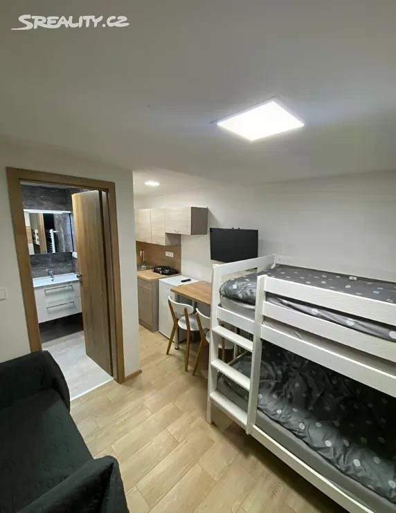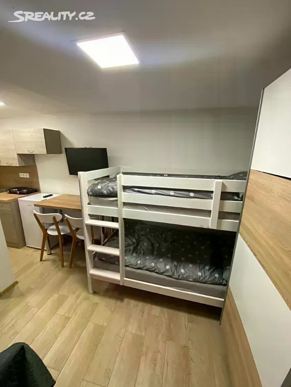 Nabízíme k pronájmu přízemní byt o velikosti garsoniéry na adrese Štefánikova, Zlín. Dispozice: 1+kk Energetická náročnost: B - Velmi úsporný. Kompletně vybavené: Kuchyňský kout s lednicí a vařičem. Koupelna se sprchovým koutem a WC. Dále je v pokoji šatní skříň, stůl, 2 židle, TV a dvoupatrová postel s kvalitní matrací s polštářem, přikrývkou, plachtou a povlečením. Parkovací místo přímo u domu, WI-FI. Cena 9.900,- + energie K dispozici od 1.9.2025