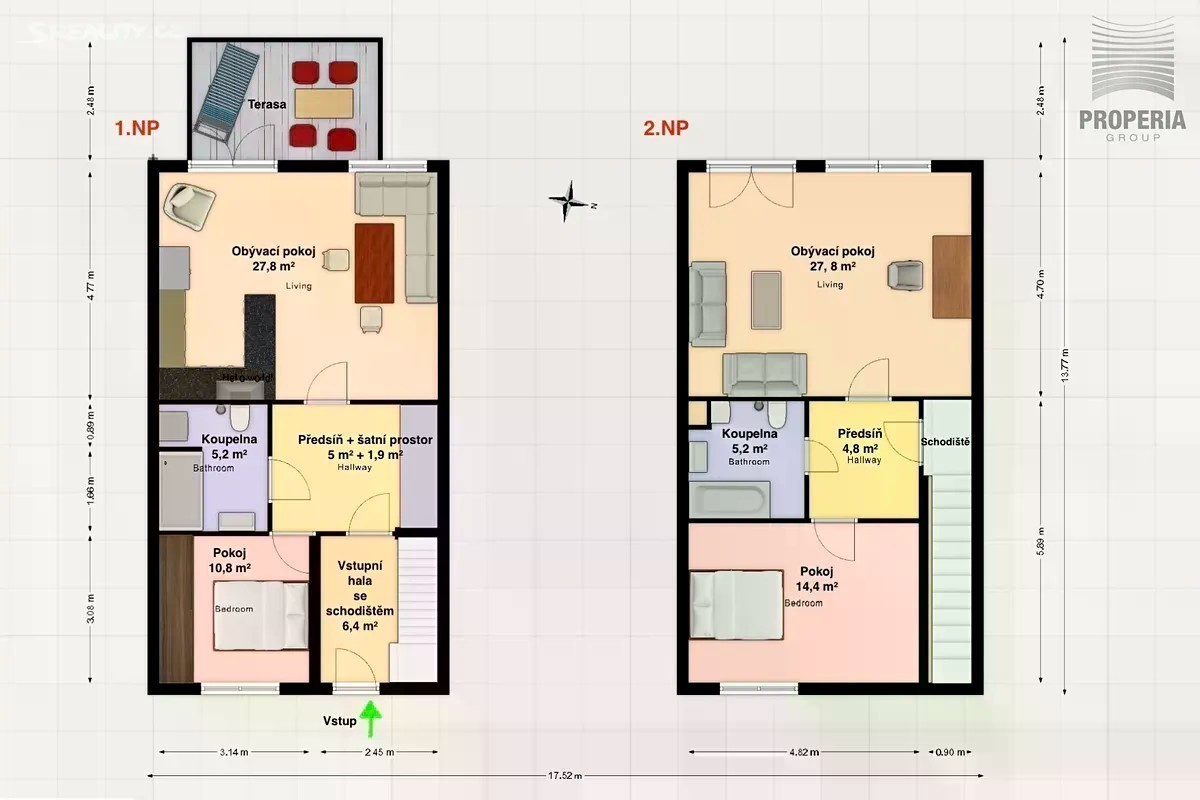 Hledáte moderní bydlení, které kombinuje pohodlí bytu s výhodami rodinného domu? Nabízíme Vám jedinečnou příležitost ke koupi mezonetového bytu 4+kk o celkové ploše 106 m², který se nachází v klidné rezidenční části Slavkova u Brna, v uzavřeném komplexu řadových domů s privátním parkovištěm a společným bazénem. Tato nemovitost nabízí hned několik možností využití - ideální rodinné bydlení nebo investiční příležitost: byt lze snadno rozdělit na dvě samostatné jednotky 2+kk a pronajímat je odděleně. Dispozice bytu: 1. NP: • Prostorný obývací pokoj s kuchyňským koutem (27,9 m²) • Pokoj (10,7 m²) • Předsíň (5 m²) • Koupelna se sprchovým koutem a WC (5,2 m²) • Šatna (1,8 m²) • Vstupní hala se schodištěm (6,4 m²) • Terasa orientovaná na jihozápad 2. NP: • Druhý prostorný pokoj (27,9 m²) s přípravou pro kuchyňský kout (el., voda, odpady) • Pokoj (14,4 m²) • Předsíň (4,8 m²) • Koupelna s vanou a WC (5,2 m²) Vybavení a technické informace: • Byt je v osobním vlastnictví, zkolaudován v roce 2016 • Moderní kuchyňská linka se spotřebiči (sporák, myčka) • Plastová okna s dvojsklem, částečně elektrické venkovní žaluzie • Vytápění a ohřev vody zajišťuje plynový kotel • 2 venkovní parkovací stání ve vnitrobloku • Sdílený bazén pro rezidenty • Nízké provozní náklady Lokalita: Slavkov u Brna je malebné město s bohatou historií a výbornou občanskou vybaveností - školy, školky, zdravotní středisko, sportoviště, supermarkety, restaurace i kulturní vyžití. Do Brna se pohodlně dostanete autem (cca 20 minut), vlakem nebo autobusem. Město je ideální pro klidné rodinné bydlení i aktivní životní styl - včetně golfového areálu Austerlitz a mnoha volnočasových aktivit. Zaujala vás tato nabídka? Pro více informací nebo sjednání osobní prohlídky mě neváhejte kontaktovat.