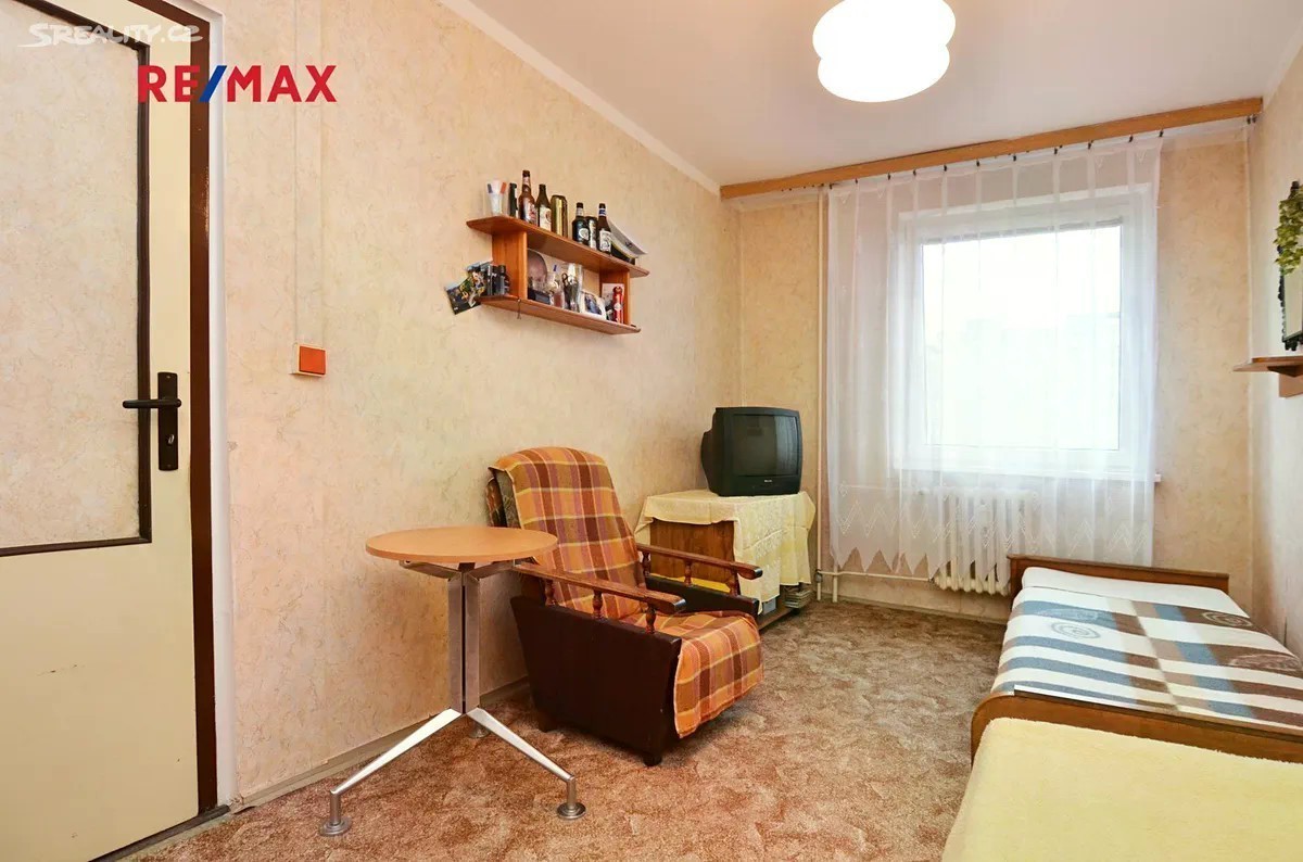 K prodeji nabízíme prostorný byt 3+1, 74 m2, který se nachází v 6. podlaží revitalizovaného panelového domu. Dominantou tohoto bytu je 24 m2 velký obývací pokoj se vstupem do jedné ze dvou ložnic. Druhá ložnice má vlastní vstup z předsíně stejně tak jako kuchyně. Koupelna s vanou a umyvadlem, WC zvlášť. Nadstandardem tohoto bytu jsou dvě předsíně, které skýtají velké množství úložných prostor. Byt je možné předělat na 4+kk. K bytu náleží sklep v suterénu domu. Bezproblémové parkování u domu a veškerá občanská vybavenost v místě. Doporučujeme prohlídku !