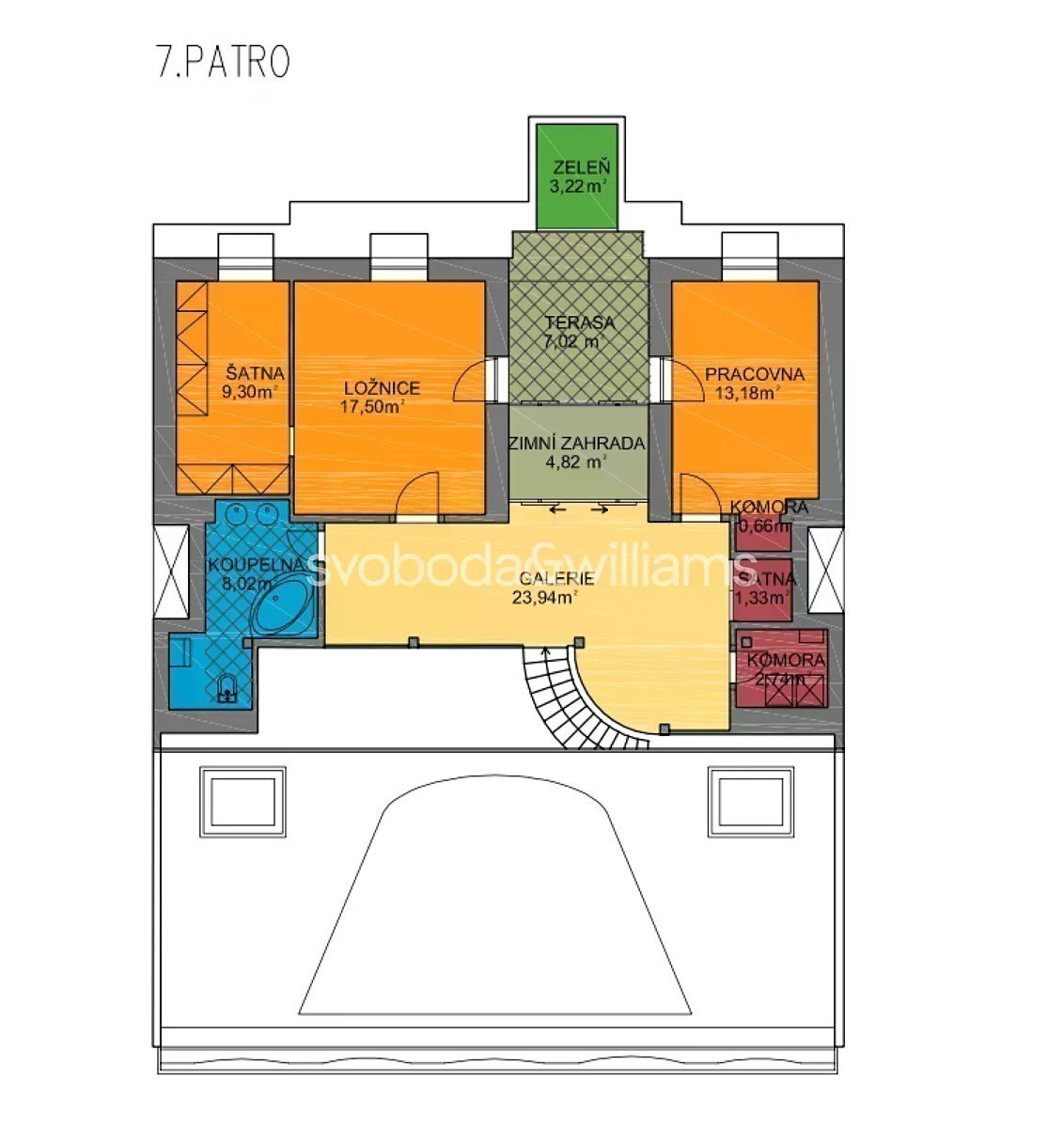 Nabízíme k pronájmu mezonet s úžasným nerušeným výhledem na nábřeží Vltavy, Petřín, Pražský hrad a Emauzy. Tento zařízený dvoupodlažní podkrovní byt s 12 m2 terasou je situován v nejvyšším patře renovované secesní budovy s výtahem a pěkně udržovanými společnými prostory. Lokalita s velmi rychlou dostupností do centra a plnou vybaveností v okolí, pár kroků od stanice metra Karlovo / Palackého náměstí s mnoha tramvajovými spoji, nedaleko Francouzského lycea. Interiéru vévodí obývací pokoj s jídelnou (74 m2), dvojitou výškou stropu a krásným výhledem. V bytě se dále nachází plně vybavený kuchyňský kout oddělitelný skleněnou posuvnou příčkou, 4 ložnice orientované do klidného vnitrobloku, 3 koupelny (z toho 2 en-suite), velká galerie s přístupem do zimní zahrady a na terasu, 2 prostorné šatny, technická komora, toaleta pro hosty a vstupní chodba. Na podlahách parkety a dlažba, bezpečnostní dveře, vestavěné skříně, klimatizační jednotka, pračka, sušička, myčka, satelitní připojení, alarm. V ceně je zahrnuto jedno parkovací stání v garáži.