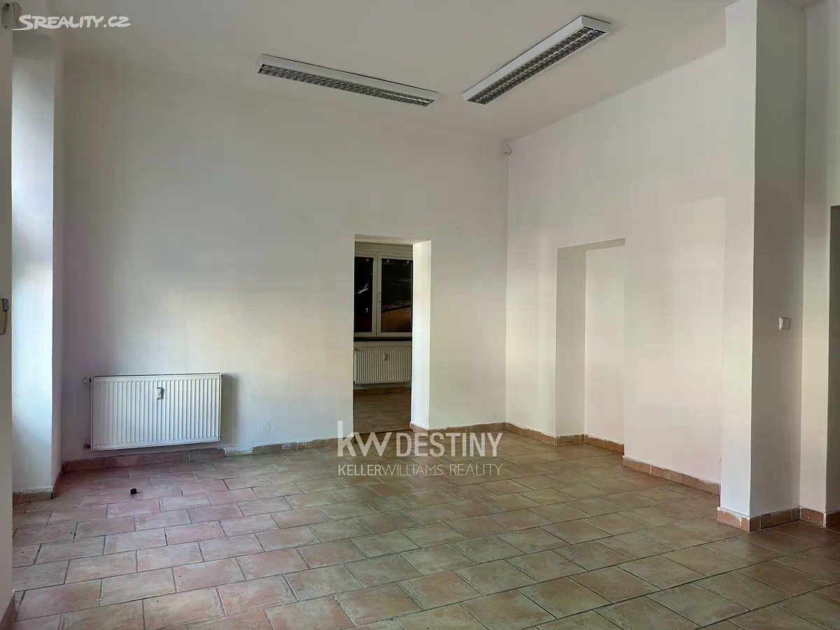 Ve výhradním zastoupení nabízím komerční prostory v centru Bíliny, ul. Břežánská. Místnosti jsou prakticky členěné. Centrální hlavní místnost je prostorná a světlá s výhledem na radnici. Ze zadní místnosti (vhodné jako sklad nebo zázemí) je vstup na WC. Vedlejší místnost navazuje na úklidovou místnost a manipulační prostor, který vede na zastřešený a oplocený dvůr. Z hlavní místnosti vedou schody do 1. patra, kde je podesta a další místnost. Rozměry: Přízemí: 85 m2 1. patro: 32,5 m2 Přístřešek: 18,7 m2 Prostory jsou přístupné dvojitým schodištěm s manipulační plochou. Prostory jsou vhodné jako kancelář, skladování, kontaktní místo, showroom, služby, servisní činnost. call centrum. Přístřešek je možné využít jako možnost zásobování, vykládky zboží, parkování kol, dočasné uskladnění materiálu, zahradnictví nebo drobná výroba. Výhodou je atraktivní lokalita v centru města, dobrá dopravní dostupnost, komerčně viditelné umístění a flexibilní využití prostor dle potřeb nájemce. Nájemné: 12.900 Kč/měs. - v případě platby na delší období je možná sleva Teplo+teplá voda: 5.000 Kč Elektřina: hrazena nájemcem Kauce: 26.000 Kč Provize: 15.700 Kč V případě dalších dotazů nebo prohlídky mě kontaktujte.