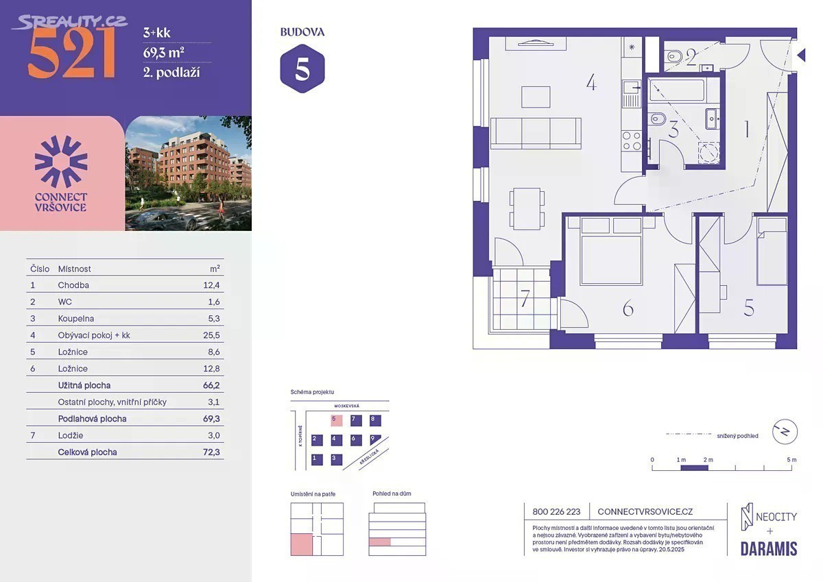 Prodej bytu 3+kk v novostavbě s nadstandardním vybavením a službami pro rezidenty Nabízíme k prodeji moderní byt 3+kk v exkluzivním projektu Connect Vršovice, který kombinuje komfort, design a špičkové vybavení. Tento byt je ideální volbou pro ty, kteří hledají kvalitní bydlení s veškerým zázemím a službami přímo v domě. Byt má dispozici 3+kk, tedy obývací pokoj s kuchyňským koutem a dvě ložnice. Jedná se o novostavbu, byt bude k nastěhování 06/2028. Standard vybavení zahrnuje stropní chlazení, které je již zahrnuté v ceně bytu. Dále jsou zde venkovní žaluzie, dřevěná okna s trojsklem pro maximální tepelnou i zvukovou izolaci, rekuperace vzduchu a nadstandardní výška stropů obytných místností, která se pohybuje od 2,8 do 3,0 metrů dle podlaží. Koupelny jsou vybaveny velkoformátovými obklady o rozměru 120×60 cm. Součástí projektu je centrální recepce. V druhém podzemním podlaží najdete řadu služeb, které zpříjemní a usnadní váš každodenní život. Patří sem moderní a plně vybavené fitness, kino pro soukromé projekce, dětská herna pro nejmenší a další společné prostory a zázemí určené výhradně pro rezidenty. Byt se nachází v atraktivní lokalitě s výbornou dostupností MHD. V blízkosti jsou obchody, restaurace, školy a parky. Klidné prostředí s veškerou občanskou vybaveností je ideální pro pohodlné a kvalitní bydlení.