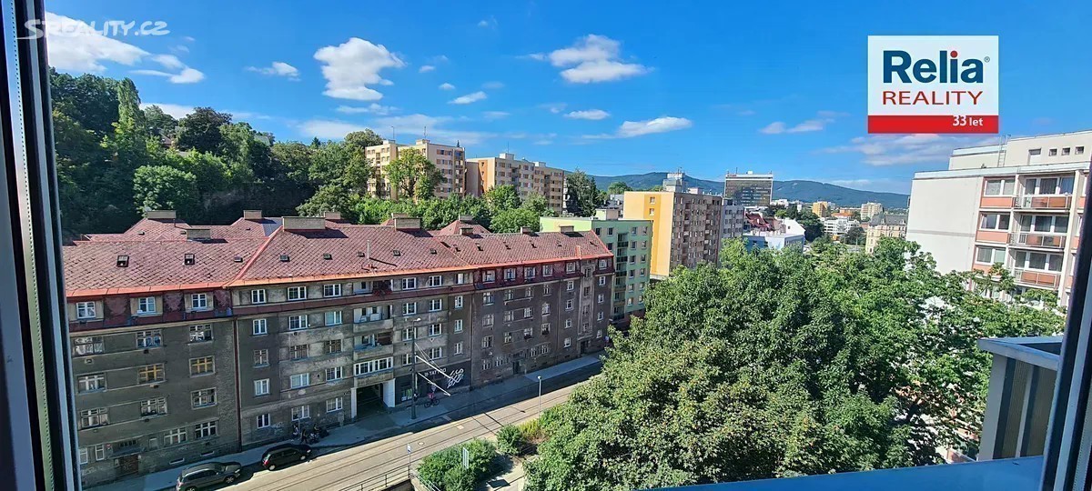Tímto Vám nabízím pronájem zrekonstruovaného bytu o velikosti 2+kk, v 8. patře s výhledem v samém centru města. Byt prošel kompletní rekonstrukcí a disponuje prostorným obývacím pokojem s lodžií, na který navazuje kuchyně. Koupelna s oknem pro možnost odvětrání je společná s toaletou a sprchovým koutem. Ložnice strategicky umístěná na druhé straně bytu, nabízí klidné místo pro odpočinek. V předsíni je místo na úložný prostor. V celém bytě jsou zatemňovací předokenní žaluzie, které nejen stíní, ale i velmi dobře odhlučňují městský ruch. Dům je velmi dobře udržovaný, s výtahem. Vratná 2x měsíční jistota. Volný ke konci srpna nebo dle dohody. Byt je vhodný pro max. 3 bezúhonné pracující osoby, nekuřáky, bez domácích mazlíčků. Byt pro jeho strategickou polohu v centru města a zdařilou rekonstrukci doporučuji.
