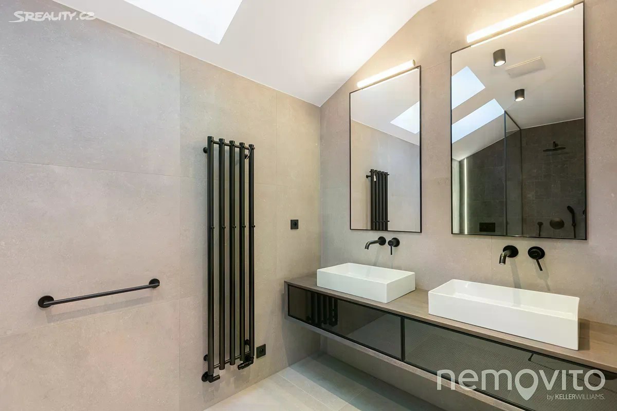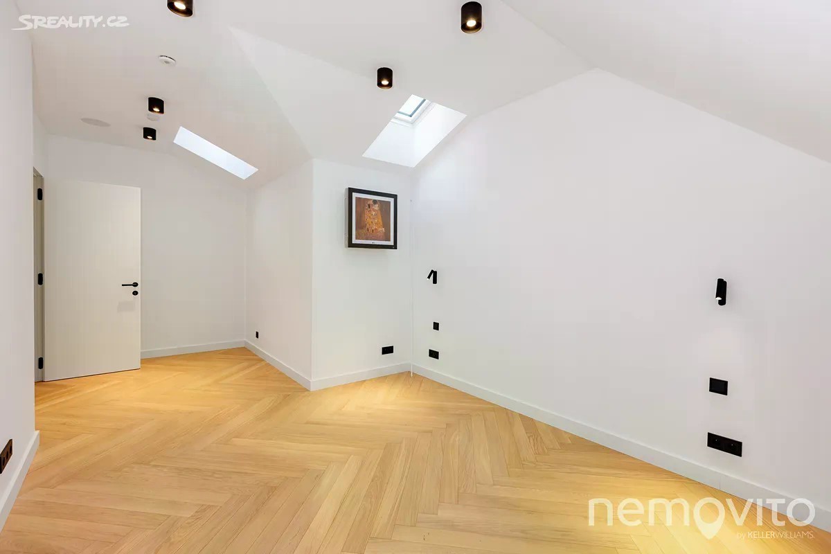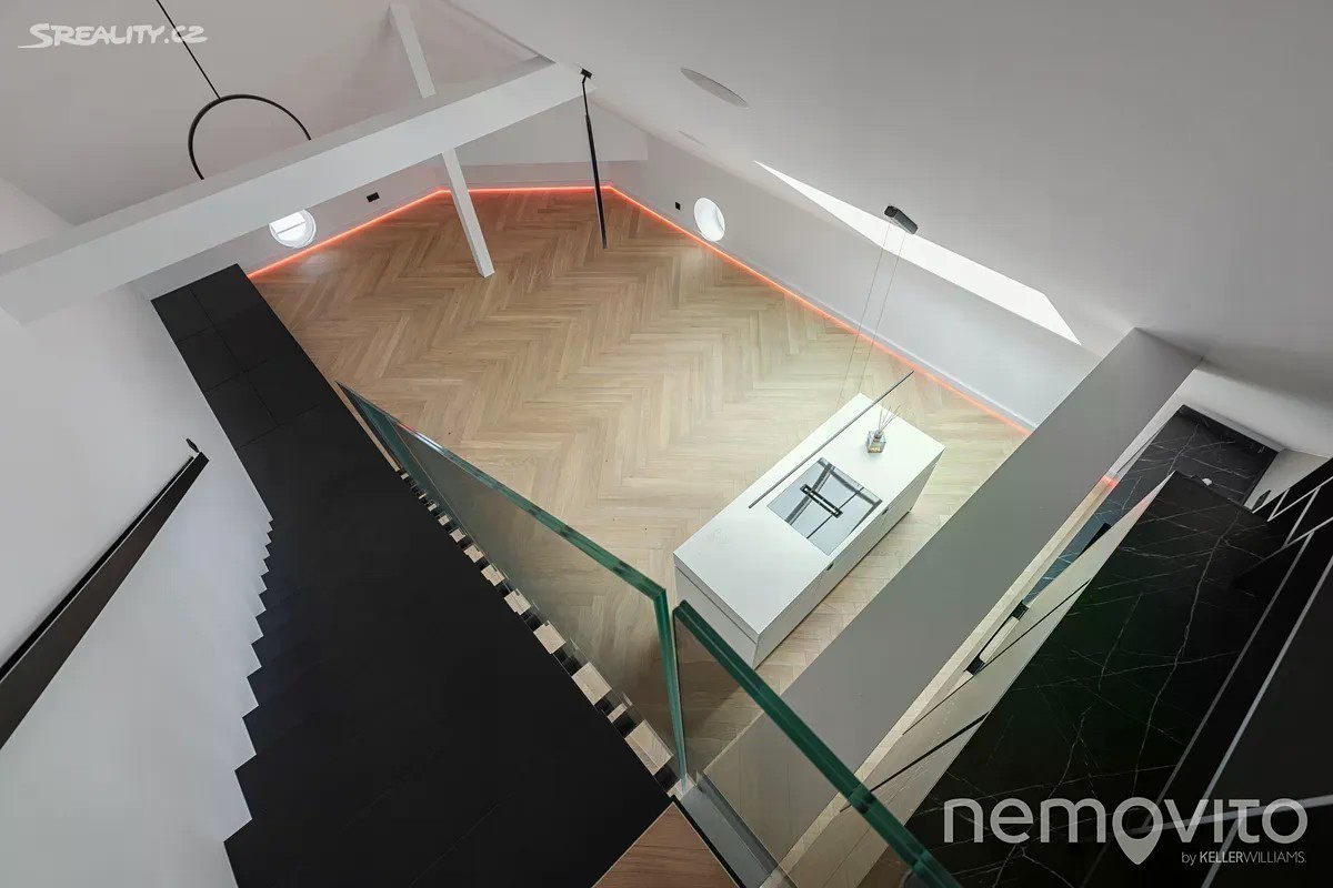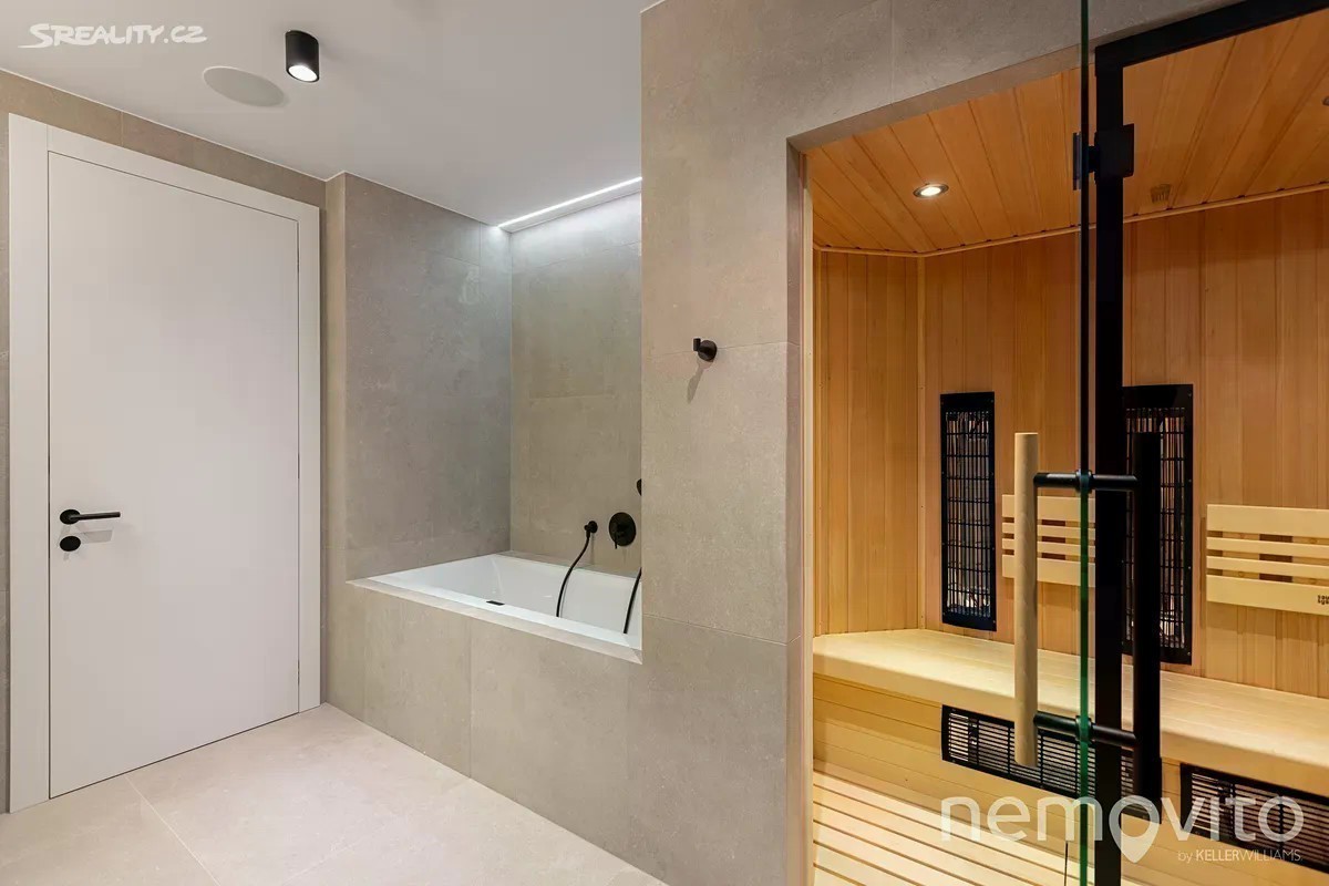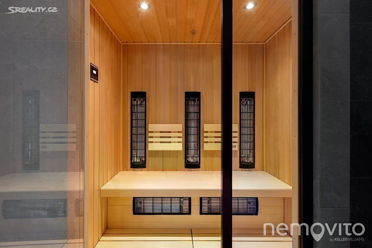 Prostorný byt 4+kk ve špičkovém standardu, který zahrnuje mimo kvalitních materiálů také řadu soudobých technologií. Podlahové topení, klimatizace, vestavěné audio, propracované osvětlení nebo el. stínění oken. Vše ovládané přes systém chytré domácnosti Loxone. Celý byt v jedné aplikaci, plocha celého domu v jednom bytě. Kde jinde, než v Karlíně a v tradičním cihlovém domě, který prošel kompletní rekonstrukcí. Dvě podlaží, vestavěná sauna a 2 koupelny. Dominantou obytného prostoru je nové velkoformátové střešní okno a dvojice kulatých originálních oken, která byla zachována s ohledem na originalitu fasády. Plochova obývacího pokoje je 49 m2 a je usazen do rohu budovy. V obýváku, stejně tak i ve zbytku bytu, naleznete kvalitní masivní dřevěnou podlahu, pod kterou je umístěný systém podlahového topení napojené na nový plynový kotel. V prvním podlaží bytu jsou umístěné dvě ložnice a hlavní koupelna. Hlavní spodní ložnice nabízí plochu 19 m2 a velkoformátové (ateliérové) okno západním směrem. Druhá ložnice (16 m2) rovněž, orientována je na sever. Chodba je dostatečně prostorná pro umístění vestavěné nábytku, je zde rovněž umístěn plynový kotel. U vstupu do bytu se nachází oddělené WC a také prostor pro umístění pračky a sušičky. Ve druhém podlaží vás čeká ložnice se střešními okny a druhá velká koupelna. Plocha pokoje je 21 m2, přičemž okna jsou vybaveny el. pohonem, který lze mimo ovladačů regulovat taktéž přes aplikaci. Všechna okna bytu jsou vybavena stíněním, o teplotní komfort se stará také klimatizace. Ta je řešena nástěnnými jednotkami s možností dekorace, tedy ne klasickou nevzhlednou bílou krabicí. Koupelna s dvojumyvadlem je vybavena velkým walk-in sprchovým koutem. Vyniká nejen plochou (9 m2), ale také vysokým stropem, který umocňuje prostorový efekt. V bytě můžete pozorovat řadu prvků, které jasně prozrazují zvýšený cit pro detail - designové schodiště, sladění všech prvků do matně černé barvy (sanita, ocelové konstrukce, kuchyně, vypínače). Byt je vybaven vestavěným audio systémem i ambientním osvětlením, jehož intenzitu i tón regulujete přes aplikaci, ve které máte k dispozici ovládaní celého bytu. Byt je zabezpečen dveřmi nejvyšší třídy, je vybaven vstupem na kód a alarmem. Kompletně opravený rohový dům s novým výtahem je umístěn na rohu ulic u zastávky tram Urxova. V posledním podlaží domu se nachází pouze 3 nové byty. Provedení a řešení bytu je na míle vzdálené od tradičních luxusních standardů, je kategorií samo pro sebe. Pokud vás o těchto dvou zbývajících bytech zajímavá více informací, rád vám pošlu odkaz s detailním popisem, hromadou dalších fotek a dispozičními plány.