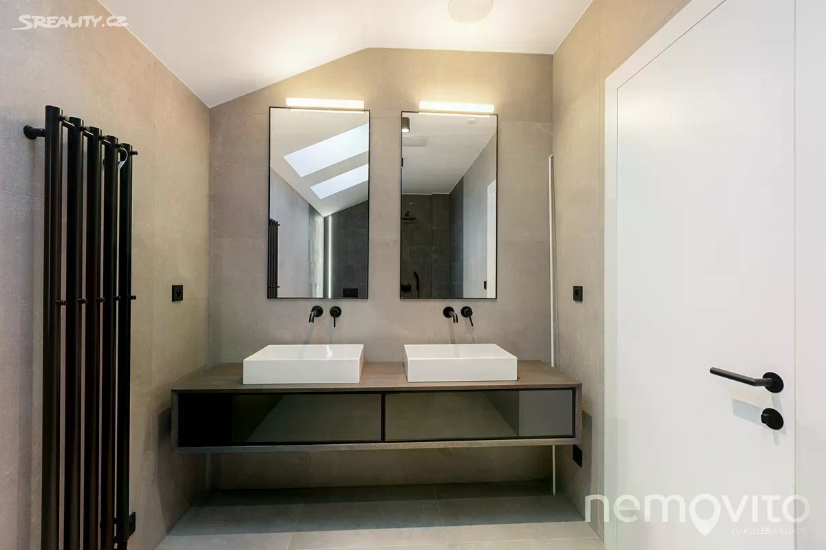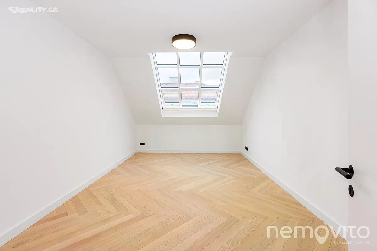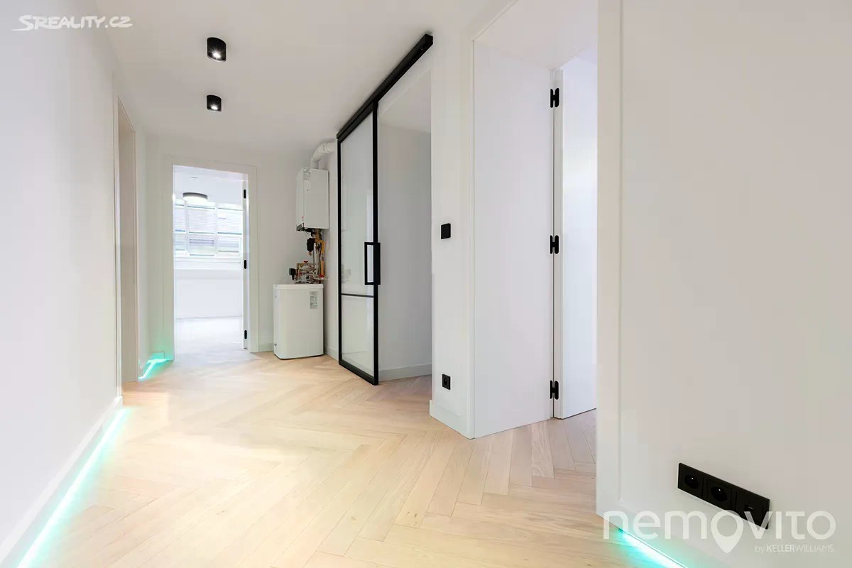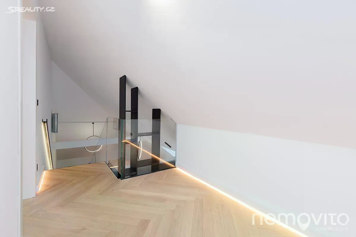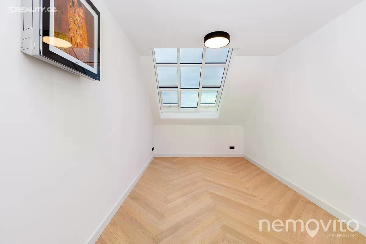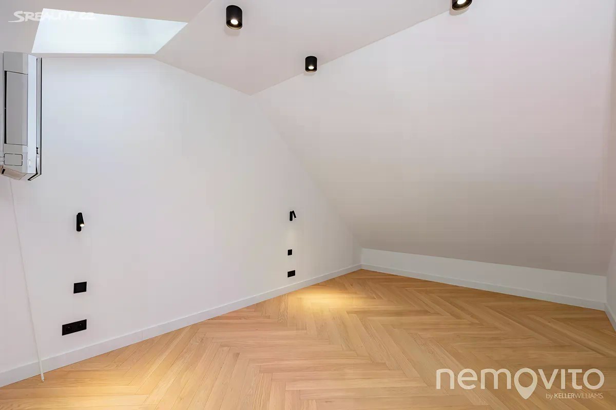 Prostorný byt 4+kk ve špičkovém standardu, který zahrnuje mimo kvalitních materiálů také řadu soudobých technologií. Podlahové topení, klimatizace, vestavěné audio, propracované osvětlení nebo el. stínění oken. Vše ovládané přes systém chytré domácnosti Loxone. Celý byt v jedné aplikaci, plocha celého domu v jednom bytě. Kde jinde, než v Karlíně a v tradičním cihlovém domě, který prošel kompletní rekonstrukcí. Dvě podlaží, vestavěná sauna a 2 koupelny. Dominantou obytného prostoru je nové velkoformátové střešní okno a dvojice kulatých originálních oken, která byla zachována s ohledem na originalitu fasády. Plochova obývacího pokoje je 49 m2 a je usazen do rohu budovy. V obýváku, stejně tak i ve zbytku bytu, naleznete kvalitní masivní dřevěnou podlahu, pod kterou je umístěný systém podlahového topení napojené na nový plynový kotel. V prvním podlaží bytu jsou umístěné dvě ložnice a hlavní koupelna. Hlavní spodní ložnice nabízí plochu 19 m2 a velkoformátové (ateliérové) okno západním směrem. Druhá ložnice (16 m2) rovněž, orientována je na sever. Chodba je dostatečně prostorná pro umístění vestavěné nábytku, je zde rovněž umístěn plynový kotel. U vstupu do bytu se nachází oddělené WC a také prostor pro umístění pračky a sušičky. Ve druhém podlaží vás čeká ložnice se střešními okny a druhá velká koupelna. Plocha pokoje je 21 m2, přičemž okna jsou vybaveny el. pohonem, který lze mimo ovladačů regulovat taktéž přes aplikaci. Všechna okna bytu jsou vybavena stíněním, o teplotní komfort se stará také klimatizace. Ta je řešena nástěnnými jednotkami s možností dekorace, tedy ne klasickou nevzhlednou bílou krabicí. Koupelna s dvojumyvadlem je vybavena velkým walk-in sprchovým koutem. Vyniká nejen plochou (9 m2), ale také vysokým stropem, který umocňuje prostorový efekt. V bytě můžete pozorovat řadu prvků, které jasně prozrazují zvýšený cit pro detail - designové schodiště, sladění všech prvků do matně černé barvy (sanita, ocelové konstrukce, kuchyně, vypínače). Byt je vybaven vestavěným audio systémem i ambientním osvětlením, jehož intenzitu i tón regulujete přes aplikaci, ve které máte k dispozici ovládaní celého bytu. Byt je zabezpečen dveřmi nejvyšší třídy, je vybaven vstupem na kód a alarmem. Kompletně opravený rohový dům s novým výtahem je umístěn na rohu ulic u zastávky tram Urxova. V posledním podlaží domu se nachází pouze 3 nové byty. Provedení a řešení bytu je na míle vzdálené od tradičních luxusních standardů, je kategorií samo pro sebe. Pokud vás o těchto dvou zbývajících bytech zajímavá více informací, rád vám pošlu odkaz s detailním popisem, hromadou dalších fotek a dispozičními plány.