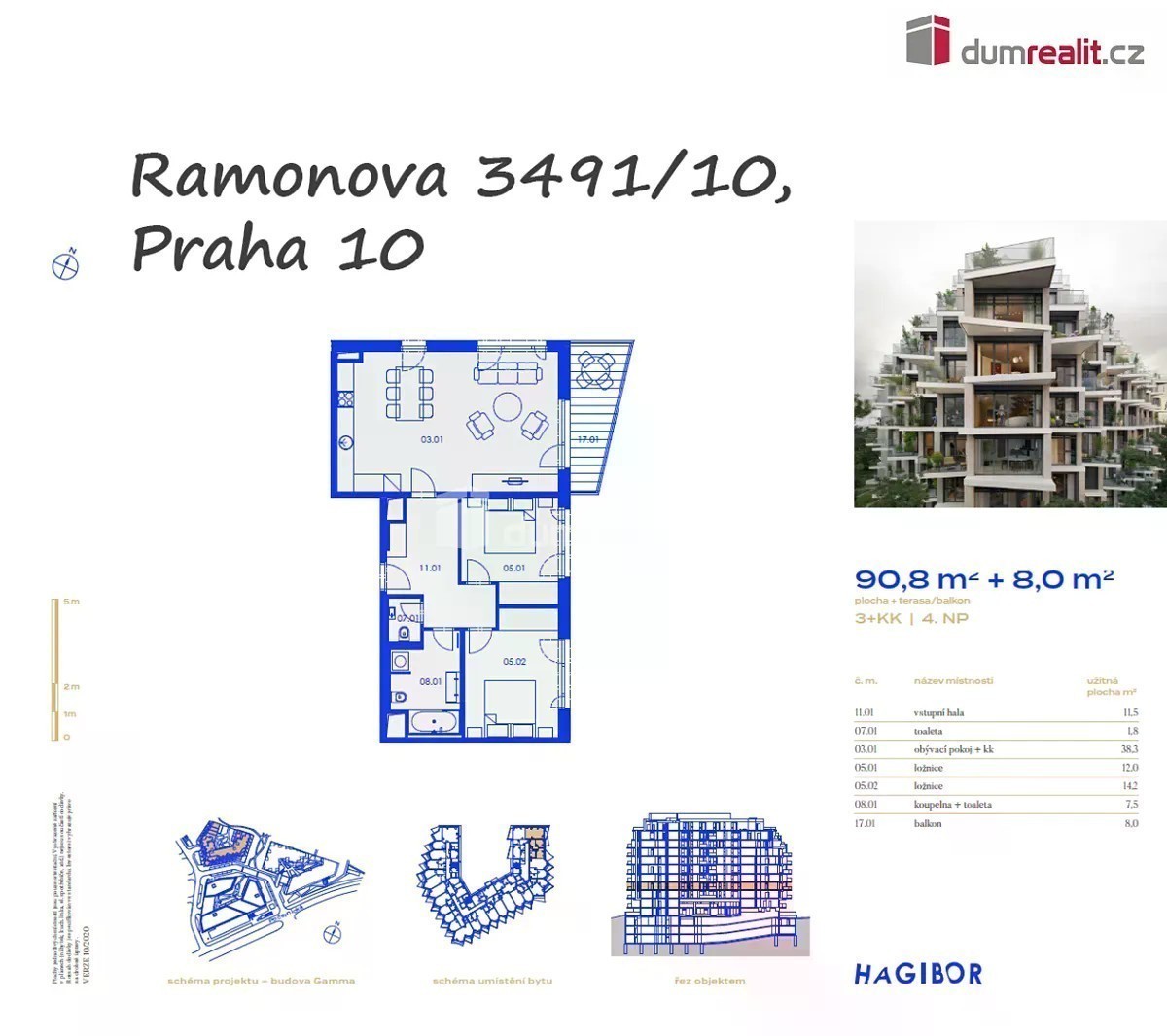 Naše společnost Vám zprostředkuje exkluzivně pronájem nového, designového, plně zařízeného bytu 3+kk (90,8 m²) s balkonem 8 m², sklepem (8m²) a možností dopronajmutí 2 x parkovacího stání, v nízkoenergetické novostavbě (PENB - B, kolaudace 2025 - rezidence Hagibor s vlastní recepcí) v Praze 10 - Strašnice, ulice Ramonova, pouze 2 minuty od zastávky tramvaje a 5 minut od metra A - Jana Želivského. Tento byt je zcela nový, nepoužívaný, právě vy můžete být prvním nájemcem. Byt je umístěn ve 3.patře / 4 NP 10.patrové novostavby s pěkným výhledem. Kompletní designové vybavení bytu je v ceně nájmu. Dispozice tohoto bytu tvoří: prostorný obývací pokoj (38,3 m²) s kuchyňským koutem, prostorem na jídelnu a pracovní kout, se vstupem přes velké balkonové okno na balkon (8 m²), dále ložnice (14,2m²) s postelí a velkou vestavěnou skříní, dětský pokoj (12 m²), prostorná chodba (11,5m²) také s vestavěnou skříní a koupelna (7,5m²) s vanou, WC, pračkou a umyvadlem. Poslední místností je samostatná toaleta (1,8 m²). Tento byt je v osobním vlastnictví, je v top stavu, připravený ihned k užívání. Pronajímatel garantuje stabilní, dlouhodobý pronájem. V bytě je rekuperace, na podlaze jsou dřevěné podlahy, orientace bytu je na sever / 2 okna v obývacím pokoji, ostatní okna vč. balkonu pak na východ. V 3-patře je 2 x parkovací stání, které lze obě dopronajmout, nebo pouze jedno z nich k bytu a samostatný sklep (8 m² - je v ceně nájmu). V přízemí domu je pak 24h recepce a menší park ve vnitrobloku. Služby jsou plně vyúčtovatelné, elektroměr se převede na nájemníka. Velmi doporučuji všem, kteří hledají nový, plně vybavený byt designovým nábytkem a vybavením, přípravný ihned k užívání, s možností parkování, sklepem a maximální občanskou vybaveností. Majitel si v bytě nepřeje psa ani kočku. Projekt je umístěn na pomezí mezi Vinohrady, Strašnicemi a Malešicemi. Je nedaleko stanice metra Jana Želivského - A. V okolí je absolutní klid a mnoho sportovišť - tenisové kurty, futsalové hřiště a krytá sportovní hala, v docházkové vzdálenosti je Malešický park a park Parukářka. Ev. číslo: 652092.