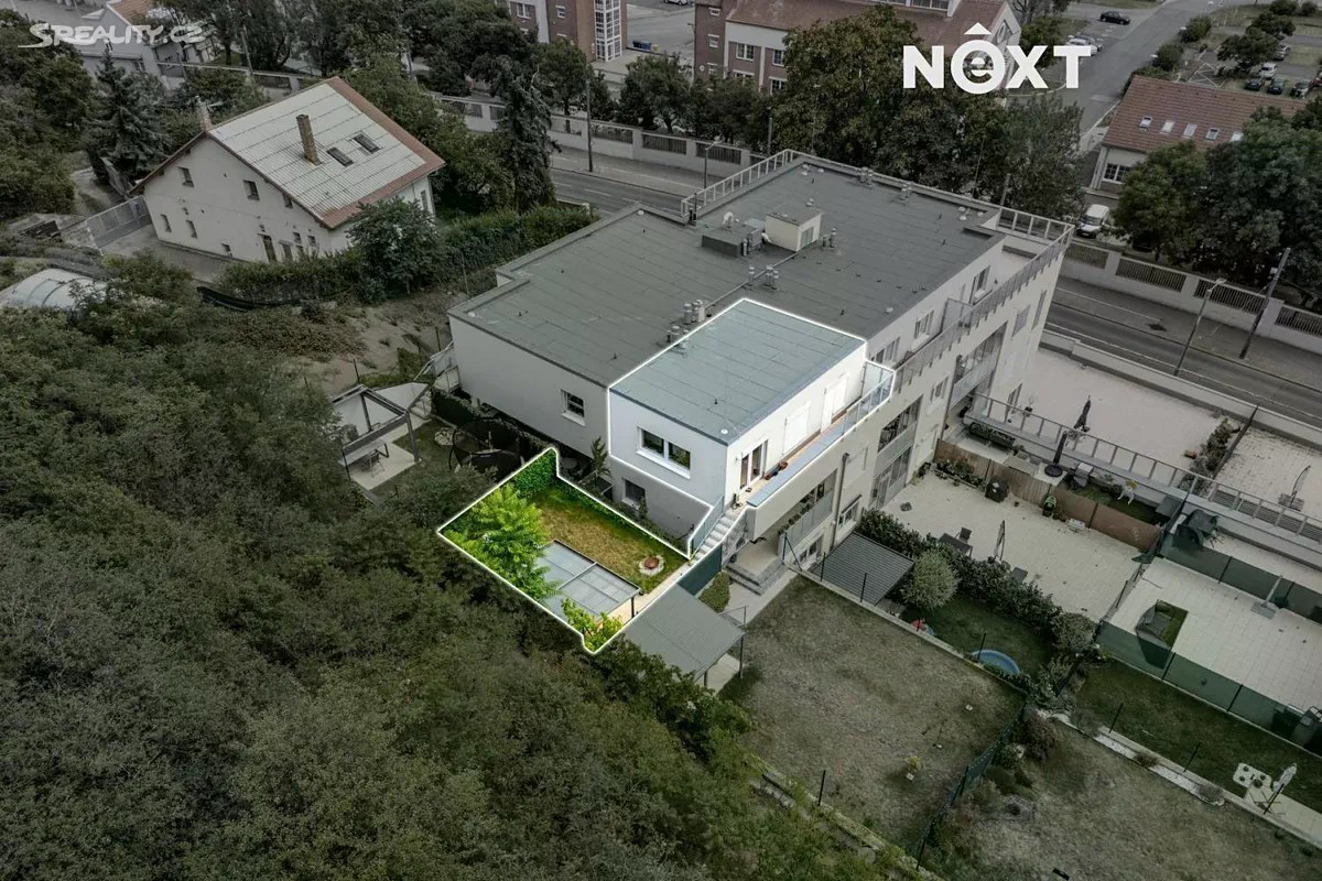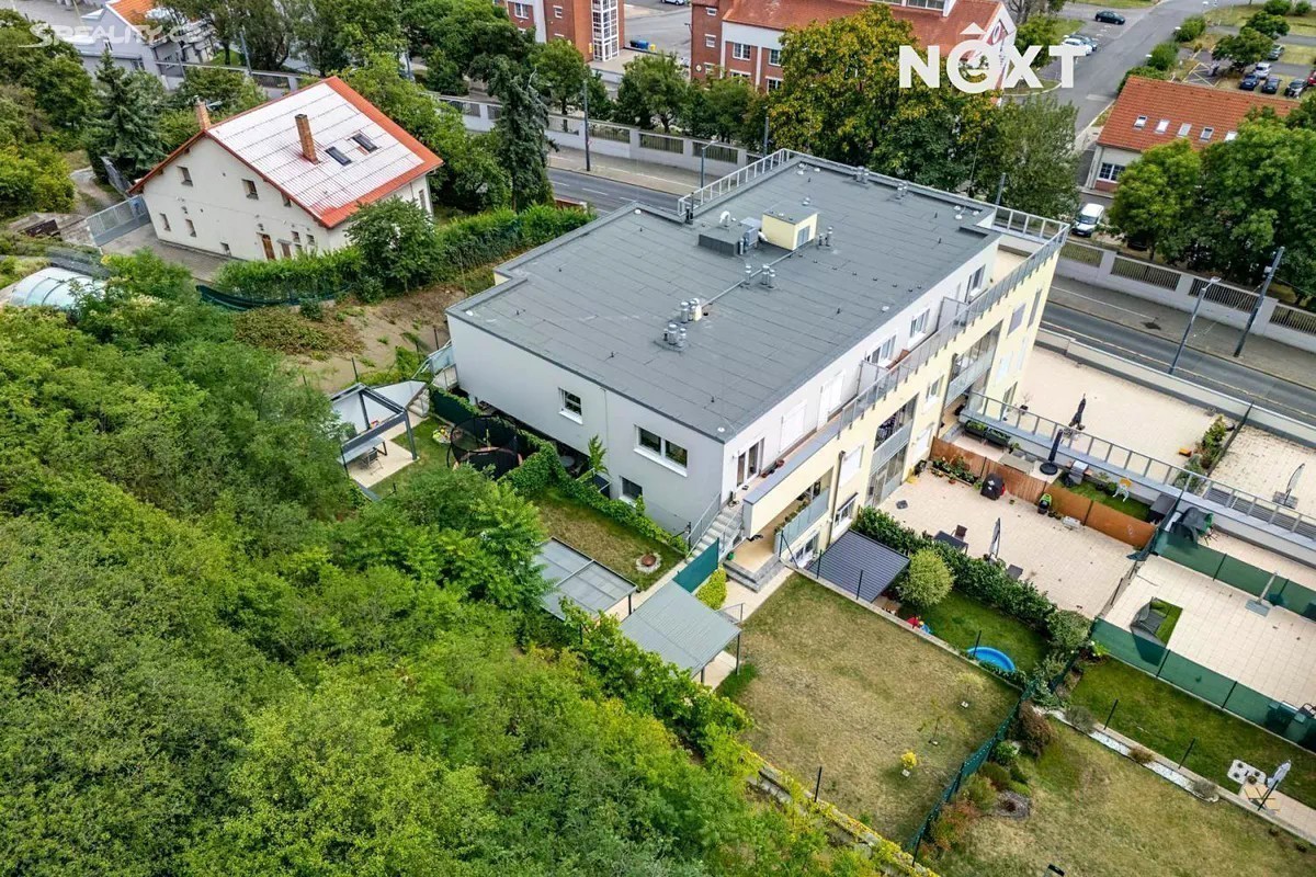 Mysleli jste si, že není možné bydlet ve 4NP s výhledem na Prahu a zároveň mít přímý vstup na vlastní plnohodnotný pražský pozemek se zahradou? Pokud ano, tak nám dovolte Vás vyvézt z omylu a nabídnout výjimečný, prosluněný byt 2kk o celkové podlahové ploše 63 m² (byt 53m2 sklep 10m2), který se nachází v posledním 4. nadzemním podlaží moderního domu s výtahem z roku 2020. Byt disponuje krom terasy (10,5m2) vlastní zahradou o rozloze 57 m² (s vlastním parcelním číslem v katastru!) situovanou do zeleně a nabízející soukromí, které oceníte při odpočinku i setkávání s přáteli. Nedílnou součástí nemovitosti je také krom opravdu velikého sklepa (10m2) i garážové parkovací stání. Dispozici tvoří vstupní chodba se dvěma vestavěnými skříněmi, světlý obývací pokoj s kuchyní na míru a okny do dvou světových stran, útulná ložnice s vestavěnou skříní a veliká koupelna s toaletou. Z obou obytných místností je přímý vstup na terasu, odkud se dostanete na zahradu s pergolou a ohništěm. Orientace bytu na severozápad (převážná část západ) zajišťuje příjemné klima po celý den; na západní straně jsou instalovány venkovní elektrické žaluzie. K bytu náleží prostorný zděný sklep s bezpečnostními dveřmi a vlastní parkovací stání v garáži domu. Lokalita nabízí skvělou dostupnost-zastávka autobusu i tramvaje je vzdálena pouhých 100 m, do centra se dostanete za cca 15 minut. V docházkové vzdálenosti je sportovní areál Hamr, obchodní centrum Kaufland, Baumax, kavárny, restaurace. Autem jste za 3min na D1 výjezdu z Prahy nebo jižní spojce. Provozní náklady jsou velmi příznivé: cca 4 000 Kč měsíčně elektřina (vytápění zajišťuje plynový kotel v domě). Nemovitost ocení hlavně ti, jež chtějí být blízko centru, zároveň mít svůj klid s kouskem zeleně ve vlastní režii Pro komunikaci uvádějte evidenční číslo zakázky N113257.