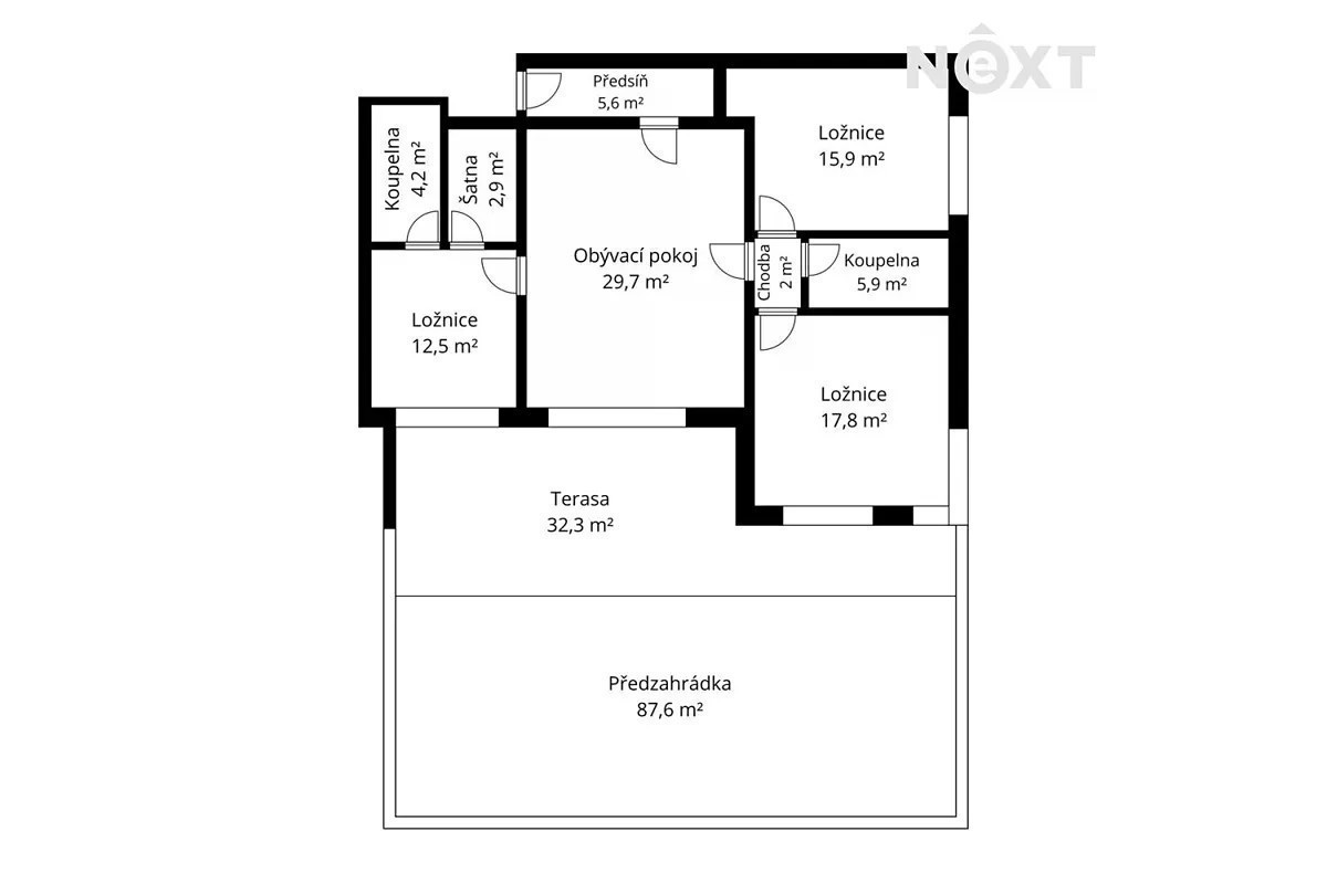 Exkluzivně nabízíme k prodeji zcela nový byt o dispozici 4+kk a celkové užitné ploše 222 m², kterou tvoří samotný byt (102 m²), terasa (32,3 m²) a předzahrádka (87,6 m²). Nachází se v přízemí domu Marie v prestižním projektu Rezidence Na Mariánské cestě, oceněném titulem Realitní projekt roku 2023. Byt byl v rámci výstavby rozšířen o klientské změny a nadstandardní prvky v hodnotě cca 500 000 Kč, které jsou již součástí kupní ceny. K bytu je možné dokoupit dvě garážová stání a dva sklepy jako samostatné příslušenství. Vítejte v Rezidenci Na Mariánské cestě - místě, kde se moderní severská architektura snoubí s přírodou a chytrými technologiemi. Tento byt není jen o prostoru a výbavě - je to domov, kde se budete cítit dobře od prvního okamžiku. Velká hliníková okna s elektrickými venkovními žaluziemi propojují světlý obytný prostor s terasou a zahradou, ze tří pokojů lze vycházet přímo ven. Můžete zde relaxovat pod zastřešenou pergolou na terase nebo na zahrádce, která je nadstandardně veliká. Dispozice je navržena s důrazem na komfort a praktické užívání. Obývací pokoj plynule navazuje na kuchyňskou část, tři samostatné ložnice zajišťují soukromí všem členům domácnosti. K dispozici jsou dvě koupelny - jedna s vanou, druhá se sprchovým koutem - dále šatna a prostorné chodby. Dispoziční plánek je součástí fotodokumentace. Každý detail interiéru vznikal s ohledem na kvalitu a nadčasový design. Londýnské studio Identity Designers navrhlo styl s prémiovými materiály, dřevěnými podlahami, elegantními dveřmi a kvalitní sanitou. Na vyžádání je k dispozici klientský list materiálů a návrh budoucího vybavení interiéru, terasy a zahrady. V bytě jsou použity technologické prvky pro vysoký komfort a dlouhodobou hodnotu. Vytápění i ohřev vody zajišťuje tepelné čerpadlo země-voda a fotovoltaika, díky čemuž má budova energetickou třídu A a mimořádně nízké provozní náklady. Rezidence je promyšlená do posledního detailu - téměř tři čtvrtiny plochy tvoří zeleň, relaxační zóny, jezírka a parkové úpravy, které navrhli přední krajinářští architekti. Najdete tu saunu, Kneippův chodník, workout hřiště, dětský park, komunitní zahrádku, sdílené ohniště i grill point - prostor, kde můžete odpočívat, sportovat a potkávat se s přáteli i sousedy. Projekt Na Mariánské cestě patří mezi nejkvalitnější rezidenční stavby v ČR. Moderní architektura, špičkové provedení a důraz na detail vytvářejí prostředí, které si drží nadčasovost, styl i hodnotu. Byt vyniká svou polohou - nabízí klid, soukromí i přímý kontakt se zelení, a přitom je jen několik minut od centra Brandýsa. Brandýs nad Labem patří k nejvyhledávanějším lokalitám Prahy-východ - má historické centrum s kavárnami a obchody, kompletní občanskou vybavenost a výbornou dopravní dostupnost. Pokud vás tento výjimečný byt zaujal, ráda vám poskytnu další informace nebo domluvím osobní prohlídku. Pro komunikaci uvádějte evidenční číslo zakázky N113384.