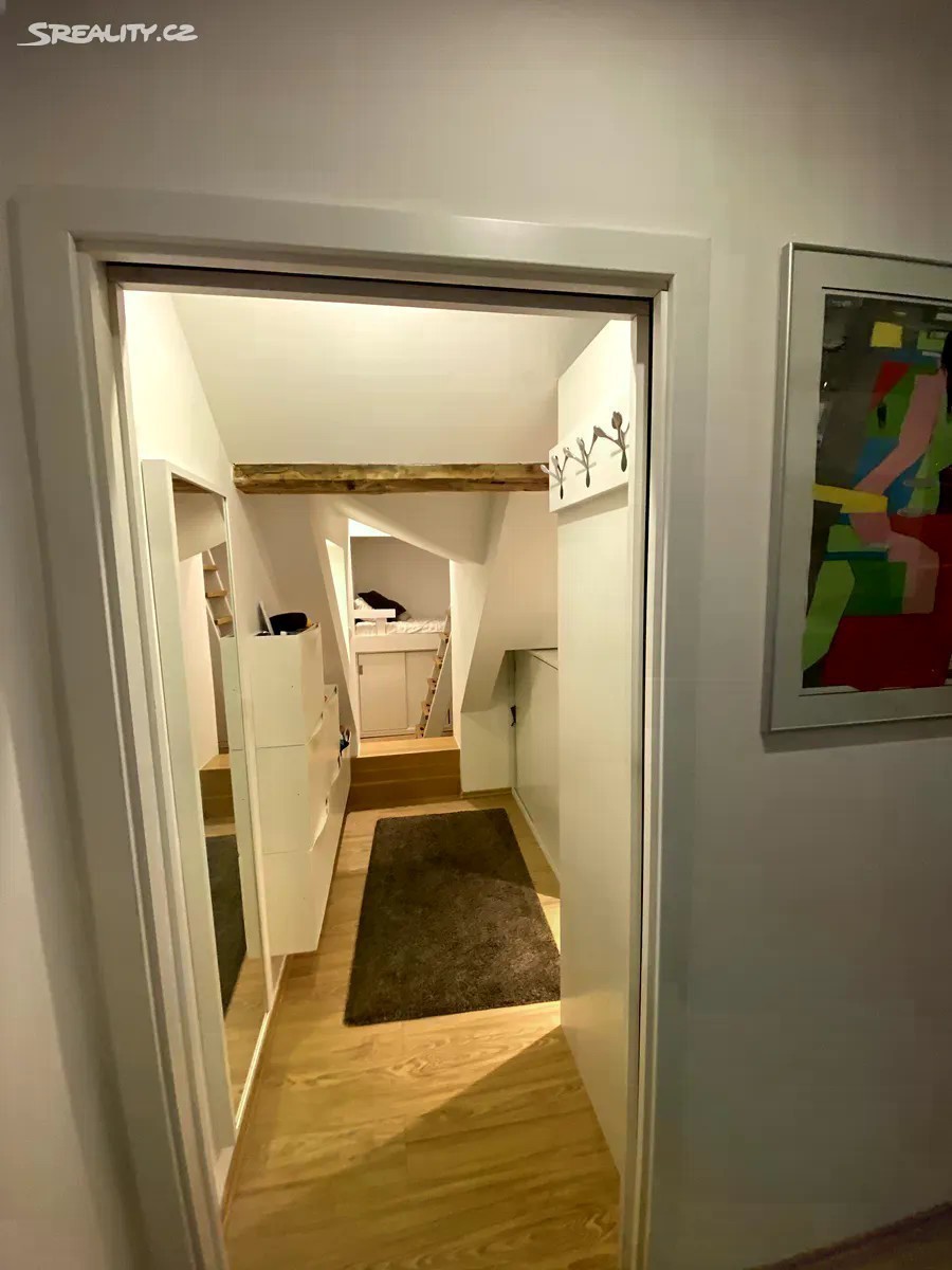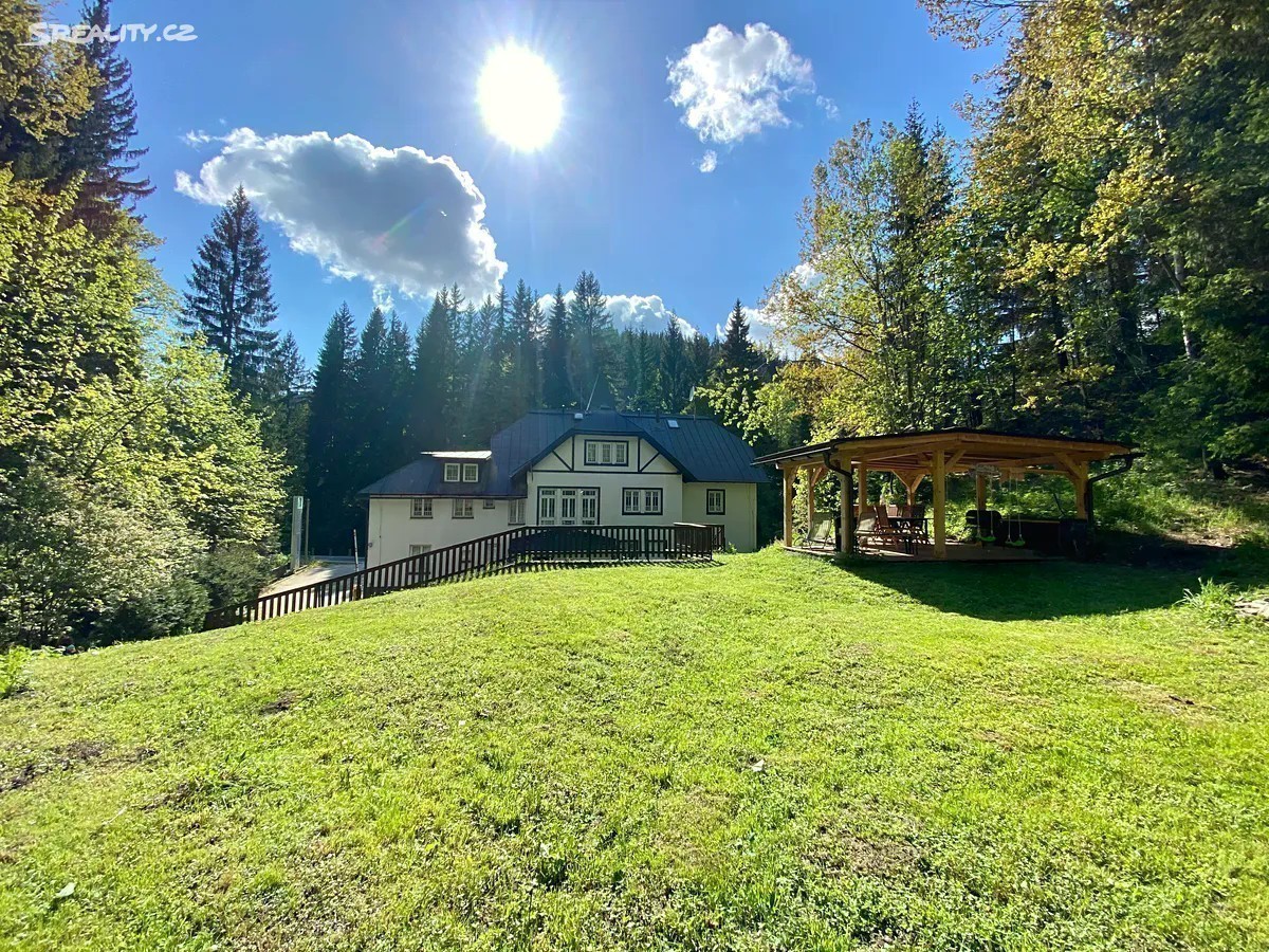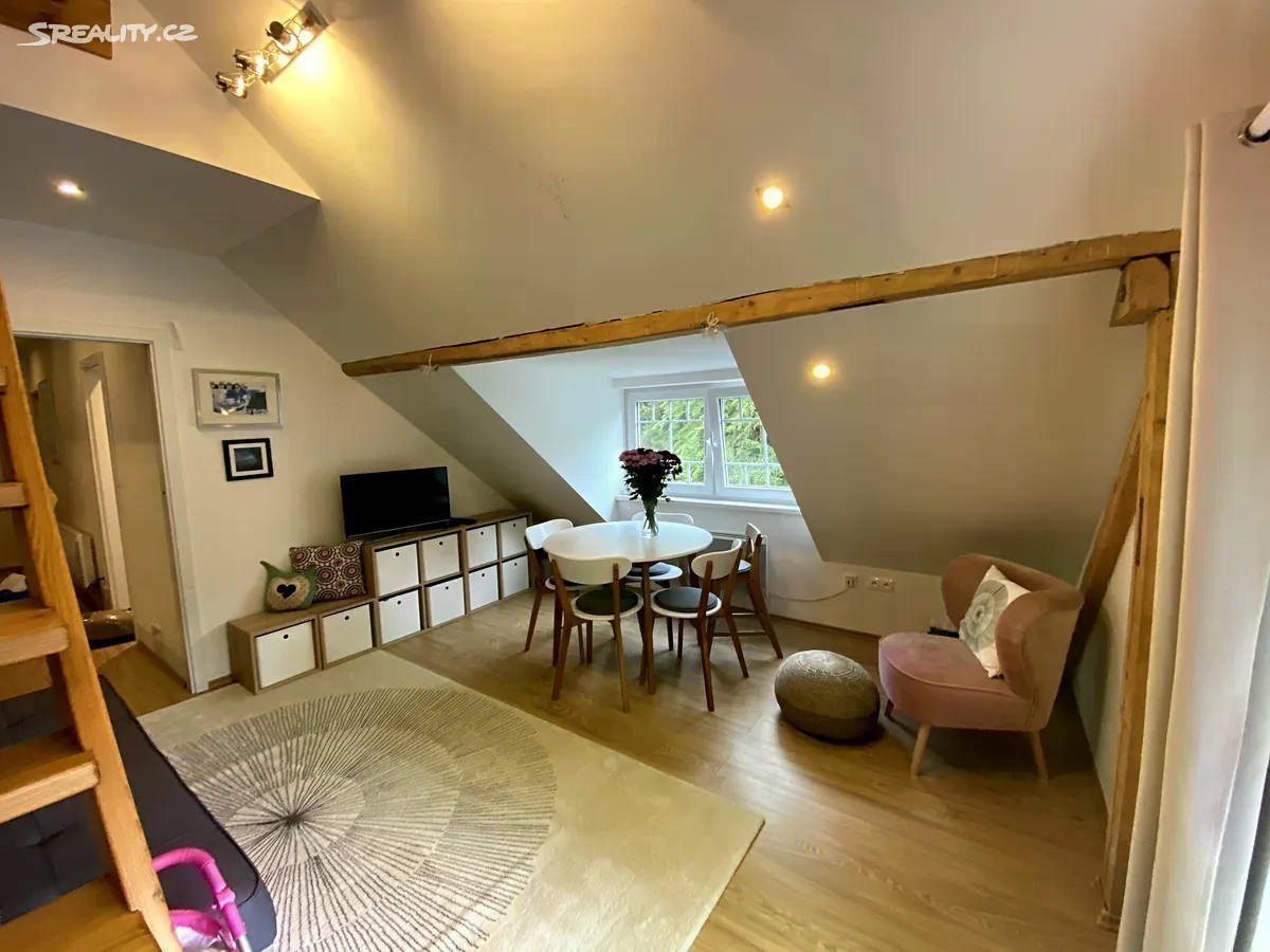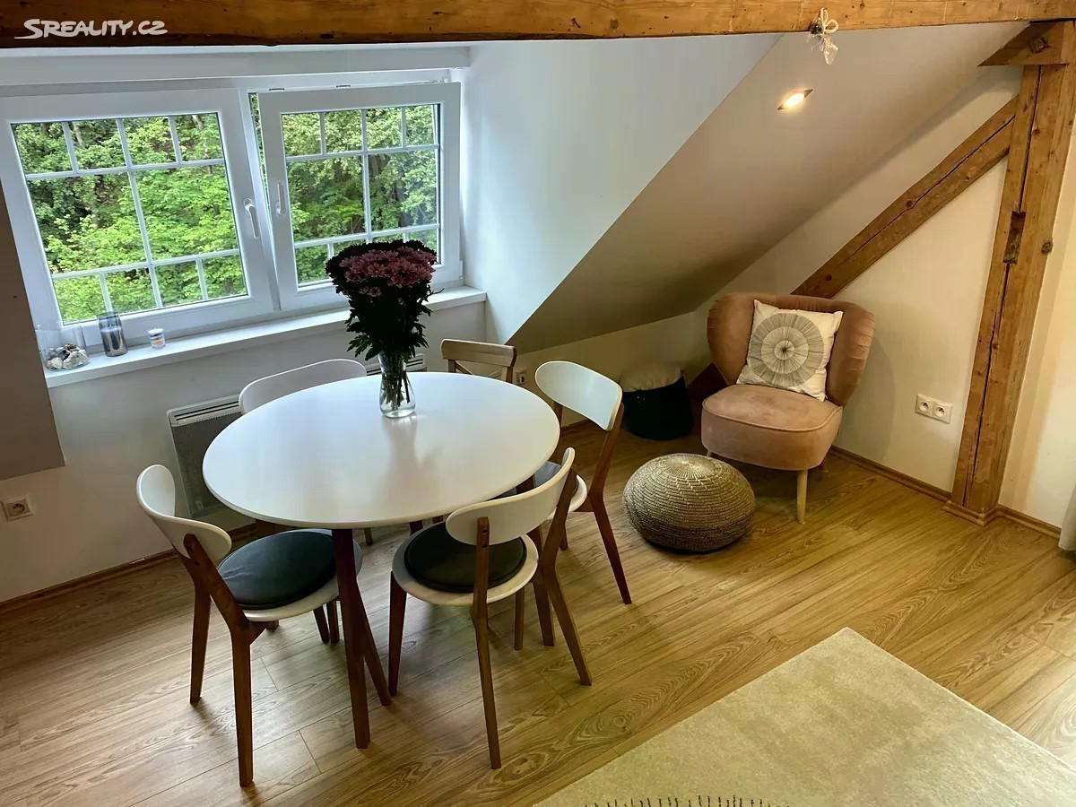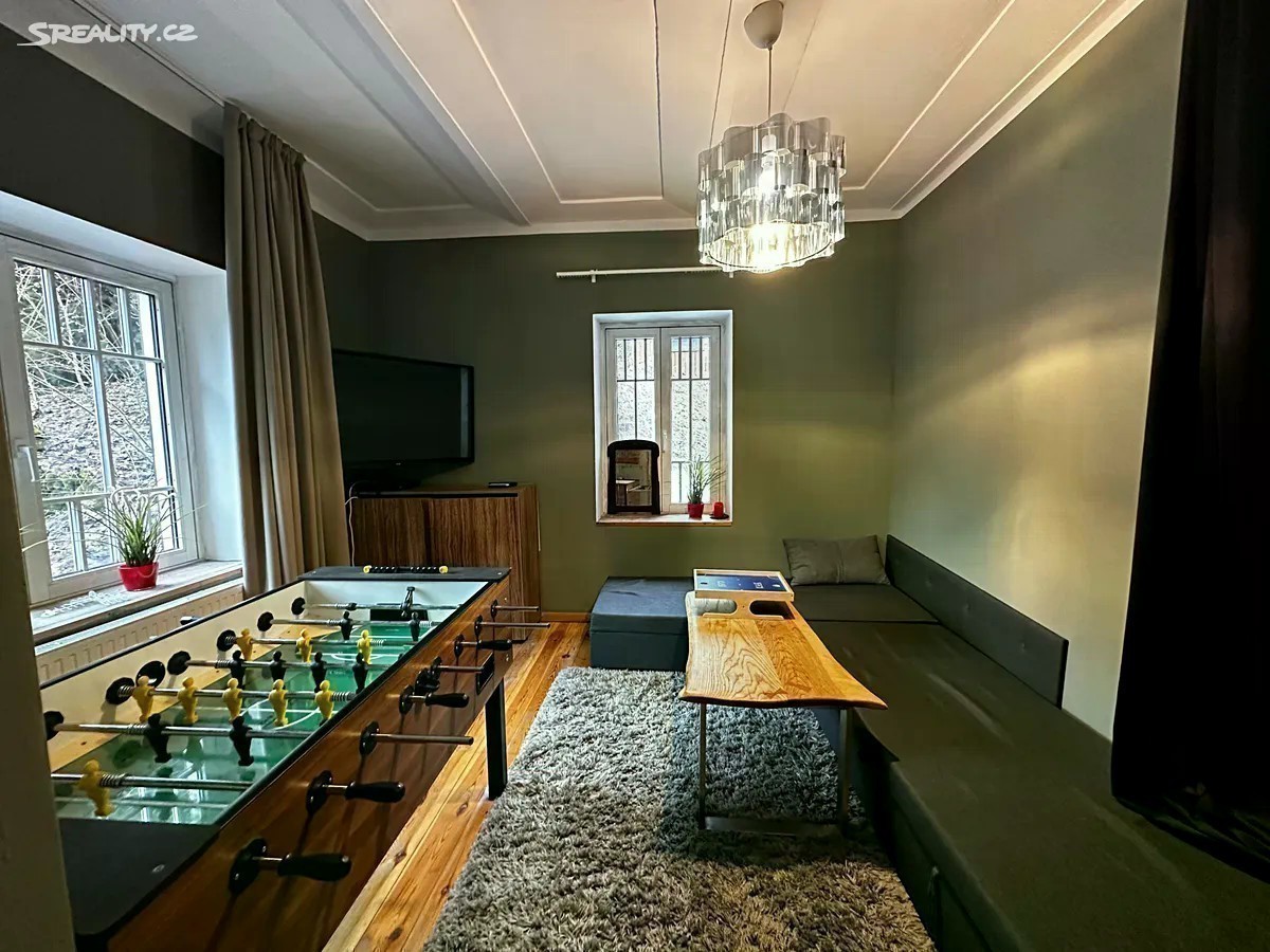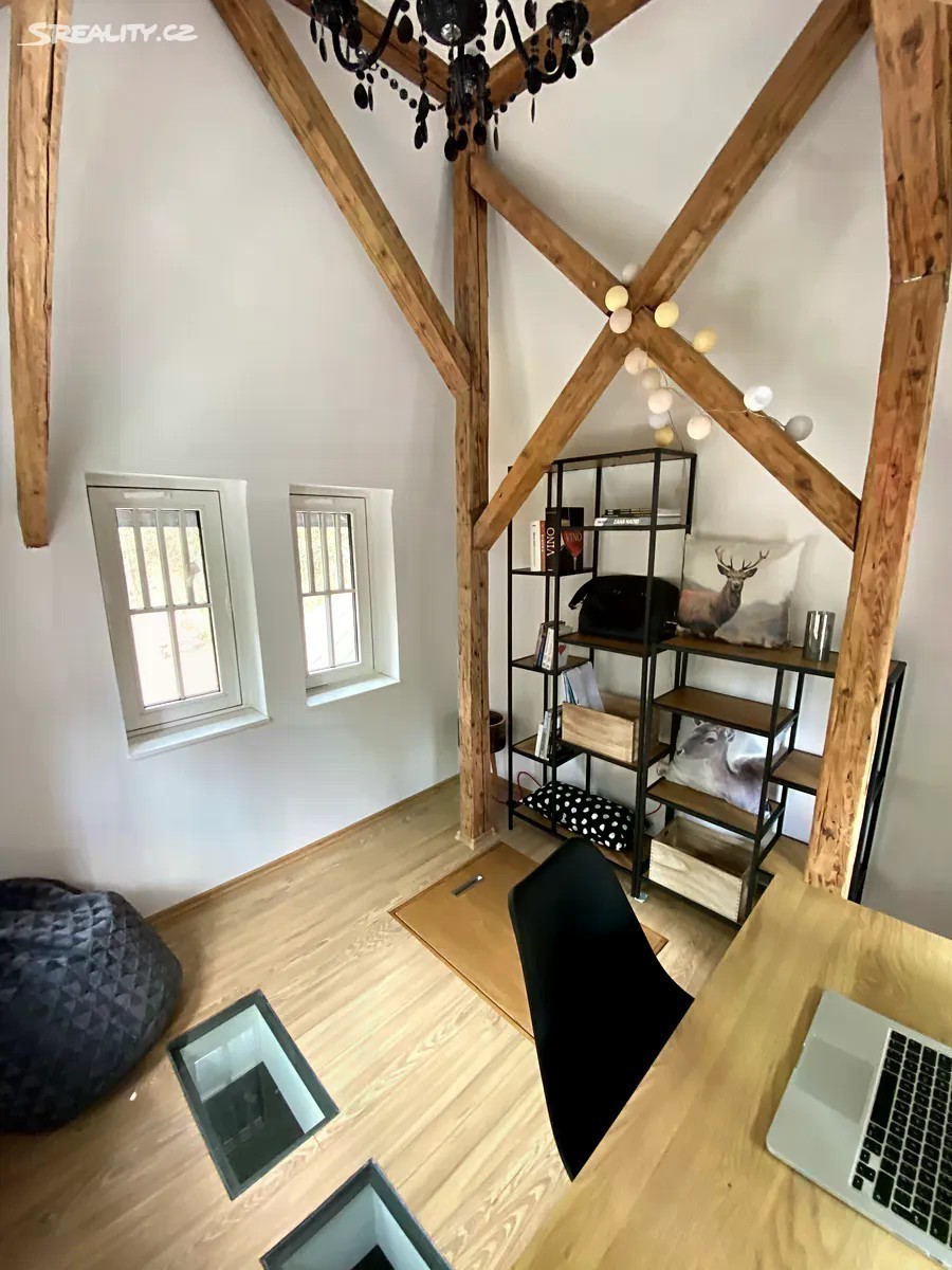 Jedinečný podkrovní byt s věží u Špindlerova Mlýna Nabízíme k prodeji originální podkrovní byt o velikosti 47 m² po rekonstrukci (2021), který se nachází ve 3. patře historického domu jen 5 km od sjezdovek ve Špindlerově Mlýně. Dispozice: vstupní chodba kuchyň + koupelna (vana, WC) obývací část s patrem na spaní (2 lůžka, střešní okno) šatna dětský pokoj s palandou a vstupem do věže (pracovna, knihovna) Bonusy pro majitele: společenská místnost s barem, krbem a kulečníkem sauna s odpočívárnou lyžárna se sušákem bot zahrada s altánem Další výhody: prodej převodem 100% podílu ve společnosti s.r.o. nízké náklady cca 1 500 Kč/měsíc výborný sousedský kolektiv