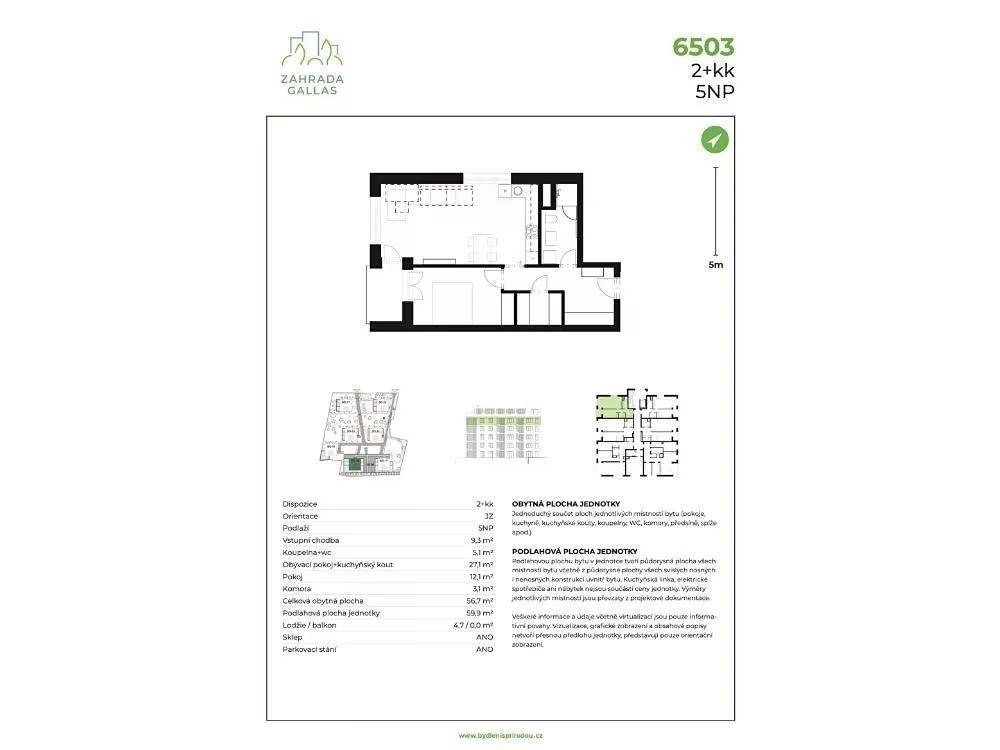 Hledáte moderní bydlení v klidné lokalitě s výbornou dostupností? Nabízíme vám krásný byt 2+kk o velikosti 56,7 m² na hezkém místě v Liberci. Byt se nachází v 5. nadzemním podlaží a jeho promyšlená dispozice vám nabídne prostorný obývací pokoj s kuchyňským koutem (27,1 m²) orientovaný na severovýchod, kde si vychutnáte ranní kávu s přirozeným světlem. Příjemnou atmosféru doplňuje ložnice o velikosti 12,1 m², ideální pro klidný spánek. Vstupní chodba (9,3 m²) poskytuje dostatek místa pro vestavěné skříně, koupelna s WC (5,1 m²) působí moderně a útulně. Praktická komora (3,1 m²) zajistí úložný prostor, a k bytu navíc náleží sklep i vlastní parkovací stání. Relaxovat můžete na lodžii (4,7 m²), která vás propojí s okolní zelení. Architektonický koncept projektu vychází z návrhu renomovaného anglického studia Chapman Tailor a je inspirován prvorepublikovými vilami. Výstavba nabízí dostatek prostoru mezi budovami a pečlivě řešené veřejné prostory, což vytváří přívětivé a neanonymní prostředí. S maximálně 40 byty v každé budově zde můžete očekávat klid a soukromí. Strategická poloha v blízkosti libereckého nádraží zajišťuje vynikající dostupnost do centra města i mimo něj. Užijte si moderní bydlení v srdci Liberce s projektem Zahrada Gallas. Kontaktujte nás a my vám rádi připravíme individuální finanční plán podle vašich potřeb. Byt je v družstevním vlastnictví, což znamená, že nepotřebujete hypotéku. Stačí zaplatit 20 % z ceny bytu a můžete se nastěhovat. Zbytek ceny bytu budete pak splácet formou nájmu. Pokud byste se rozhodli v budoucnu byt prodat, můžete svůj družstevní podíl snadno a rychle převést na kohokoli. Po splacení si můžete byt převést do osobního vlastnictví. Ozvěte se nám a dohodněte si individuální prohlídku vzorového bytu. Prohlédnete si standard kvality naší výstavby, dozvíte se, proč je družstevní bydlení díky financování tak výhodné, získáte na míru šitý návrh financování dle vašich možností a dozvíte se všechno o družstevní formě vlastnictví. Pokud vás tento byt zaujal, neváhejte nás kontaktovat. Připravíme vám individuální finanční model na míru vašim požadavkům.