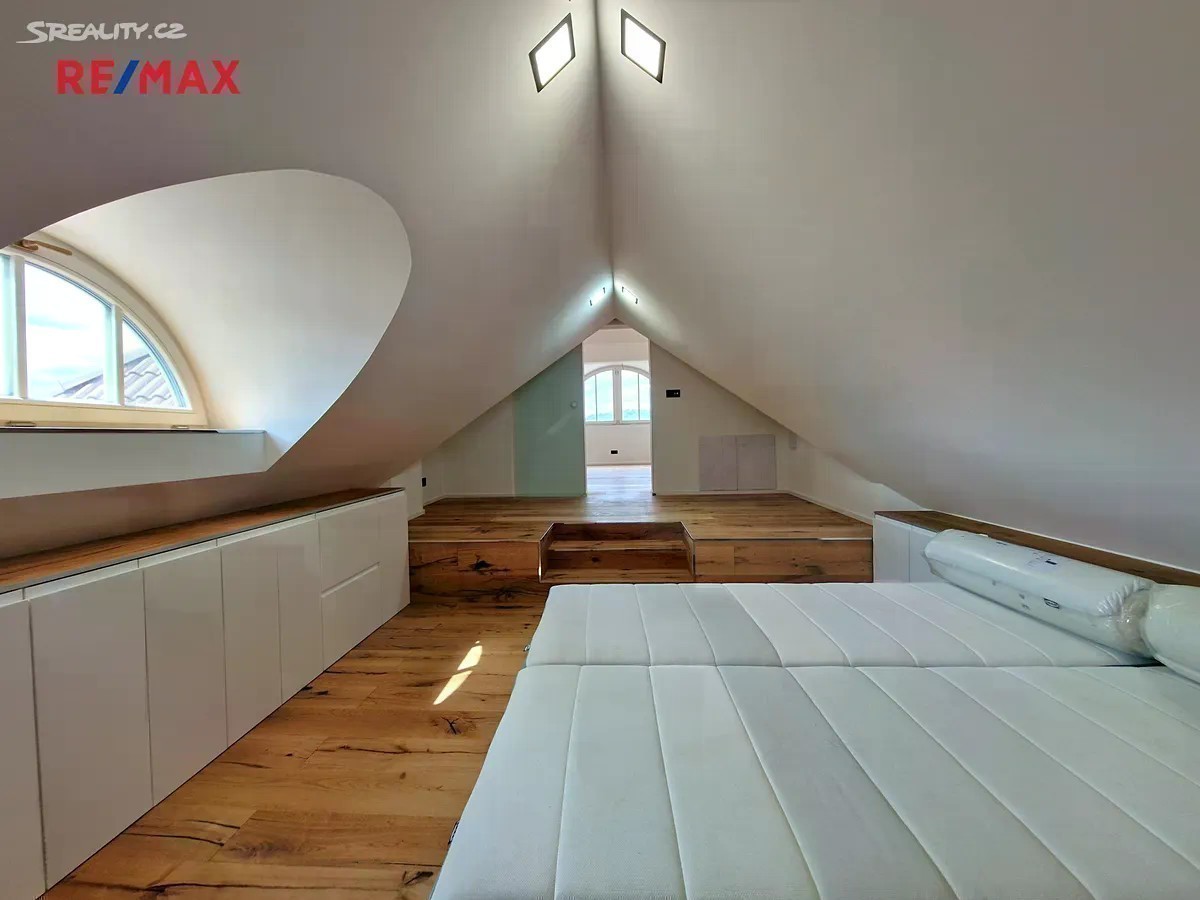 Rádi bychom Vám exkluzivně nabídli k pronájmu výjimečnou nadstandardní nemovitost. Vila od významného stavitele Ing. Bedřicha Hlavy prošla čerstvě zcela kompletní nákladnou rekonstrukcí s respektem k původní architektuře, s maximálním zachováním dobových prvků, přičemž interiér plně odpovídá nárokům na moderní a komfortní užívání. Tato unikátní stavba s krásnými výhledy do širokého okolí je vhodná jak pro velkorysé bydlení, tak pro reprezentativní sídlo prestižní společnosti, která upřednostňuje osobité interiéry s využitím zahrady, několika teras, zahradního altánu a samozřejmě komfortním parkováním. Vila o užitné ploše 676 m2 sestává ze 4 nadzemních podlaží, podzemních garáží a úložných a technických místností, vše pohodlně propojené výtahem. Plocha zahrady je cca 500 m2. 4 nadzemní podlaží disponují kromě prostorných vstupních hal celkem 4 velkorysými ústředními místnostmi propojenými s komfortními kuchyněmi, 9 dalšími místnostmi, 7 koupelnami s wc (sprcha, vana nebo obojí), samostatným wc a 5 technickými místnostmi. Vytápění zajišťují tepelná čerpadla (vzduch/voda), topení je podlahové. V posledním patře je rovněž tepelné čerpadlo s klimatizací (vzduch/vzduch). Okna jsou dřevěná trojskla, repliky původních výplní. Dřevěné podlahy jsou z olejovaného dubu, interiérové dveře masiv, vyrobené na zakázku. Moderní a komfortní kuchyně jsou vybavené myčkou, ledničkou s mrazákem, elektrickou a mikrovlnou troubou, varnou deskou a dostatečným množstvím úložného prostoru. V 1.PP zaparkuje ve 3 dvojgarážích s podlahovým vytápěním pohodlně 6 aut, další možnost parkování na prostranství před garážemi. Rovněž se zde nachází 4 úložné místnosti (sklepy). Vila je situována v rezidenční zástavbě revitalizované čtvrti Prahy 4 Braník, adresa zaručuje zároveň jak perfektní občanskou vybavenost, tak skvělou dopravní dostupnost - během pár minut v dosahu Jižní spojka či Strakonická, spojení MHD - několik linek tram, bus, 15 minut na metro C Budějovická. V případě více vážných zájemců si pronajímatel vyhrazuje právo vybrat nájemce na základě jím zvolených kritérií. Budu se na Vás těšit na prohlídkách!