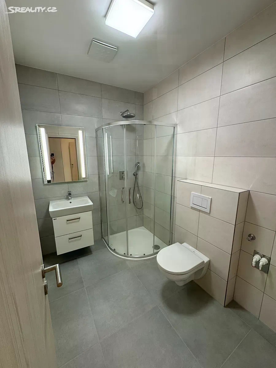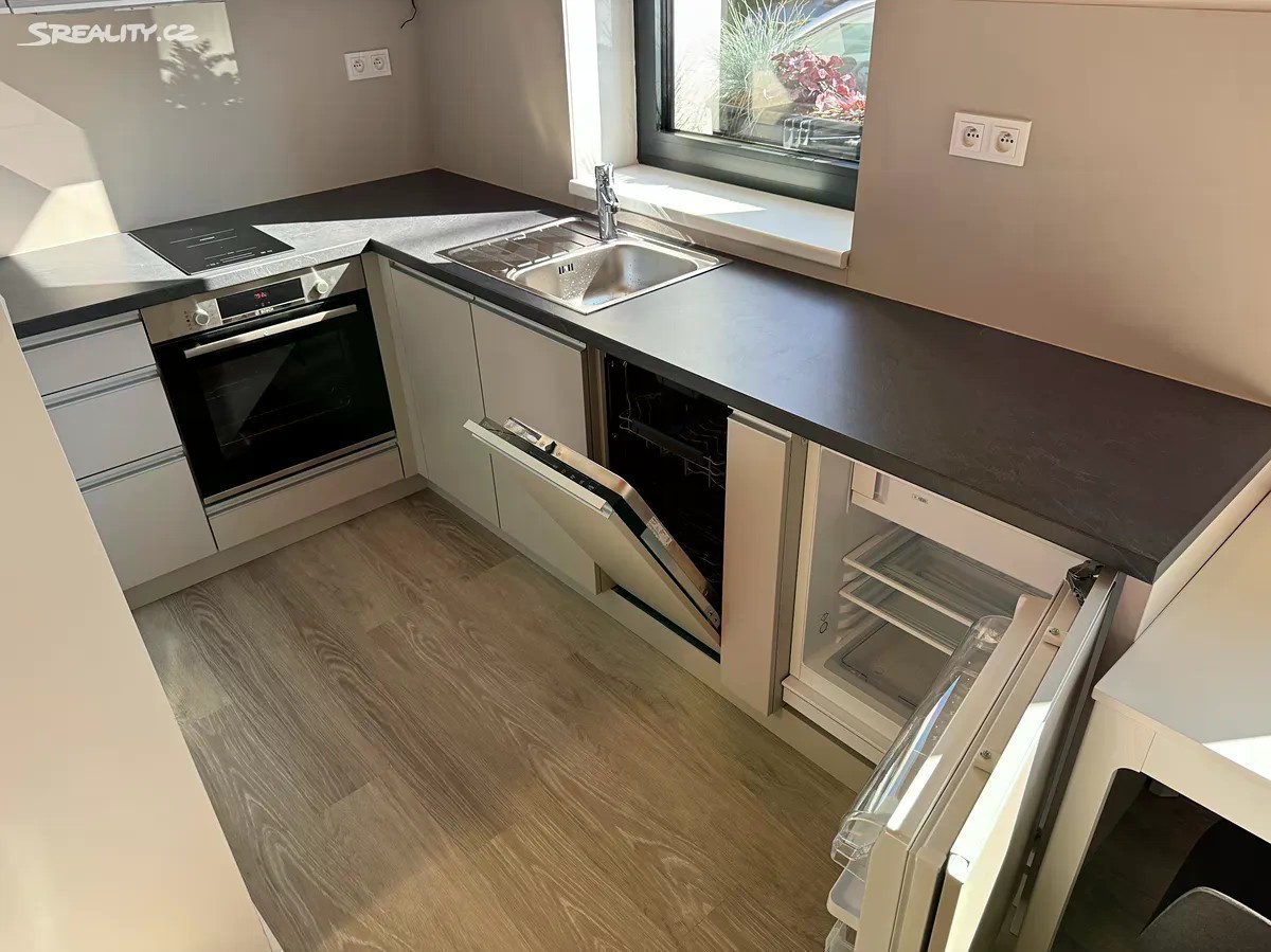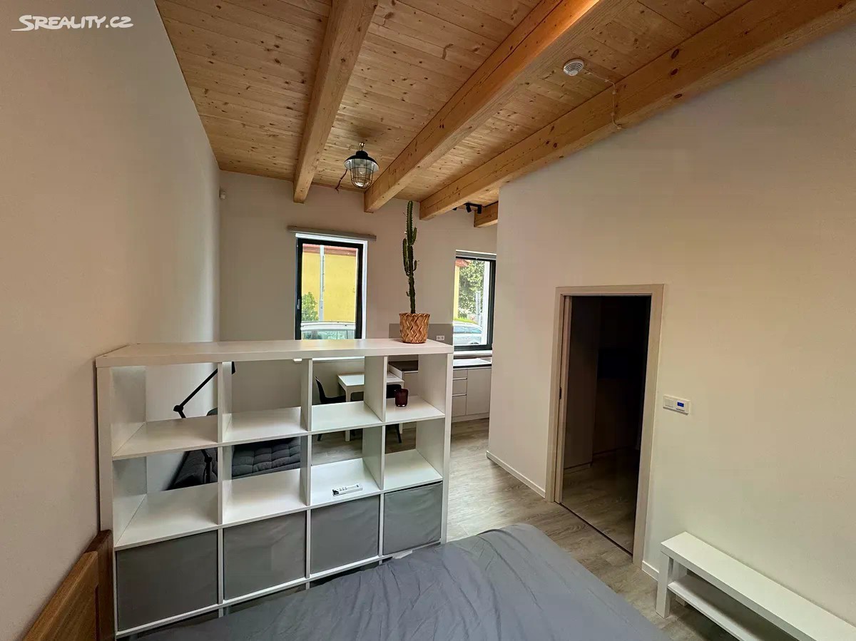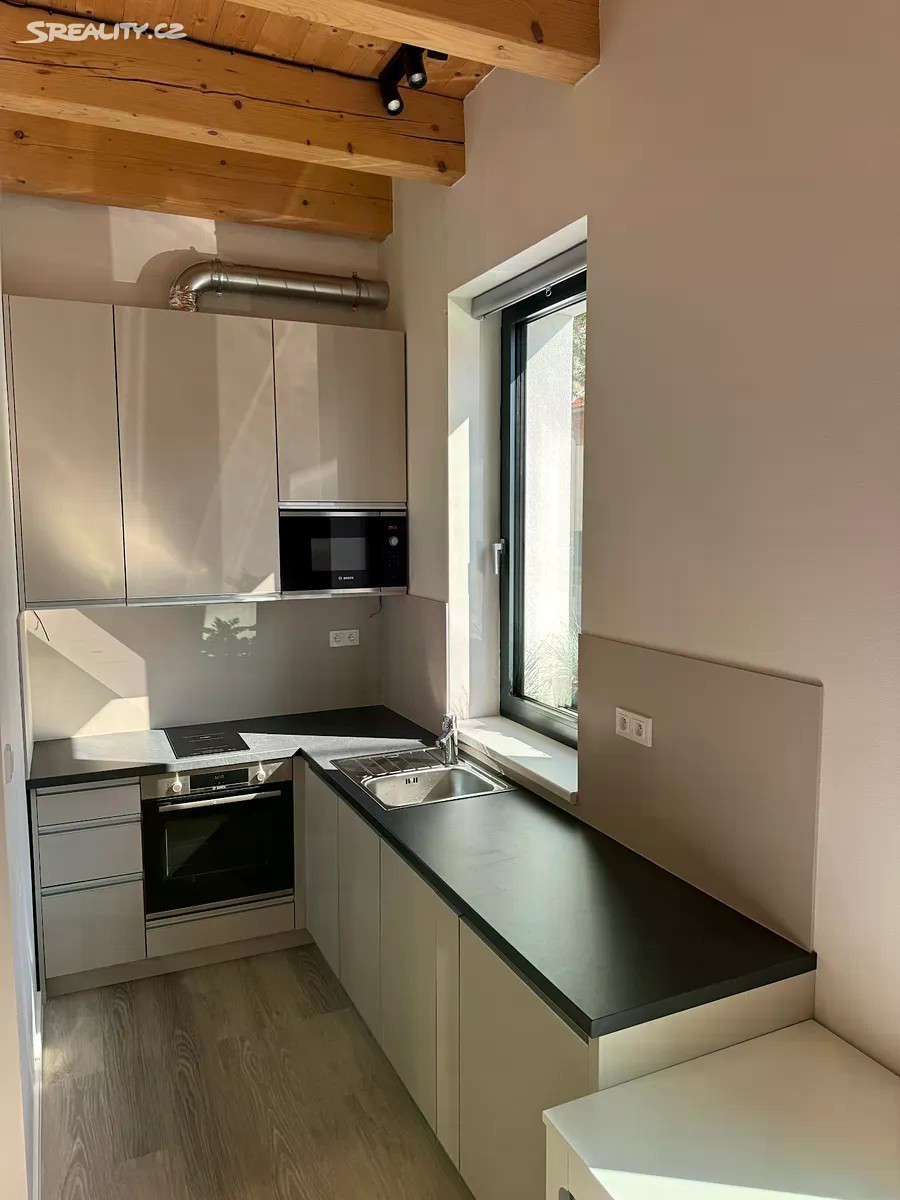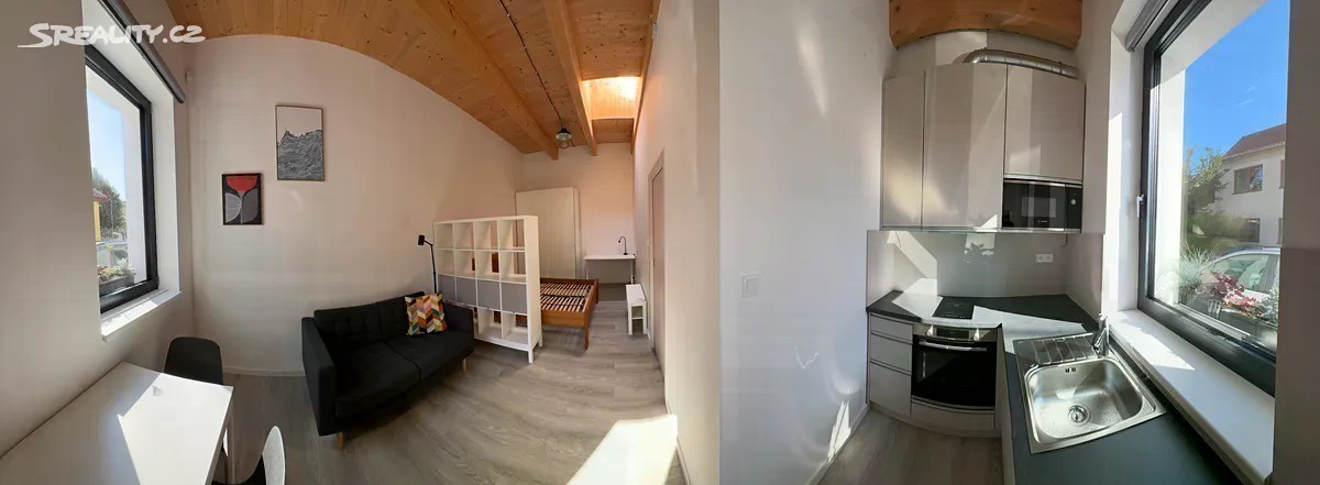 Nabízíme k pronájmu moderní byt 1+kk o celkové ploše 32,46 m2, situovaný v přízemí novostavby rodinného domu, Brno, Líšeň, ulice Klicperova a je ideální pro jednu osobu nebo pár. Dispozice bytu: zádveří 4,62 m2, koupelna: 5,05m2, obývací pokoj s kuchyňským koutem 22,63m2. Vybavení: byt je kompletně zařízen: kuchyňská linka na míru se všemi spotřebiči ( indukční varná deska, digestoř, pečicí trouba, mikrovlnná trouba, myčka, lednice), vestavěné skříně na míru v zádveří a koupelně, postel, šatní skříň, sedačka, psací stůl, jídelní stůl se židlemi a osvětlení. Technické parametry: podlahové vodní vytápění s termostatem, ohřev vody centrálním plynovým kotlem, samostatné měřiče všech energií, vinylové podlahy, cihlová stavba, vysoké trámové stropy, hliníková okna s izolačními trojskly a protisluneční fólií, střešní světlík pro přirozené větrání a světlo, vysokorychlostní kabelový internet (1 Gbps) v ceně, bezpečností systém Jablotron napojený na pult centrální ochrany v ceně. Lokalita a občanská vybavenost: autobusová zastávka a obchod do 50 metrů, bezproblémové parkování v okolí. Volné ihned. Cena a podmínky pronájmu: nájemné: 15 000 Kč / měsíc, zálohy na energie a služby: 4 000 Kč / měsíc, vratná kauce : 30 000 Kč Průkaz energetické náročnosti budovy nebyl zatím majitelem předložen. V souladu s právní úpravou uvádíme energetickou třídu G.