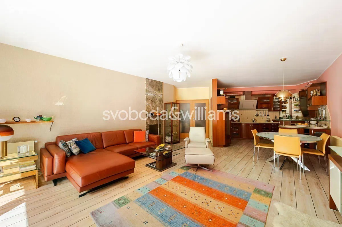 U vstupu do upraveného městského parku Královka na pražském Strahově je v přízemí bytového domu s výtahem situován kompletně zařízený mezonetový byt, jehož interiér doplňují 2 terasy, balkón, předzahrádka, 2 krytá parkovací stání a sklep. Atraktivní adresa v pěší vzdálenosti Pražského hradu i petřínských sadů, jen pár zastávek tramvají od historického centra Prahy. Ve spodním podlaží bytu je umístěný velkoryse řešený obývací pokoj s kuchyňským koutem a přímým vstupem na terasu a předzahrádku, dále samostatná toaleta a prostorná vstupní hala se šatnou. Horní patro sestává ze tří ložnic, přičemž jedna z nich má vlastní terasu, 2 koupelen, šatny a balkónu. Součástí ceny jsou 2 parkovací stání a velký sklep v suterénu domu. Velkoplošná okna i podlahy jsou dřevěné, vstupní dveře bezpečnostní. Cena zahrnuje veškeré vybavení a nábytek. Vytápění zajišťuje vlastní plynový kotel. Strahov nabízí klidné bydlení obklopené množstvím zeleně a přitom jen kousek od pulzujícího centra metropole. V bezprostřední blízkosti se nachází oblíbený park Ladronka s bohatými možnostmi sportovního i volnočasového vyžití, a příjemnou procházkou lze dojít až k Pražskému hradu. Lokalita disponuje veškerou občanskou vybaveností - obchody, restauracemi, zdravotními službami i školami - a zároveň umožňuje rychlé spojení do centra města, na Letiště Václava Havla a do mezinárodních škol v Praze 6 a 5. Podlahová plocha 156,67 m2, terasy 24 m2 a 21,11 m2, balkón 4,56 m2, předzahrádka 36 m2, sklep 9,45 m2.