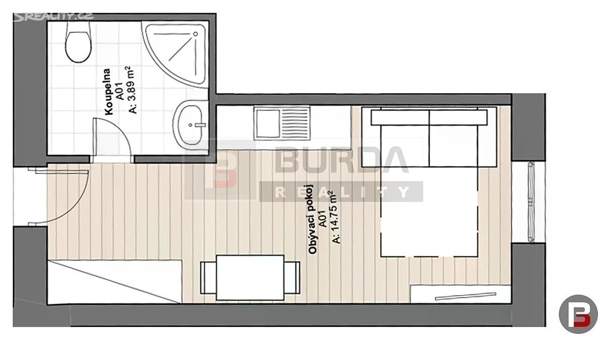 Specialista na Neratovice Vám exkluzivně nabízí k pronájmu byt 1+kk o ploše 19,03 m2 v přízemí (1. nadzemním podlaží) cihlového domu v Neratovicích. Koupelna je vybavena sprchovým koutem, topným žebříkem, zavěšeným WC, umyvadlem a zrcadlem. V obytné místnosti je kuchyňská linka s nerezovým dřezem a postel. Podlahu v pokoji pokrývá plovoucí podlaha. V koupelně je položena dlažba. V bytě jsou plastová okna se žaluziemi. Vytápění bytu je ústřední s deskovými radiátory, které jsou napojené na plynový kotel pro celý dům. Byt má svůj podružný elektroměr. Zálohy za vodu a plyn se platí paušálně a zúčtovávají se pro celý dům a poté se rozpočítávají na byty. Byt je k dispozici ihned, po podpisu smlouvy, úhrady všech nutných poplatků: Na 1 osobu: vratná kauce 28.000 Kč, provize RK 14.000 Kč (ve výši 1 celkové měsíční úhrady) a nájem se zálohami na služby ve výši 14.000 Kč na měsíc dopředu, celkem tedy 56.000 Kč na 1 osobu. Na 2 osoby: vratná kauce 30.000 Kč, provize RK 15.000 Kč (ve výši 1 celkové měsíční úhrady) a nájem se zálohami na služby ve výši 15.000 Kč na měsíc dopředu, celkem tedy 60.000 Kč na 2 osoby. Majitel si vyhrazuje právo vybrat si nájemníka bez udání důvodu. V místě je veškerá občanská vybavenost, poliklinika, lékaři, zubaři, nemocnice, 3 lékárny, 6 supermarketů, 6 školek, 2 základní školy, gymnázium, SOŠ a SOU, základní umělecká škola, dům dětí se zájmovými kroužky, domov pro seniory, pracovní úřad, MěÚ, knihovna, pošta, sportoviště, plavecký bazén, koupaliště, zimní stadion, společenský dům s kinem, restaurace, cukrárny. Cesta autem do Prahy trvá 20 minut a výborné dopravní spojení zajišťuje také vlak do Prahy - Vysočan (39 minut), do Prahy - Hlavní nádraží (37 minut) nebo bus 348 do Prahy - Ládví (31 minut), bus 351 do Prahy - Letňany (41 minut), popř. bus z Neratovic - Byškovic 369 do Prahy - Ládví (24 minut). Do Kralup n/V jezdí vlak nebo bus 473, na Mělník a do Brandýsa n/L vlak a bus 471. V případě zájmu o více informací a domluvení prohlídky volejte makléře.