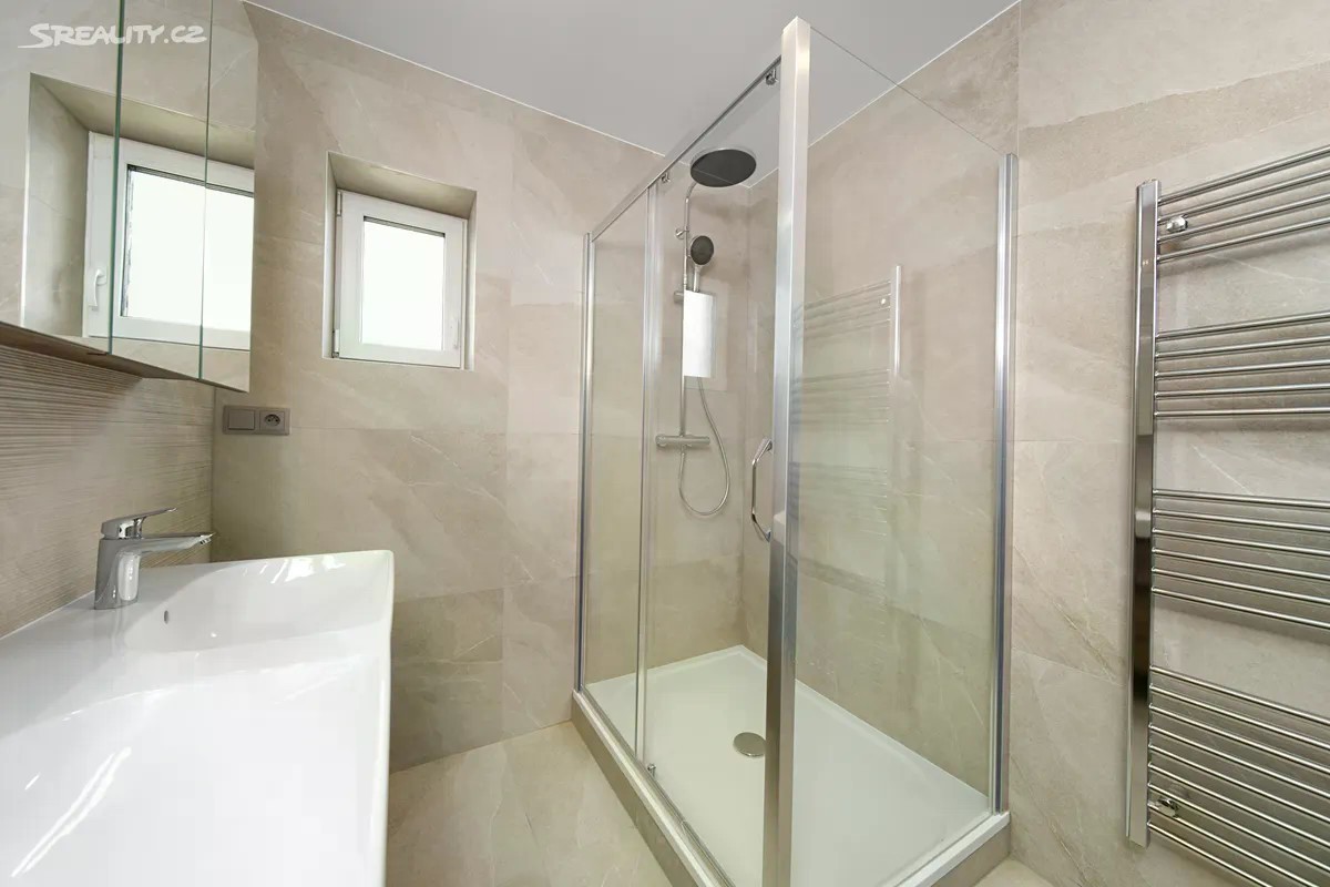 K dlouhodobému pronájmu nabízíme klimatizovaný byt 3+kk (71 m²) se zasklenou lodžií (10 m²) a vyhrazeným parkovacím stáním, situovaný v klidné části Karlových Varů v Bohaticích, ulice U Trati. Byt se nachází v nejvyšším 5. nadzemním podlaží energeticky úsporné novostavby (třída C). Jedná se o zcela nový byt, který dosud nebyl nikým obýván. Dispozice bytu je velmi praktická. Ze vstupní předsíně je samostatný vstup do všech místností, a to do obývacího pokoje s kuchyňským koutem, ložnice, dětského pokoje, koupelny a na samostatné WC. Z obývací části je přímý vstup na zasklenou lodžii, která nabízí krásný výhled na centrum města a široké okolí. Díky zasklení je možné lodžii pohodlně využívat i v chladnějších měsících. Velkorysé úložné možnosti nabízí podkrovní prostor přístupný po skládacích půdních schodech přímo z bytu (není zachyceno na fotografiích). K bytu náleží také zděná komora s plnými dveřmi (2 m²) umístěná přímo na patře vedle bytu a zděná sklepní kóje (2 m²) v suterénu domu. Součástí vybavení je moderní kuchyňská linka v nadčasovém designu, která zahrnuje vestavnou elektrickou troubu, indukční varnou desku, digestoř, myčku nádobí a ledničku s mrazákem. Koupelna je vybavena prostorným sprchovým koutem, dvojitým umyvadlem zasazeným do skříňky se šuplíky a praktickou zrcadlovou skříňkou. Nechybí ani přípojka na pračku a sušičku. Toaleta je oddělená a vybavena také bidetovou sprškou. V předsíni i obývacím pokoji se nachází vestavěné skříně na míru, které poskytují velkorysý úložný prostor. Celý interiér doplňuje moderní stropní i podlinkové osvětlení. Vytápění je podlahové, v koupelně navíc s topným žebříkem. Absence klasických radiátorů šetří prostor a umožňuje lepší uspořádání nábytku v interiéru. Teplo i teplá voda jsou dodávány centrálně, přičemž jejich spotřeba je měřena samostatně pro každý byt. Lokalita nabízí kompletní občanskou vybavenost, výbornou dostupnost MHD (autobusové linky č. 5 a 17) a zároveň i klidné prostředí vhodné pro rodiny. V blízkém okolí se nachází dětské hřiště, obchody, školka, sportovní areál a přírodní stezky, ideální pro procházky nebo cyklistiku. Cenové podmínky pronájmu • Nájemné 18.900 Kč/měsíc. • Zúčtovatelné zálohy na energie a služby vyjma elektřiny 3.600 Kč/1 osoba/měsíc 4.000 Kč/2 osoby/měsíc 4.400 Kč/3 osoby/měsíc 4.800 Kč/4 osoby/měsíc • Elektřinu si nájemce převádí na sebe (cca 1.500 Kč/měsíc) • Jistota (vratná kauce) 40.000 Kč • Provize RK 22.900 Kč Byt je ihned k nastěhování. Pro bližší informace či domluvení prohlídky volejte na uvedený mobilní telefon. Pro zjištění rozměrů místností a objektů v prostoru využijte možnost měření ve virtuální prohlídce pomocí ikony pravítka v levém dolním rohu.
