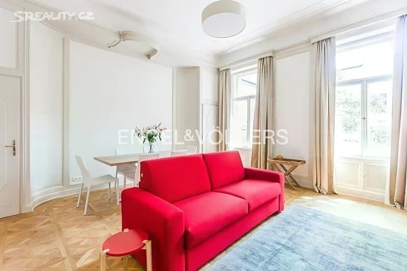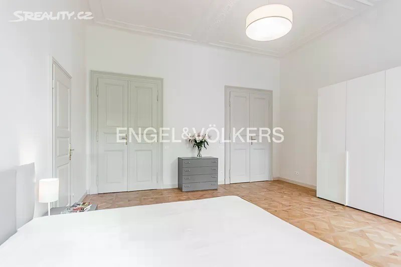 K okamžitému pronájmu nádherný byt 3. nadzemním podlaží historického činžovního domu po kompletní rekonstrukci nejvyššího standardu. Zachované štukové stropy, dřevěné obložení, zámečnické prvky a další specifické prvky pro tento dům dohromady tvoří jedinečné umělecké dílo. K rekonstrukci byly použity výhradně kvalitní materiály. Prosvětlený obývací pokoj se zdobnou konvexní předstěnou a jídelním koutem je ústřední místnosti tohoto krásného bytu. Oddělená na míru vyrobená italská kuchyně s veškerými spotřebiči nabízí veškerý komfort moderního vaření. Prostorná ložnice s nádherným stropním štukováním a dostatkem úložného prostoru je propojená s vlastní koupelnou a šatnou. Moderní koupelna se sprchovým koutem, umyvadlem, bidetem a toaletou. Byt je možno na přání nájemce dovybavit televizí a pračkou nebo pronajmout nezařízený. Celoroční komfort nabízí podlahové topení v celém bytě. Přímo v domě se nachází kompletně vybavená posilovna přístupná všem nájemcům. V podzemních garážích je možnost si pronajmout parkovací stání. Centrální lokalita nabízí fantastickou dopravní dostupnost a nespočetné kulturní a volnočasové aktivity. Cena nájmu je uvedená bez poplatků. Majitel nesouhlasí s podnájmem třetím osobám.