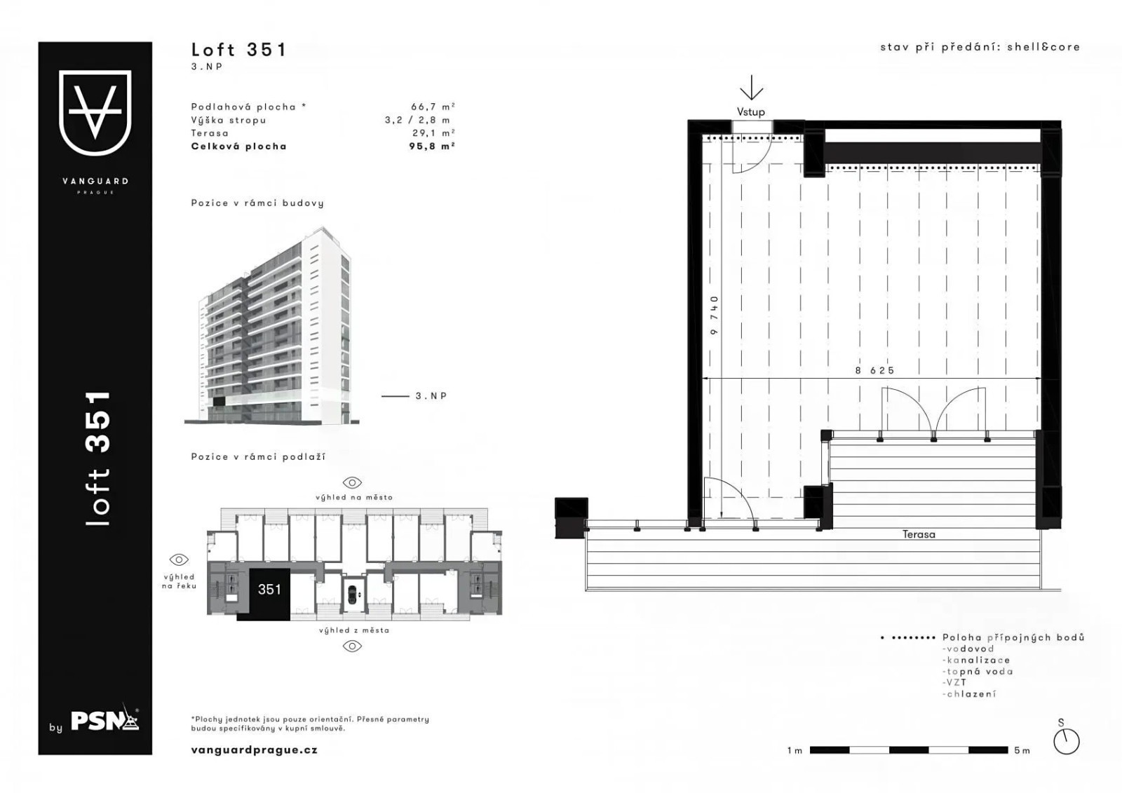Vážení klienti, s ohledem na aktuální situaci bychom Vás chtěli ujistit, že naše společnost přijala veškerá nezbytná opatření k tomu, abyste si své nové bydlení mohli vybrat bez obav a s plnohodnotným servisem z naší strany. Využít můžete osobní prohlídky, kterými Vás rádi provedou obchodní konzultanti naší společnosti, jakožto přímého vlastníka a prodejce nabízených nemovitostí. Svůj nový domov si můžete prohlédnout i díky videoprohlídkám. Jsme tu pro Vás každý všední den od 8 do 18 hodin. Těšíme se na Vás, společně to zvládneme. Vaše PSN Naše společnost nabízí k prodeji variabilní komerční prostory v jedinečném projektu, který nemá v České republice obdoby, projekt Vanguard Prague. Unikátní prostory ve 3. podlaží budovy o celkové ploše 95,8 m² s terasou 29,1 m², která má nádherný výhled z města. Tyto prostory se prodávají ve standardu Shell & Core což vám umožní si prostory dodělat zcela podle vlastních představ. Variabilní prostory vám umožní si je utvořit zcela podle vlastních představ, od malých prostor (např. kancelář, pobočku, bistro či obchod s potravinami) po velké, vhodné pro módní salon nebo showroom. Vanguard Prague je projekt, kde najdete penthousy s prostornými terasami, ale i netradiční menší lofty. Při velkorysé výšce stropů až 4,3 m se jedná o prostor, jehož variabilita vyráží dech. Opravdové lofty pro ty, kteří vědí, že jediným omezením je jejich vlastní fantazie. Výtahy pro automobil přímo do loftů. Recepce se službou concierge. Wellness, fitness, bazén, sauna i střešní terasy. Okna od podlahy ke stropu. Výhled na celou Prahu. To vše je Vanguard. To Vám umožní si je utvořit zcela podle vlastních představ, od malých prostor (např. květinářství, bistro či obchod s potravinami) po velké, vhodné pro módní salon nebo showroom. Prostor pro realizaci svých vizí dostala tři renomovaná architektonická studia. Každé jednotlivé řešení bude originálem vybroušeným na míru Vaší osobnosti a stylu. Lofty jsou k dispozici také ve formě Shell & Core. Svůj vysněný domov si tak můžete navrhnout sami. Projekt je situován v lukrativní lokalitě poblíž Vltavy a městské části Prahy 4 - Modřany. Místo se vyznačuje optimální dostupností jak do centra, tak do okrajových částí Prahy. V nedalekém okolí naleznete i golfové hřiště, cyklostezky a spousty zeleně. Finální podoba se může lišit od vizualizací projektu. Cena na dotaz, odvíjí se podle požadavků na celkový prostor. Neváhejte nám sdělit Vaši představu o konkrétním prostoru!