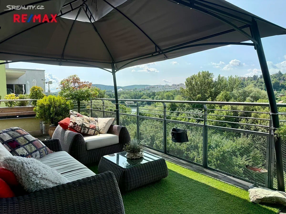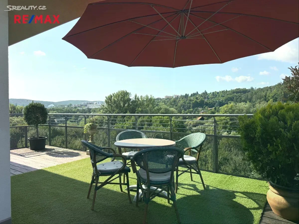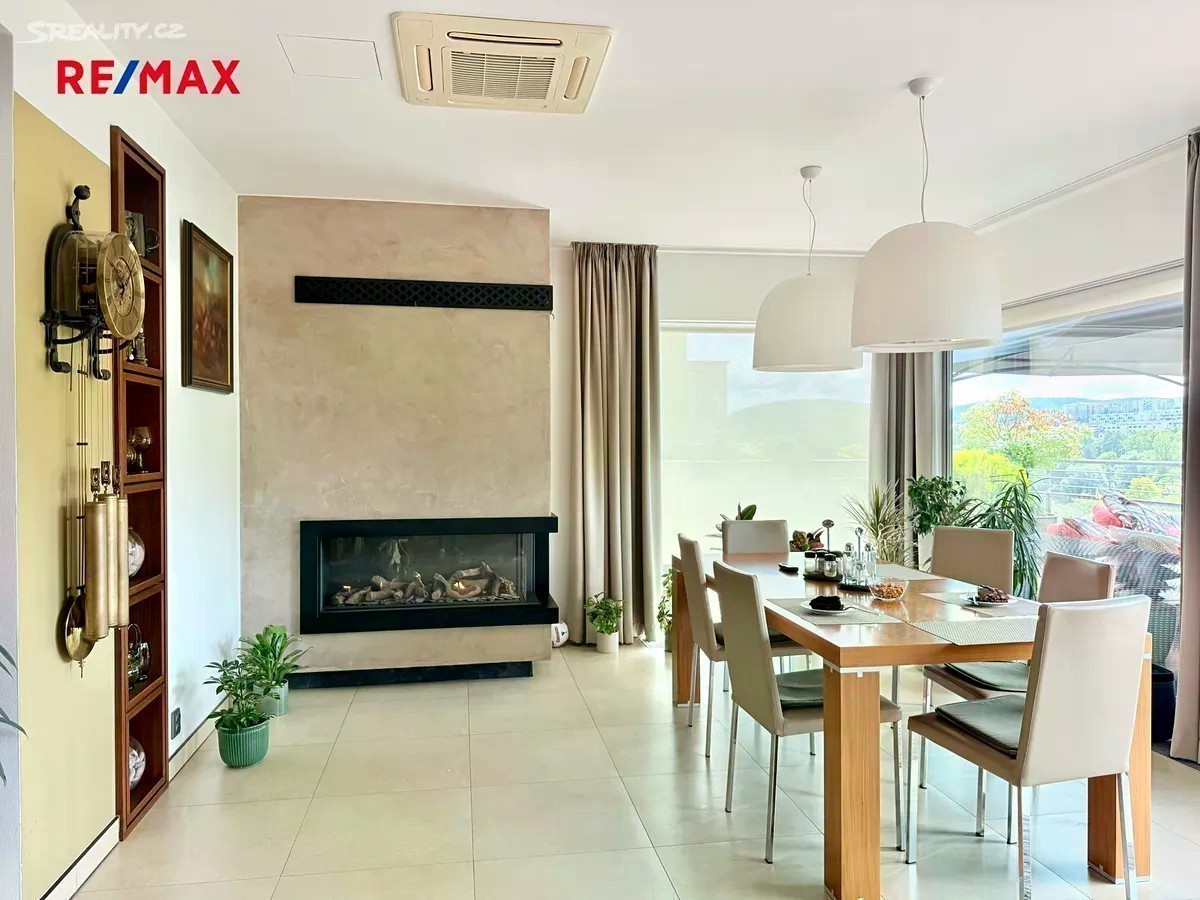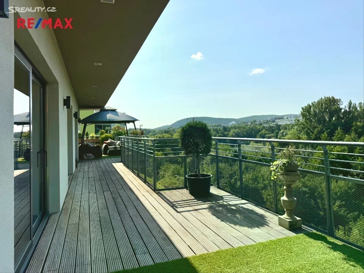 Toužíte po domově, kde se snoubí prostor, klid a blízkost přírody? Hledáte místo, kde si vaše rodina užije naprosté soukromí, kde se ráno nadechnete čerstvého vzduchu na prostorné terase a večer budete sledovat západy slunce nad údolím? Chcete bydlení, které nabídne dostatek prostoru pro každého člena domácnosti a zároveň bude stylovým zázemím pro váš každodenní život? Exkluzivní výhoda: Tento byt 3+kk o velkorysé užitné ploše 147 m² s dechberoucí terasou o ploše 119 m² zabírá celé 3. patro domu, takže žádný soused ani vedle ani nad vámi - jen klid, světlo a maximální soukromí. Výhled z terasy směřuje do údolí i na brněnskou přehradu a stane se vaším každodenním zdrojem inspirace. Dispozice zahrnuje reprezentativní obývací pokoj s jídelní částí a moderním kuchyňským koutem, hlavní ložnici a další pokoj, který může sloužit jako dětský pokoj, pracovna či pokoj pro hosty, a dvě samostatné šatny s dostatkem úložného prostoru pro veškeré oblečení i sezónní vybavení. Z každého pokoje je přímý vstup na terasu, interiér je tak po celý den zalitý přirozeným světlem a propojený s venkovním prostorem. Komfort zajišťuje plynový kotel v kombinaci s podlahovým vytápěním. Atmosféru dotváří plynový krb, který nejen zahřeje, ale také vnese do prostoru pocit útulna. Chodba je po celý den prosvětlena elegantními stropními světlovody. Klimatizace vás osvěží v letních parných dnech a poskytne příjemné teplo v chladnějších obdobích. Vybavení bytu, vestavěné skříně, osvětlení a další komponenty jsou nadstandardní kvality. K bytu náleží dvě samostatné plnohodnotné garáže, každá o ploše 22 m² a další přidělené parkovací stání vycházející z podílu na pozemku. Celý rezidenční areál je zabezpečen vjezdovou závorou - přístup mají výhradně obyvatelé, což zaručuje naprostý klid, soukromí a nulový provoz cizích vozidel. Tento byt není jen místem k bydlení - je to životní prostor pro ty, kteří hledají výjimečnost a odmítají dělat kompromisy. Harmonicky spojuje styl, klid, světlo a promyšlenou dispozici s každodenní praktičností. Je to bydlení, které definuje nadčasový, sebevědomý a exkluzivní životní styl. Zaujalo vás toto exkluzivní bydlení? Kontaktujte nás - rádi pro vás zajistíme soukromou prohlídku, při níž se osobně přesvědčíte o jeho jedinečné atmosféře.