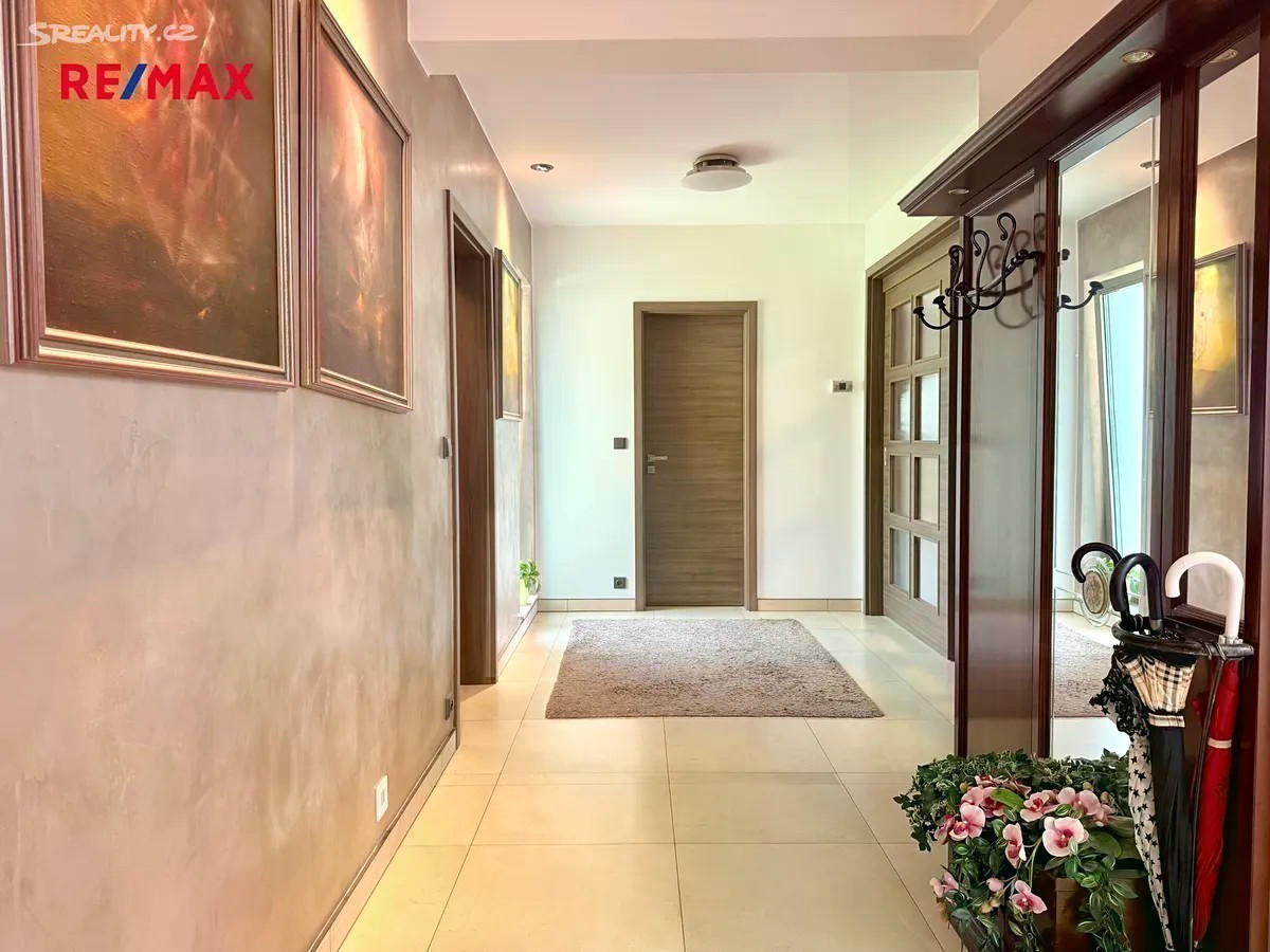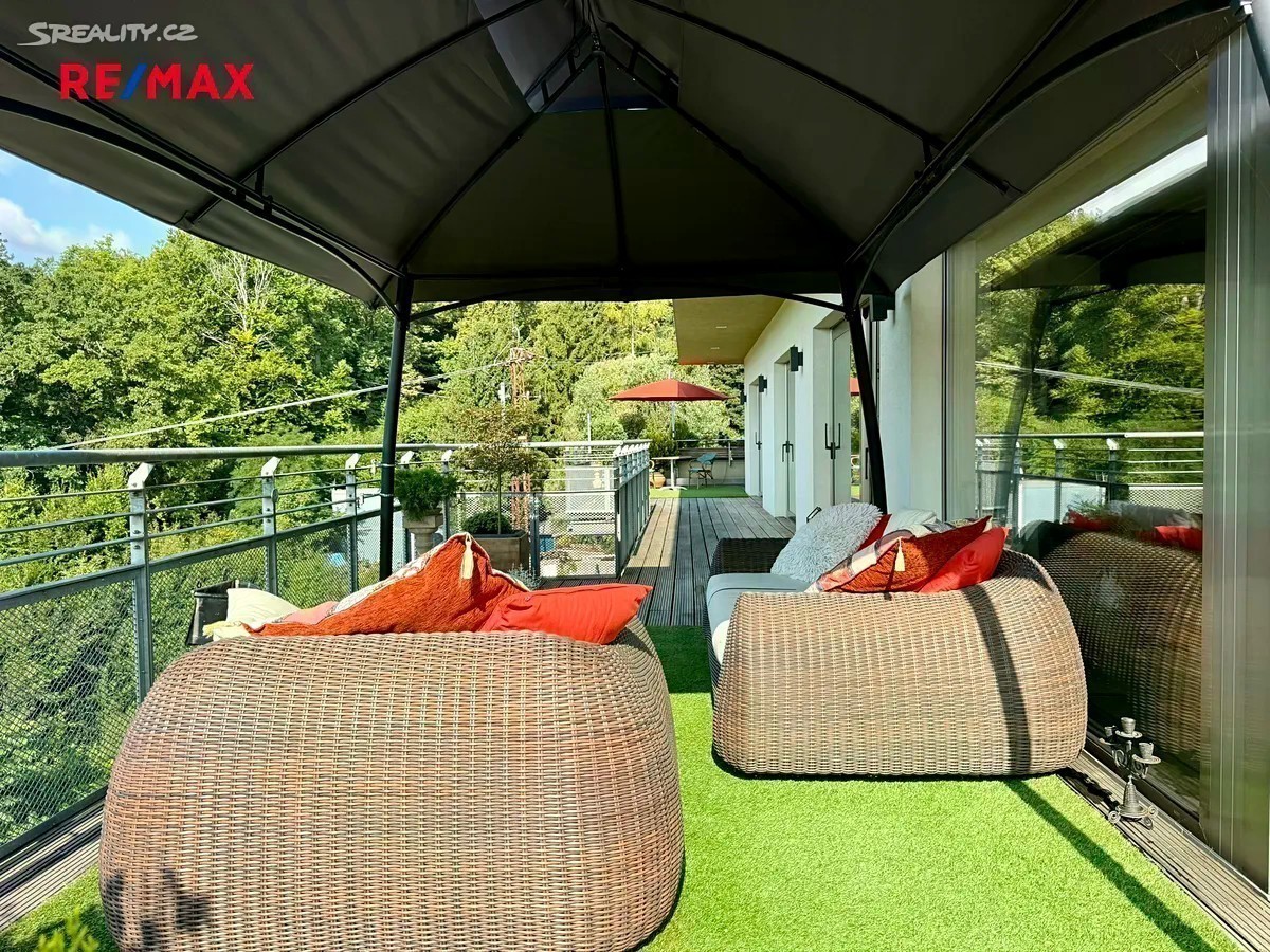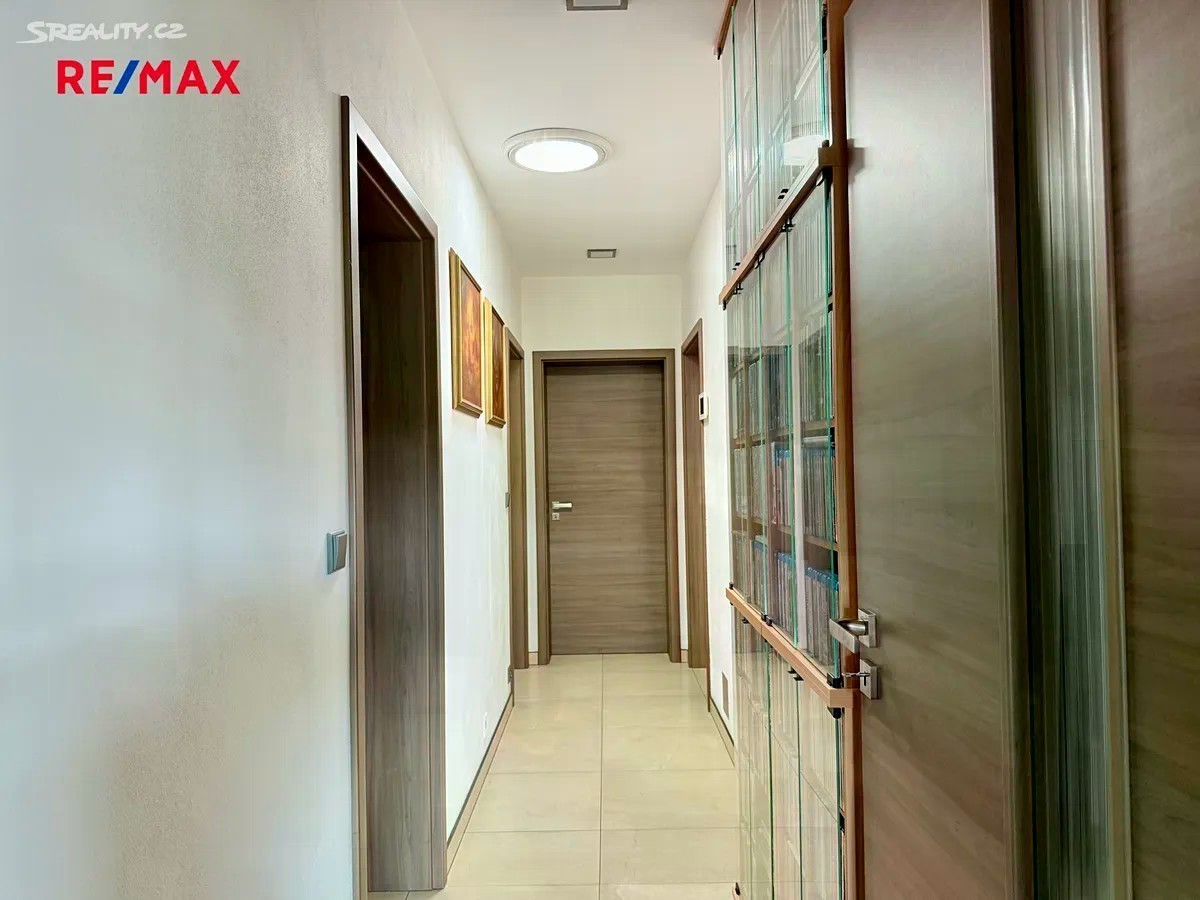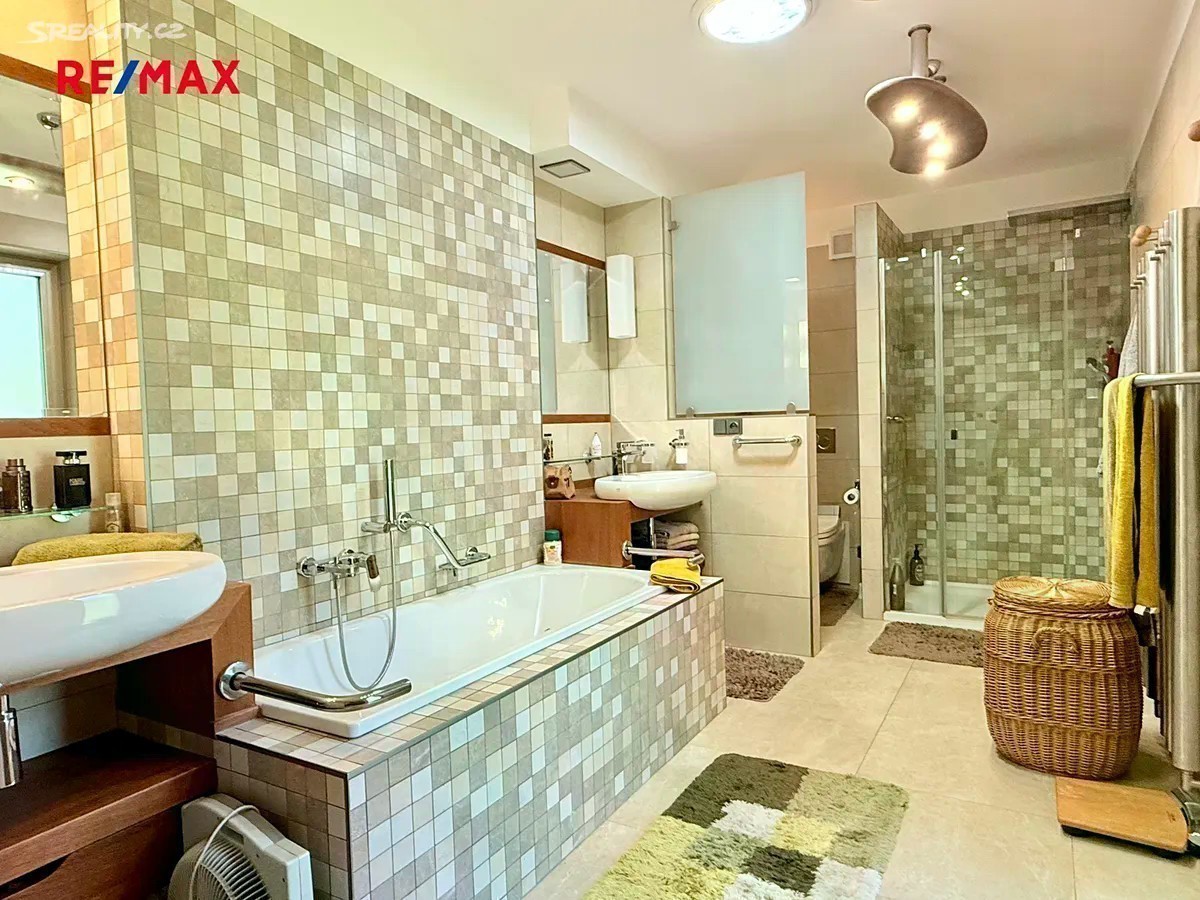 Toužíte po domově, kde se snoubí prostor, klid a blízkost přírody? Hledáte místo, kde si vaše rodina užije naprosté soukromí, kde se ráno nadechnete čerstvého vzduchu na prostorné terase a večer budete sledovat západy slunce nad údolím? Chcete bydlení, které nabídne dostatek prostoru pro každého člena domácnosti a zároveň bude stylovým zázemím pro váš každodenní život? Exkluzivní výhoda: Tento byt 3+kk o velkorysé užitné ploše 147 m² s dechberoucí terasou o ploše 119 m² zabírá celé 3. patro domu, takže žádný soused ani vedle ani nad vámi - jen klid, světlo a maximální soukromí. Výhled z terasy směřuje do údolí i na brněnskou přehradu a stane se vaším každodenním zdrojem inspirace. Dispozice zahrnuje reprezentativní obývací pokoj s jídelní částí a moderním kuchyňským koutem, hlavní ložnici a další pokoj, který může sloužit jako dětský pokoj, pracovna či pokoj pro hosty, a dvě samostatné šatny s dostatkem úložného prostoru pro veškeré oblečení i sezónní vybavení. Z každého pokoje je přímý vstup na terasu, interiér je tak po celý den zalitý přirozeným světlem a propojený s venkovním prostorem. Komfort zajišťuje plynový kotel v kombinaci s podlahovým vytápěním. Atmosféru dotváří plynový krb, který nejen zahřeje, ale také vnese do prostoru pocit útulna. Chodba je po celý den prosvětlena elegantními stropními světlovody. Klimatizace vás osvěží v letních parných dnech a poskytne příjemné teplo v chladnějších obdobích. Vybavení bytu, vestavěné skříně, osvětlení a další komponenty jsou nadstandardní kvality. K bytu náleží dvě samostatné plnohodnotné garáže, každá o ploše 22 m² a další přidělené parkovací stání vycházející z podílu na pozemku. Celý rezidenční areál je zabezpečen vjezdovou závorou - přístup mají výhradně obyvatelé, což zaručuje naprostý klid, soukromí a nulový provoz cizích vozidel. Tento byt není jen místem k bydlení - je to životní prostor pro ty, kteří hledají výjimečnost a odmítají dělat kompromisy. Harmonicky spojuje styl, klid, světlo a promyšlenou dispozici s každodenní praktičností. Je to bydlení, které definuje nadčasový, sebevědomý a exkluzivní životní styl. Zaujalo vás toto exkluzivní bydlení? Kontaktujte nás - rádi pro vás zajistíme soukromou prohlídku, při níž se osobně přesvědčíte o jeho jedinečné atmosféře.
