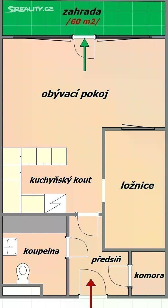 Exkluzivně Vám nabízíme ke koupi velice pěkný a slunný byt v osobním vlastnictví s původní dispozicí 1+kk /předělán na 2+kk/ o celkové výměře 52,1 m2 + předzahrádka o výměře 60 m2, v 1.NP bytového domu z roku 2006, velice úspěšného projektu MAZANKA, situovaný v atraktivní lokalitě Prahy 8 - část Libeň, ul. Nad Okrouhlíkem. Součástí domu, ve kterém se byt nachází, je relaxační centrum se saunou /250 Kč za 1,5 hod. a posilovna /zdarma/. Vstup do domu a vnitrobloku zabezpečen čipem, celý objekt monitorován kamerovým systémem s 24 hodinovou recepcí. Před několika dny prošel byt rozsáhlou rekonstrukcí - nová koupelna s velkoformátovou dlažbou, prostorným sprchovým koutem a závěsnou toaletou, nové lepené vinylové podlahy, nové osvětlení apod. V rámci obývacího pokoje je velice vkusně a prakticky řešena ložnice a kuchyňský kout, zařízený moderní kuchyňskou linku ve tvaru písm. U, s vestavěnými el. spotřebiči - lednice s mrazákem, mikrovlnná trouba, el. trouba, sklokeramická varná deska a digestoř vše zn. SIEMENS. Z obývacího pokoje je dále vstup na oplocenou zahrádku o ploše 60 m2, situovanou do zajištěného vnitrobloku. Součástí bytu je praktická komora. S bytem jsou spojené velice nízké měsíční poplatky ve výši 4.210 Kč + elektřina 700 Kč. Byt je připraven k okamžitému nastěhování. Parkování je zajištěno na parkovišti před domem. Koupě bytu lze financovat hypotečním úvěrem, který Vám zcela zdarma vyřídíme u všech bank s nejnižší úrokovou sazbou na trhu. Pro více informací nebo prohlídku volejte realitního makléře.