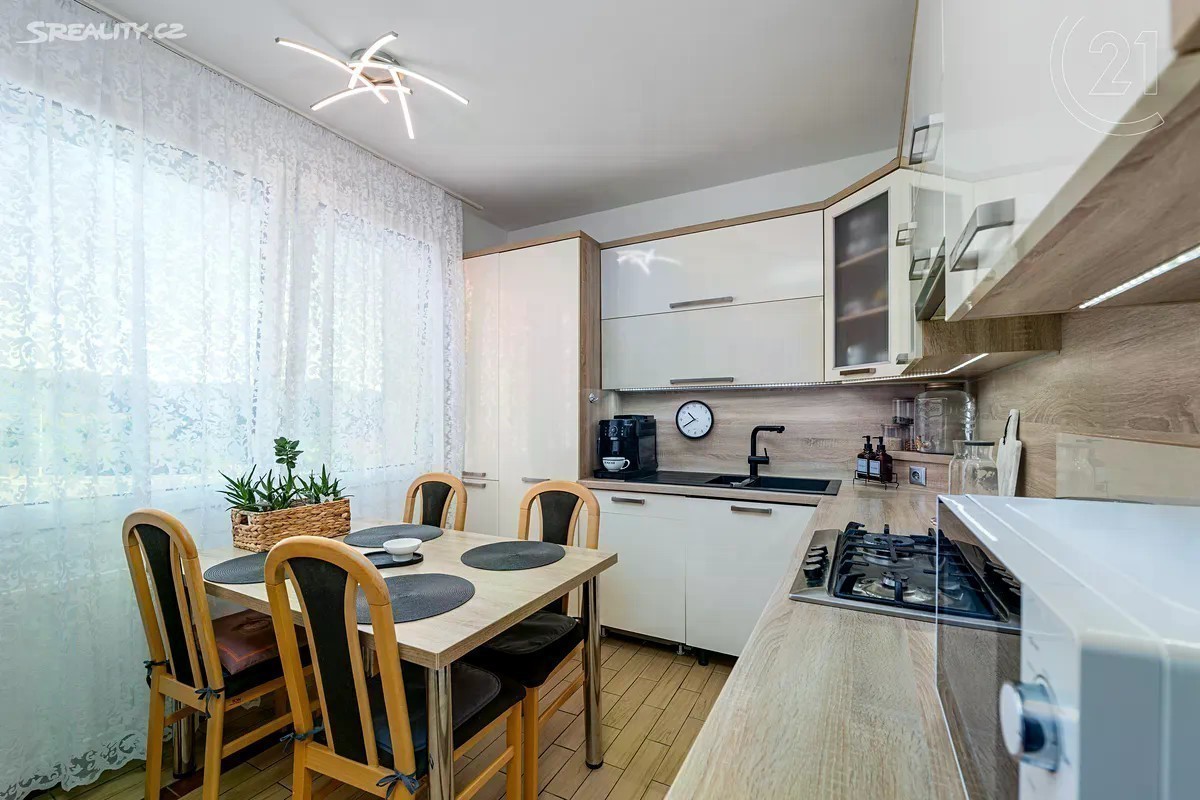 Nabízíme k prodeji útulný byt, který je ideálním místem pro rodinný život. Byt je umístěn na 2. patře dobře udržovaného revitalizovaného bytového domu s výtahem a bezbariérovým přístupem z obou stran tohoto domu. Dům působí klidným a udržovaným dojmem a zajišťuje tak pohodlné bydlení pro rodiny s dětmi nebo starší osoby. Celková užitná plocha bytu je 78 m² a k tomu náleží také zasklený balkon o velikosti 6 m², který poskytuje skvělý prostor pro odpočinek o teplých letních večerech a je ideálním místem pro relaxaci. Součástí bytu je rovněž sklep o rozměru 3 m², který nabízí dostatek prostoru pro uložení sezónních věcí či nářadí. Interiér bytu je zařízen velmi vkusně a nadčasovým designem. Kuchyň je vybavena vestavnými spotřebiči, jako je lednice, elektrická trouba, mrazák, plynová varná deska, digestoř a myčka a velkým překvapením této místnosti je skvěle řešený vstup do špajzu, který je skryt v kuchyňské lince. Nespornou výhodou je centrální dálkové vytápění, což zajišťuje optimální teplotní komfort po celý rok. PENB C. Lokalita bytu je vynikající s velmi dobrou občanskou vybaveností. V bezprostřední blízkosti se nachází škola, školka, různé obchody, restaurace a kulturní zařízení. Sportovní a relaxační aktivity nabízejí nedaleké sportovní areály a zelené plochy. Dopravní dostupnost je rovněž vynikající, s rychlým přístupem k autobusové dopravě, první třídy silnicím a městské dopravě, což zajišťuje snadné a rychlé spojení s ostatními částmi města i okolí.
