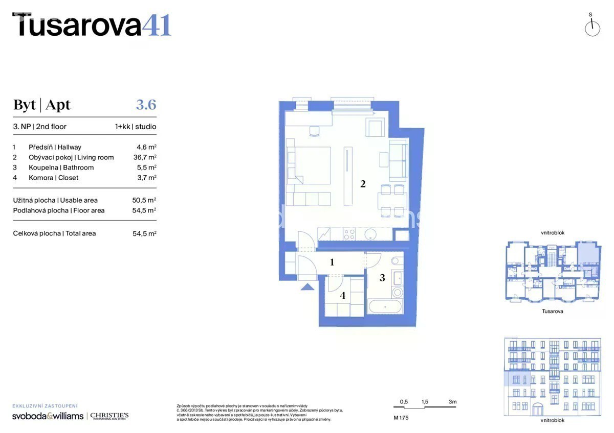 Nový byt bude součástí architektonicky odvážného rezidenčního projektu, který působivě kombinuje secesní dům z počátku 20. století s moderní nástavbou v atraktivní lokalitě Prahy 7 - Holešovic, čtvrti bohaté na kulturní život i zajímavou gastronomii. Dispoziční řešení bytu ve 3. podlaží domu nabídne obývací pokoj s přípravou na kuchyni, koupelnu (s vanou), komoru a předsíň. Vysoký standard zahrnuje třívrstvé dubové podlahy, repliky kastlových oken s vnějšími izolačními dvojskly a mosaznými kličkami, velkoformátovou keramickou dlažbu v koupelně a sanitární vybavení Kaldewei a Hansgrohe, lakované interiérové dveře, profilované dřevěné vstupní dveře bezpečnostní třídy III, vytápění radiátory (zdroj tepla tepelná čerpadla). Dům bude vybaven výtahem, k bytu lze přikoupit sklep. V bezprostředním okolí se nachází výborná občanská vybavenost, centrum je dostupné během pár minut jízdy MHD. Asi 3 minuty chůze je vzdálena tramvajová zastávka, pohodlně se dá dojít i ke stanici metra, novému vlakovému nádraží Praha-Bubny, kterým bude procházet rychlodráha na letiště, nebo po lávce HolKa až do Karlína. Řada okolních sportovišť nabízí možnost aktivního odpočinku stejně jako nedaleká Stromovka nebo nový park U Vody s komunitní zahradou, posezením, ohništěm, dětským hřištěm a venkovní posilovnou. Podlahová plocha 54,5 m2. Dokončení projektu je plánováno na 4. čtvrtletí roku 2027.