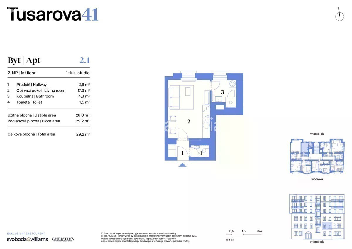 Nový byt bude součástí architektonicky odvážného rezidenčního projektu, který působivě kombinuje secesní dům z počátku 20. století s moderní nástavbou v atraktivní lokalitě Prahy 7 - Holešovic, čtvrti bohaté na kulturní život i zajímavou gastronomii. Dispoziční řešení bytu ve 2. podlaží domu nabídne obývací pokoj s přípravou na kuchyni, koupelnu, WC a předsíň. Vysoký standard zahrnuje třívrstvé dubové podlahy, repliky kastlových oken s vnějšími izolačními dvojskly a mosaznými kličkami, velkoformátovou keramickou dlažbu v koupelně a sanitární vybavení Kaldewei a Hansgrohe, lakované interiérové dveře, profilované dřevěné vstupní dveře bezpečnostní třídy III, vytápění radiátory (zdroj tepla tepelná čerpadla). Dům bude vybaven výtahem, k bytu lze přikoupit sklep. V bezprostředním okolí se nachází výborná občanská vybavenost, centrum je dostupné během pár minut jízdy MHD. Asi 3 minuty chůze je vzdálena tramvajová zastávka, pohodlně se dá dojít i ke stanici metra, novému vlakovému nádraží Praha-Bubny, kterým bude procházet rychlodráha na letiště, nebo po lávce HolKa až do Karlína. Řada okolních sportovišť nabízí možnost aktivního odpočinku stejně jako nedaleká Stromovka nebo nový park U Vody s komunitní zahradou, posezením, ohništěm, dětským hřištěm a venkovní posilovnou. Podlahová plocha 29,2 m2. Dokončení projektu je plánováno na 4. čtvrtletí roku 2027.