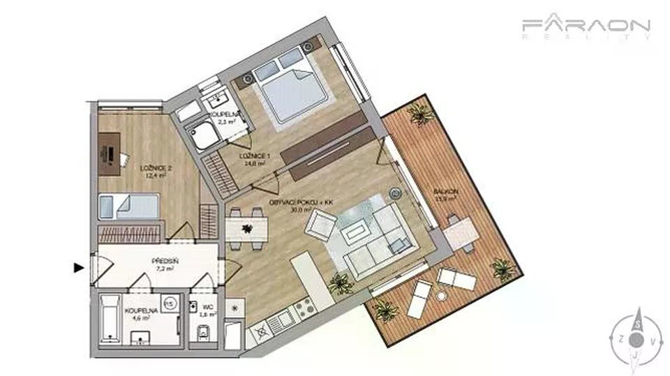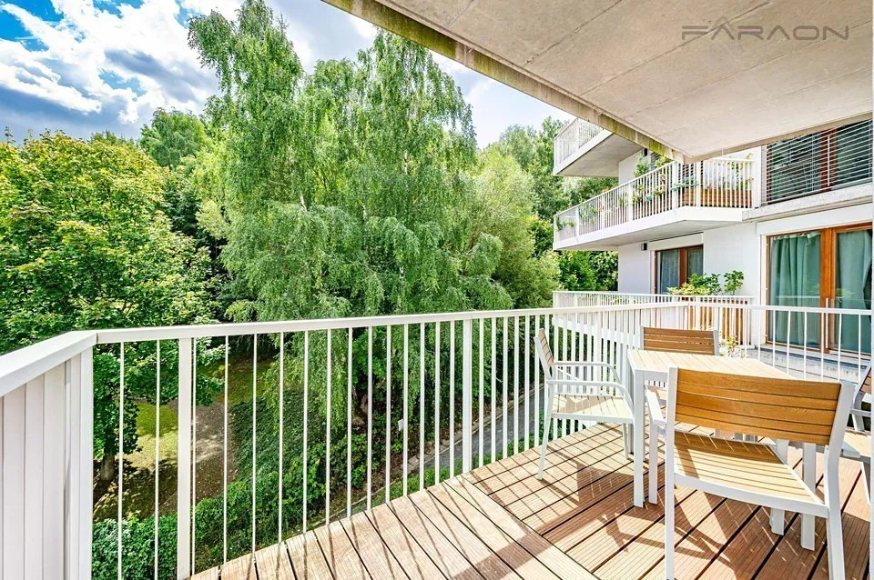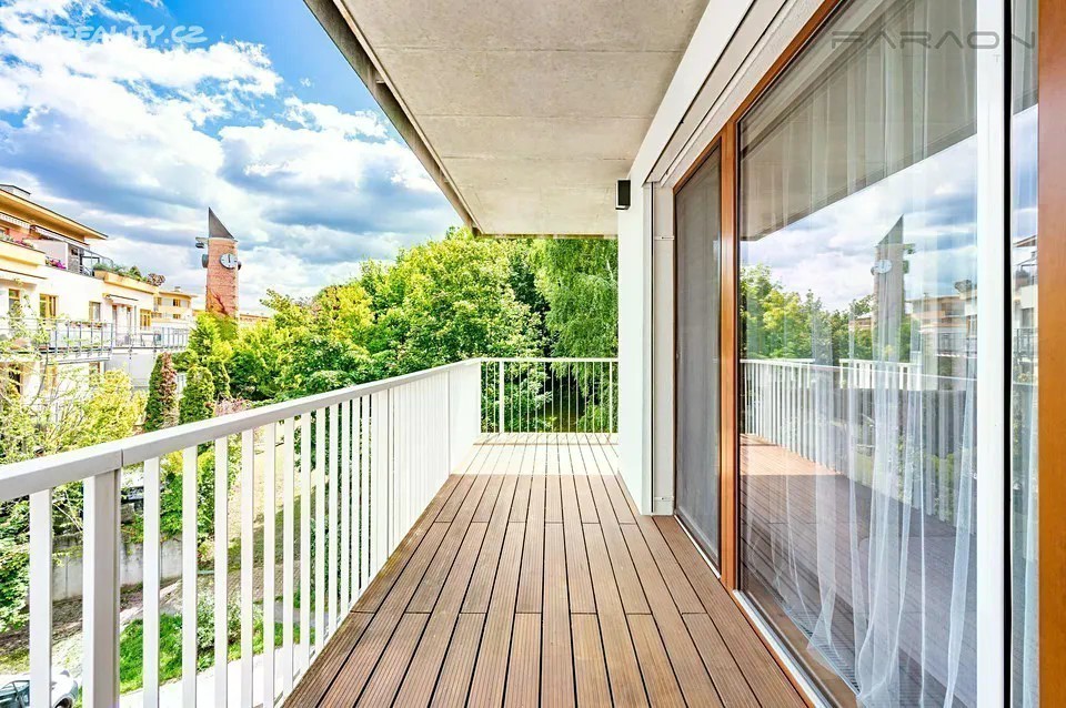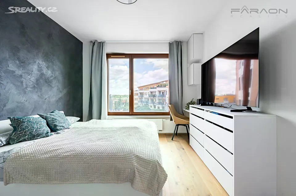 REZERVOVÁNO / Pronájem kompletně vybaveného bytu 3+kk s terasou a krásným výhledem na Prahu s parkovacím místem v ceně nájmu, situovaný ve 4. podlaží nedávno postaveného, uzavřeného bytového komplexu AALTO s 24/7 ostrahou a denní recepcí (s možností předávání zásilek a balíčků), fitness centrem a parkem ve vnitrobloku. Objekt stojí v klidné rezidenční lokalitě na okraji přírodní rezervace Vidoule, v sousedství lesoparku Cibulka. V rychlém dosahu komplexu se nachází stanice metra Jinonice, vlaková stanice Cibulka se spoji k Andělu a do centra a dobře dostupné jsou také obchodní centrum Nový Smíchov / Anděl a Německé gymnázium. Plná občanská vybavenost je k dispozici v blízkém okolí. Interiér tvoří otevřený koncept obývacího pokoje s plně vybavenou kuchyní, přístupem na terasu s krásným výhledem do zeleně, ložnice, koupelna s vanou, samostatná toaleta a vstupní hala. En-suite koupelna v ložnici. Kompletní vybavení zahrnuje kuchyňskou linkou Sykora v šedém designu vybavenou spotřebiči, masivní dřevěné podlahy, dlažba v koupelnách, exteriérové žaluzie ve všech oknech bytu, centrální vytápění, myčka, indukční varná deska, videotelefon, kamerový systém, kolárna / kočárkárna a podlahové vytápění v koupelnách. V ceně nájmu je zahrnuto garážové stání. V ceně nájmu je také sklep o velikosti cca 5 m2. V domě k dispozici místnost na mytí kol a dětských kočárků. Privátní vstup do lesoparku přímo za domem umožňuje během pouhých dvou minut přejít z městského komfortu do klidné přírody a napojit se na cyklostezku. Přímo ve vnitrobloku rezidence najdete řemeslnou francouzskou pekárnu s bistrem a kávou, fitness centrum otevřené 24/7, vinotéku a salón krásy s masážními a kosmetickými službami. V bezprostředním okolí se nachází obchody s potravinami (cca 200 m), vyhlášené restaurace, kavárny, cukrárna a široká nabídka sportovišť. V docházkové vzdálenosti jsou také mateřské a základní školy, státní i soukromé. Měsíční poplatky 8 000 Kč zahrnují vodu, teplo a elektřinu (nepřepisuje se na nájemníka).