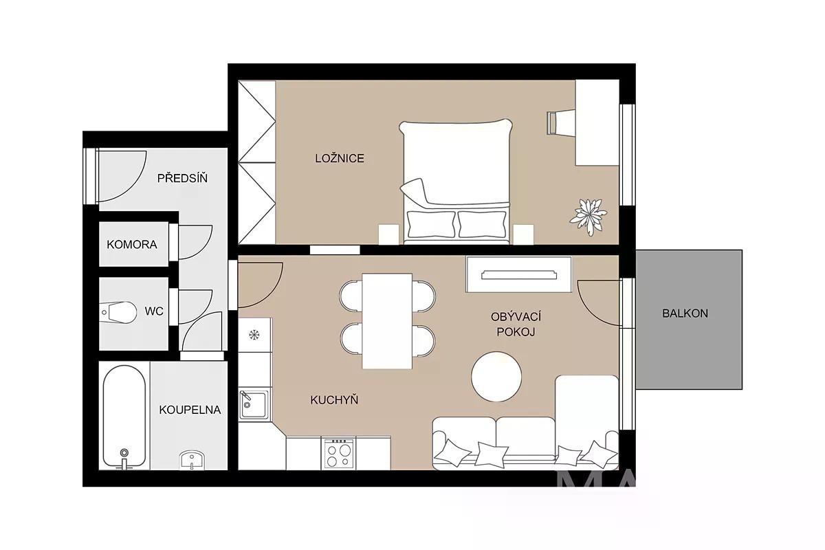 Exkluzivně nabízíme k prodeji světlý a prakticky řešený byt v osobním vlastnictví o dispozici 2+kk a podlahové ploše 52,1 m². Byt se nachází ve 2. nadzemním podlaží cihlového domu v klidné ulici Helíkovická, Praha 9 - Kbely. Dispozice bytu zahrnuje prostorný obývací pokoj s kuchyňským koutem (23,05 m²), ložnici (17,50 m²), koupelnu (3,65 m²), samostatné WC (1,35 m²), předsíň (5,35 m²), komoru (1,20 m²) a balkon (2,85 m²). K bytu náleží také vlastní garážové stání, které je součástí prodeje. Byt je ve velmi dobrém a udržovaném stavu, připravený k nastěhování od 1.12.2025. Lokalita nabízí ideální kombinaci městského života a přírody. V okolí je veškerá občanská vybavenost - obchody, restaurace, nebo například lékárny. Výborná dopravní dostupnost: autobusové spoje navazující na metro C - Letňany a především železniční zastávka Praha-Kbely, která je vzdálená jen několik minut chůze a zajišťuje pohodlné spojení do centra města. Milovníky přírody potěší, že Kbelský lesopark se nachází hned v blízkosti domu - ideální místo pro relaxaci, sport nebo procházky. V docházkové vzdálenosti je také Centrální park Kbely, oblíbený pro dětská hřiště, venkovní fitness a kulturní akce. Pro sportovní nadšence je v blízkosti také Prague City Golf - driving range Kbely, ideální pro odpočinek i aktivní trávení volného času. PENB: G* (údaj není k dispozici, bude aktualizován)