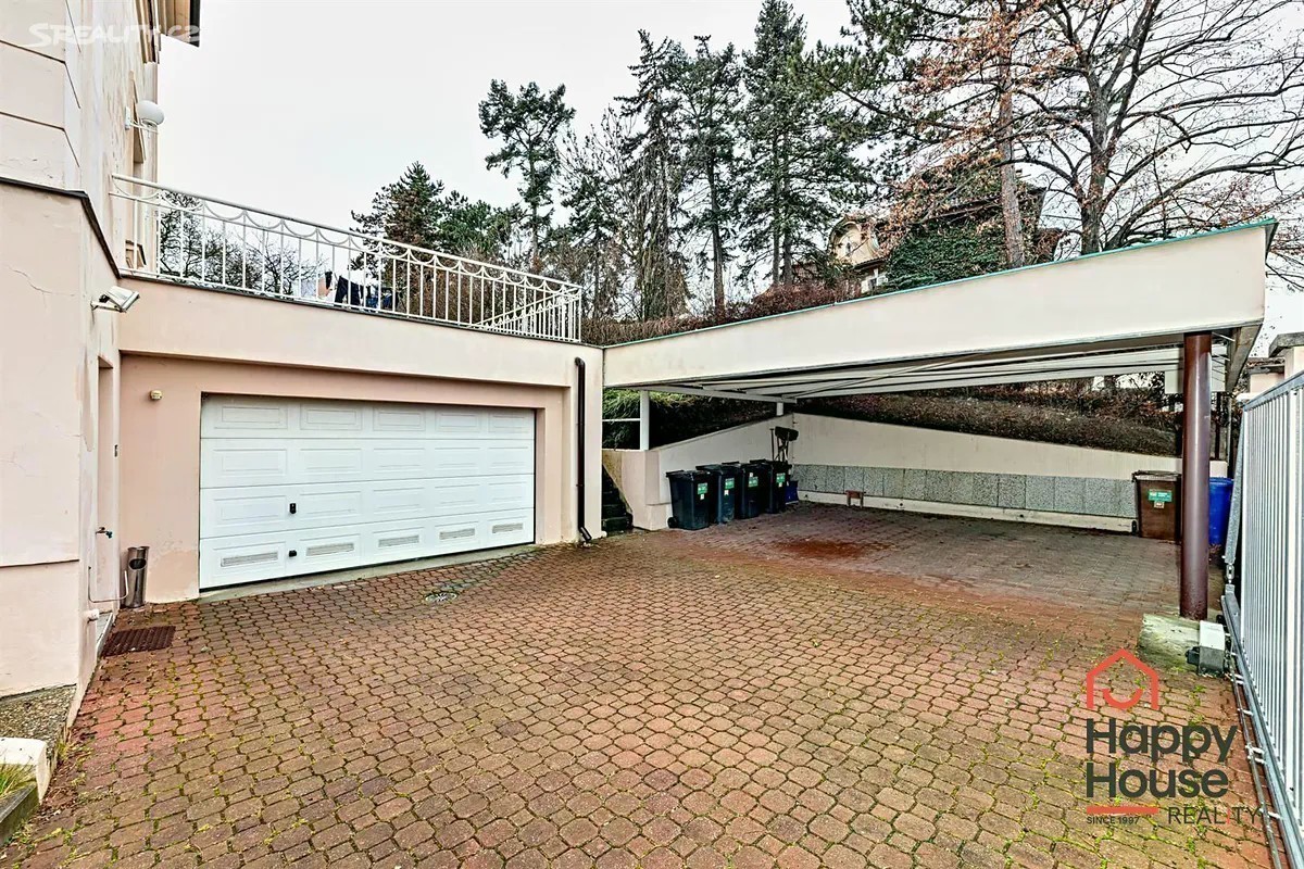 Nabízíme k pronájmu výjimečný, nezařízený byt o dispozici 7+1 a podlahové ploše 246 m² s terasou 26 m², situovaný v 1. patře prvorepublikové cihlové vily bez výtahu v prestižní rezidenční lokalitě Prahy 6 ve Střešovicích. Dominantou bytu je oválná hala se vstupem na terasu s výhledem do společné udržované zahrady. Dispozice dále zahrnuje světlý obývací pokoj, samostatnou plně vybavenou kuchyň (lednice s mraznicí, sklokeramická deska, horkovzdušná a mikrovlnná trouba, digestoř, myčka), prostornou jídelnu, čtyři ložnice, dvě koupelny (první - vana, sprchový kout, toaleta a pračka; druhá - sprchový kout a toaleta), samostatnou toaletu pro hosty, prádelnu a komoru. K bytu náleží dvě krytá parkovací stání v oploceném areálu. Vytápění a ohřev vody zajišťuje plynový kotel v bytě. Připojení k telefonu a internetu je k dispozici. Lokalita: Veškerá občanská vybavenost v docházkové vzdálenosti. Stanice metra A Dejvická asi 7 minut chůze, tramvajová zastávka Thákurova a autobusová Dělostřelecká nedaleko domu. Do přírodní rezervace Divoká Šárka dojedete autem za asi 15 minut. Měsíční nájemné: 105.000 Kč Poplatky: asi 4.000 Kč/měsíc (služby, voda), energie zvlášť Kauce: dva měsíční nájmy Provize RK: jeden měsíční nájem + DPH Energetická náročnost: PENB nedodán - uvádíme třídu G Pro další informace nebo domluvu prohlídky nás kontaktujte e‑mailem či telefonicky.