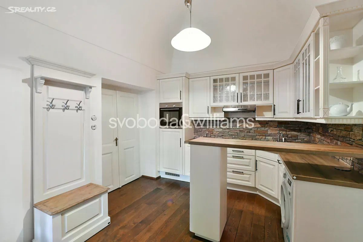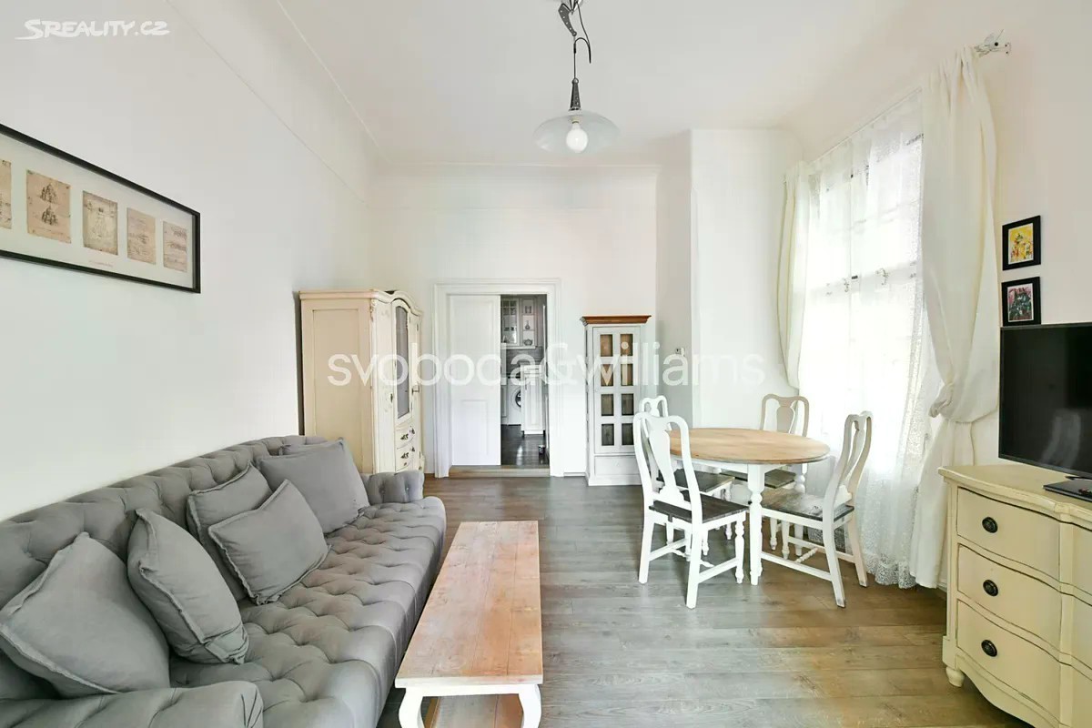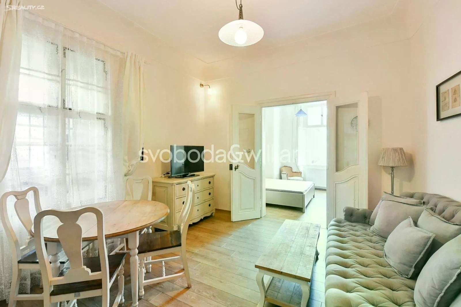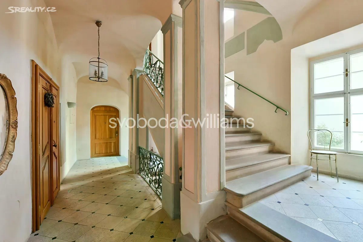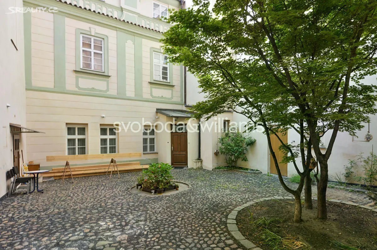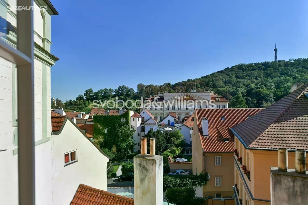 Zařízený byt v restaurovaném historickém paláci na Malé Straně. Nově plně zrenovovaný byt se zachovanými původními prvky, situovaný v 1. patře kompletně zrekonstruovaného památkově chráněného barokního paláce pouhých pár kroků od Pražského hradu. Pár minut chůze od Petřínských sadů, Malostranského náměstí a Karlova mostu, jedna krátká zastávka tramvají k metru Malostranská. Byt má plně vybavenou průchozí kuchyň, průchozí obývací pokoj, 1 ložnici s krásným výhledem na Petřín a okolní historickou zástavbu, dále malou koupelnu se sprchovým koutem a toaletou a vstupní chodbu. Vysoké stropy, dřevěné podlahy, elektrické topení, pračka se sušičkou, myčka, bezpečnostní mříže na oknech, sklepní kóje. Bez výtahu.