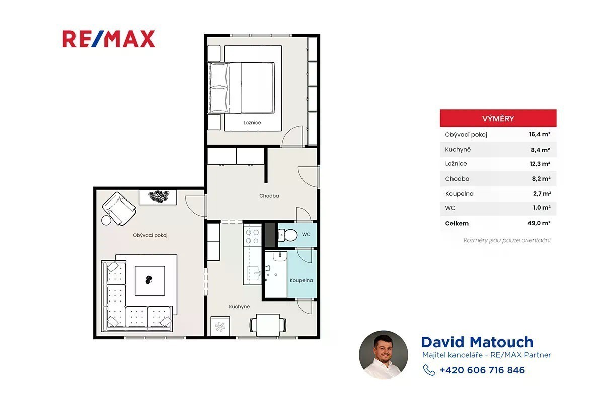 Hledáte byt, který si můžete upravit přesně podle svých představ? Tento byt 2+1 o výměře 49 m² se nachází v klidné ulici Malátova v Ústí nad Labem a je skvělou volbou jak pro vlastní bydlení, tak i jako investici. Dispozice bytu zahrnuje prostorný obývací pokoj (16,4 m²), ložnici (12,3 m²), samostatnou kuchyni (8,4 m²), chodbu s úložným prostorem, koupelnu a samostatné WC. Byt je v původním stavu, což dává novému majiteli možnost rekonstrukce dle vlastního vkusu. V posledních letech byla provedena výměna plastových oken a oprava střechy domu. Měsíční náklady na bydlení činí přibližně 5 000 Kč. Lokalita je ideální - klidné prostředí obklopené zelení a přitom v docházkové vzdálenosti do centra města. V blízkosti najdete veškerou občanskou vybavenost: školy, školky, obchody, zastávky MHD i možnosti sportovního a kulturního vyžití. Byt je ihned volný k nastěhování. Byt lze financovat pomocí hypotéčního úvěru, se kterým rádi pomůžeme. Pro více informací nebo sjednání prohlídky mě neváhejte kontaktovat.
