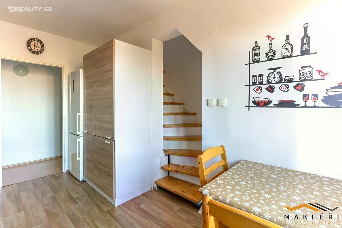 Nabízíme k prodeji mezonetový byt větších rozměrů, aktuálně ve velikosti 2+1, kdy s lehkou úpravou na náklady současného majitele vznikne byt 3+1. Byt je po kompletní rekonstrukci včetně vestavěných skříní a je vhodný pro okamžité nastěhování bez nutných větších investic. Jedná se o byt velmi slunný a umístěný v dobré a klidné lokalitě s příjemným výhledem a možností parkování v okolí. Byt se nachází ve třetím patře. K bytu náleží nadstandardně velký sklep a sdílená velká komora přímo na patře, sdílená prostorná půda a společná velká zahrada. Vytápění a ohřev vody je vlastním kotlem na zemní plyn. Cena je kompletní včetně právního servisu. Byt je k nastěhování po dohodě ihned.